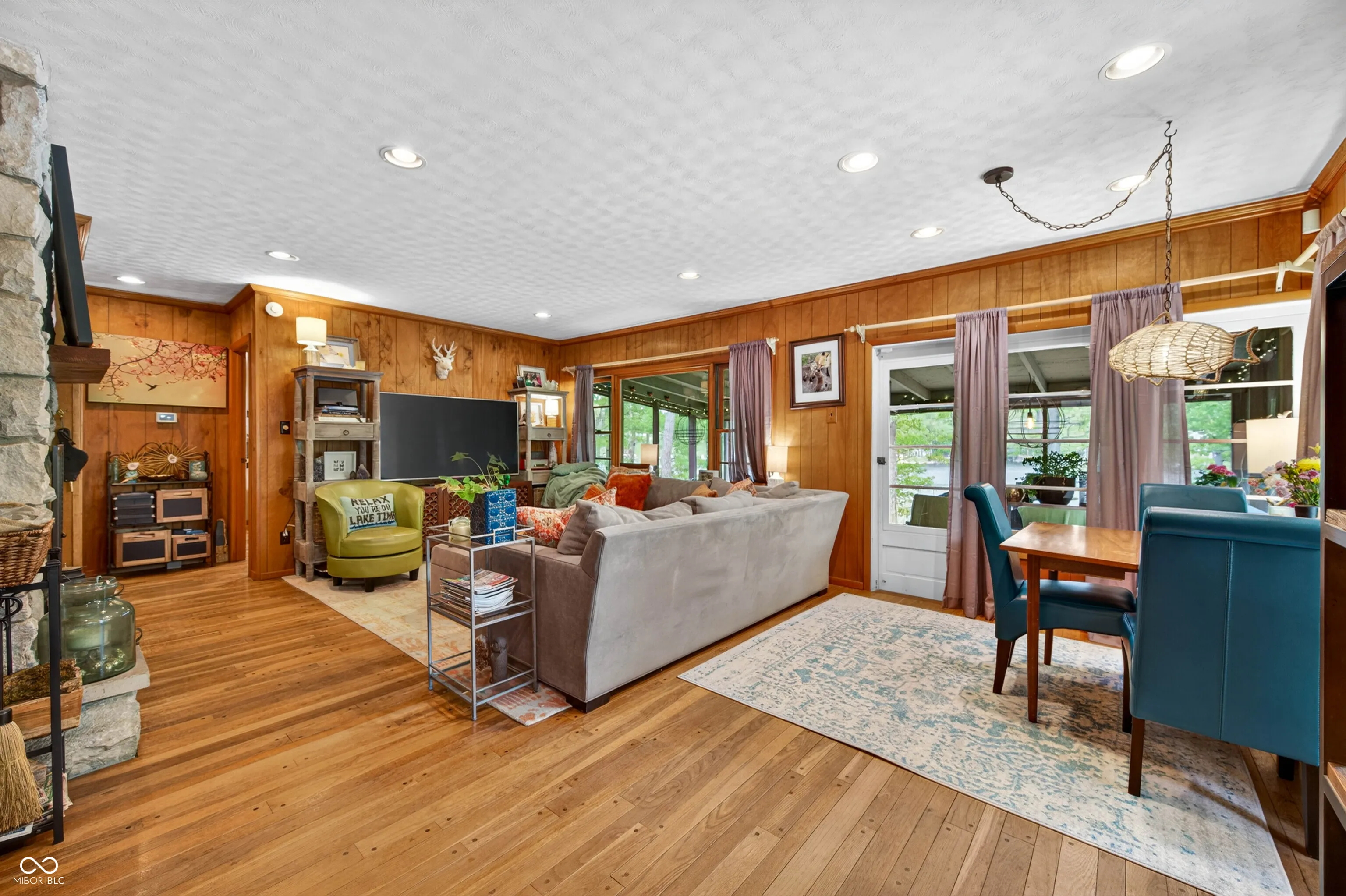 Lakefront living at its best! This charming home offers over 200 feet of shoreline, giving you wide-open water views and space to truly enjoy the lake lifestyle. A brand-new boat dock makes getting out on the water effortless, while the firepit area is perfect for evenings under the stars. Inside, you’ll find warm hardwood floors and a cozy wood-burning fireplace that instantly makes the space feel like home. The screened-in porch-with comfortable seating and a coffee table setup-is the perfect spot for slow mornings, quiet afternoons, or winding down after a day on the water. Whether you’re looking for a weekend escape or a full-time lake retreat, this one delivers the setting, the comfort, and the lifestyle.