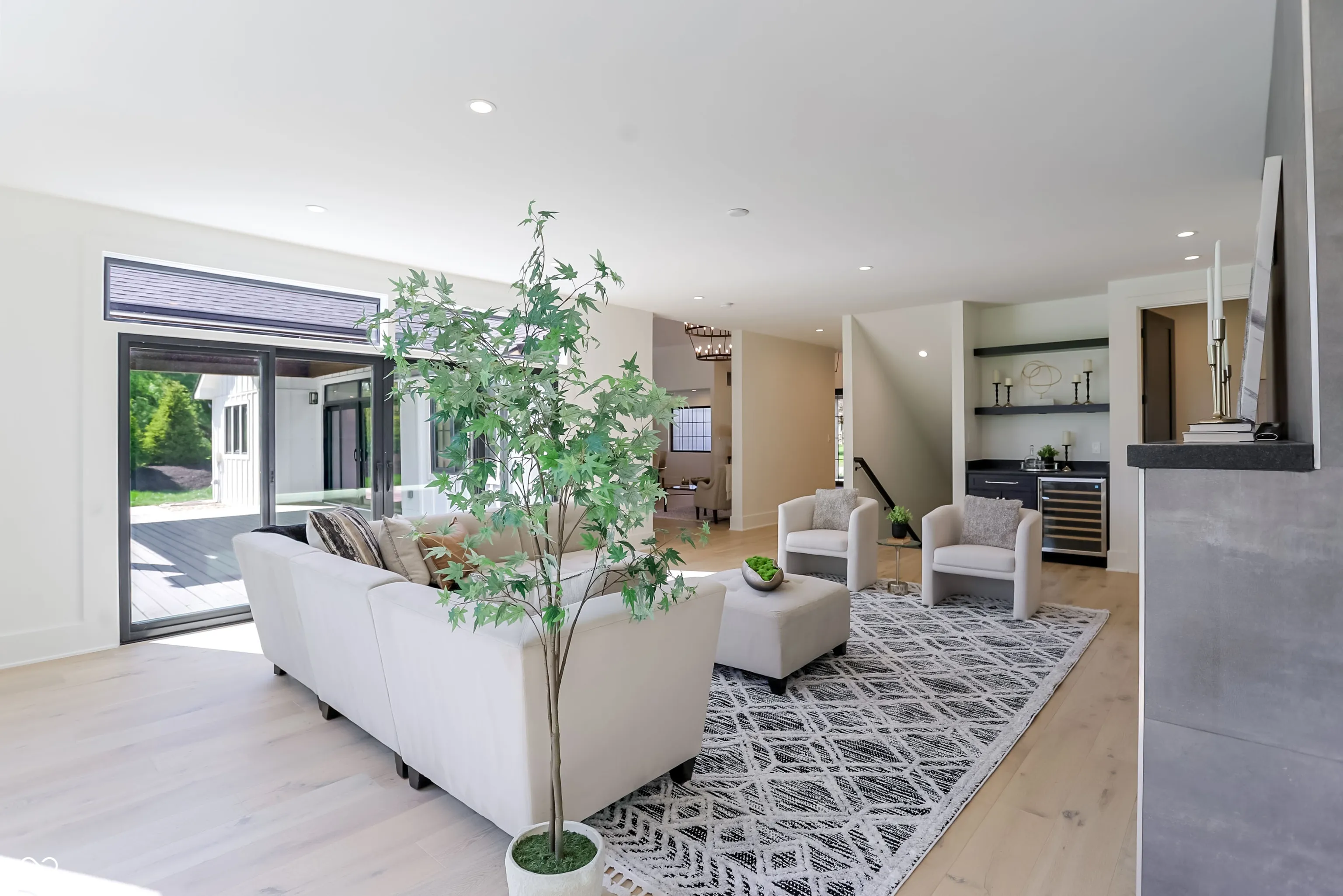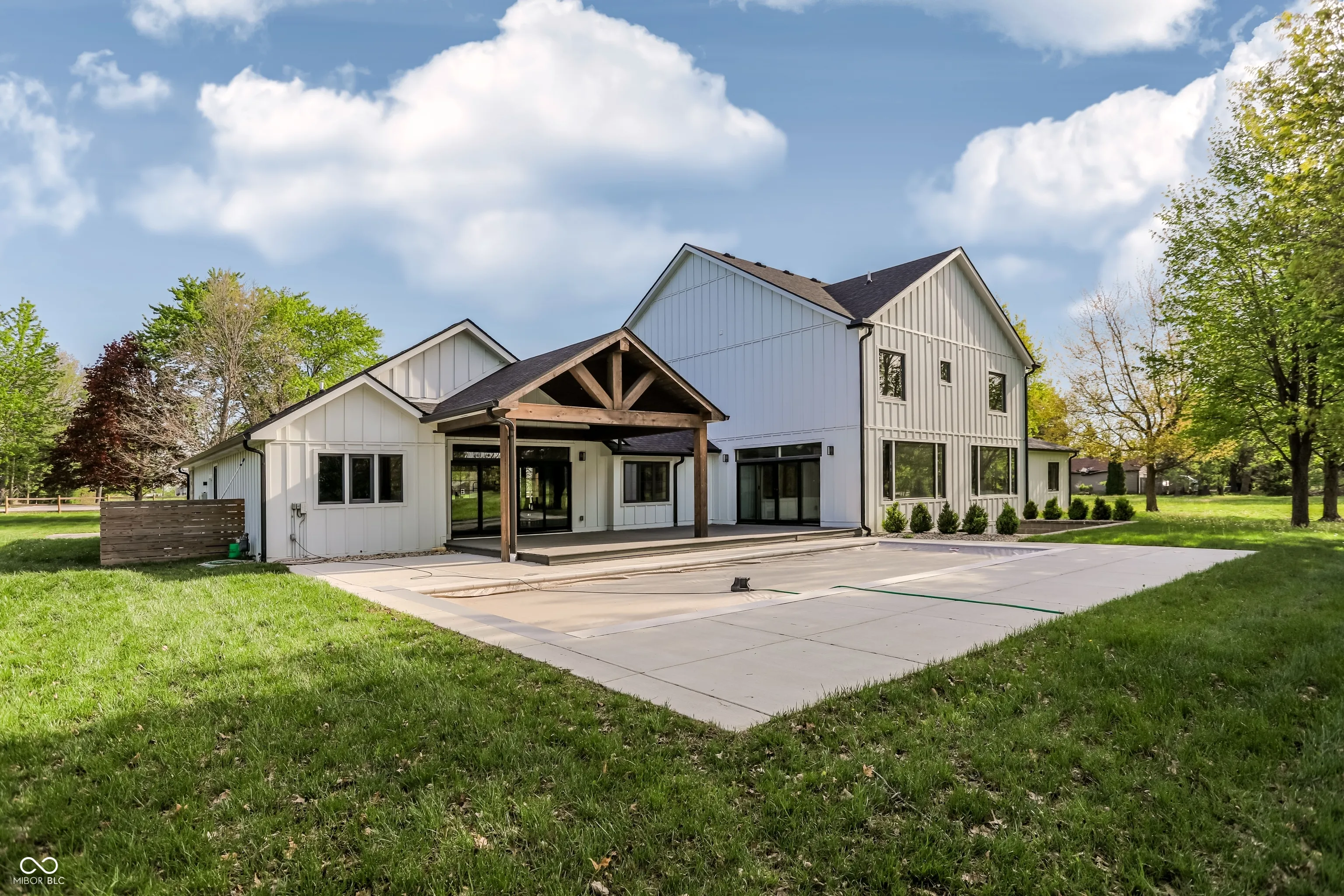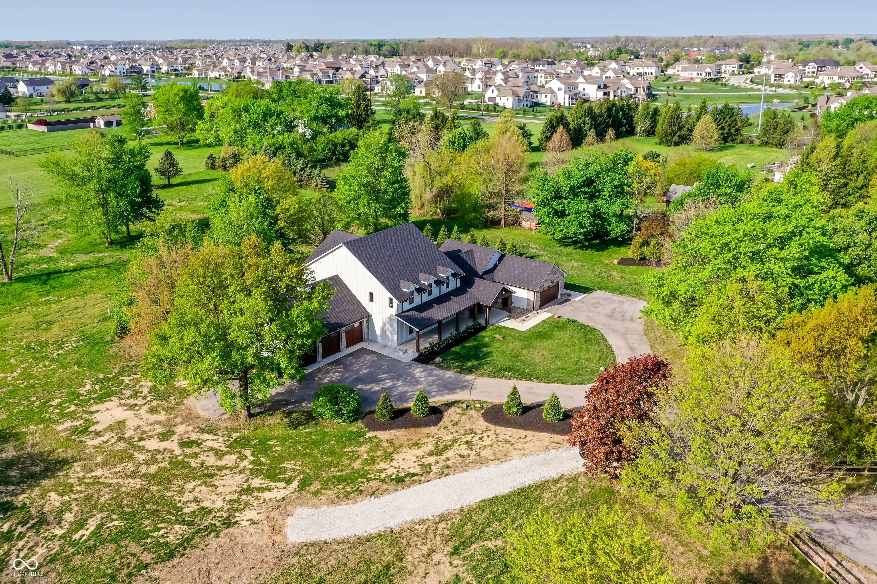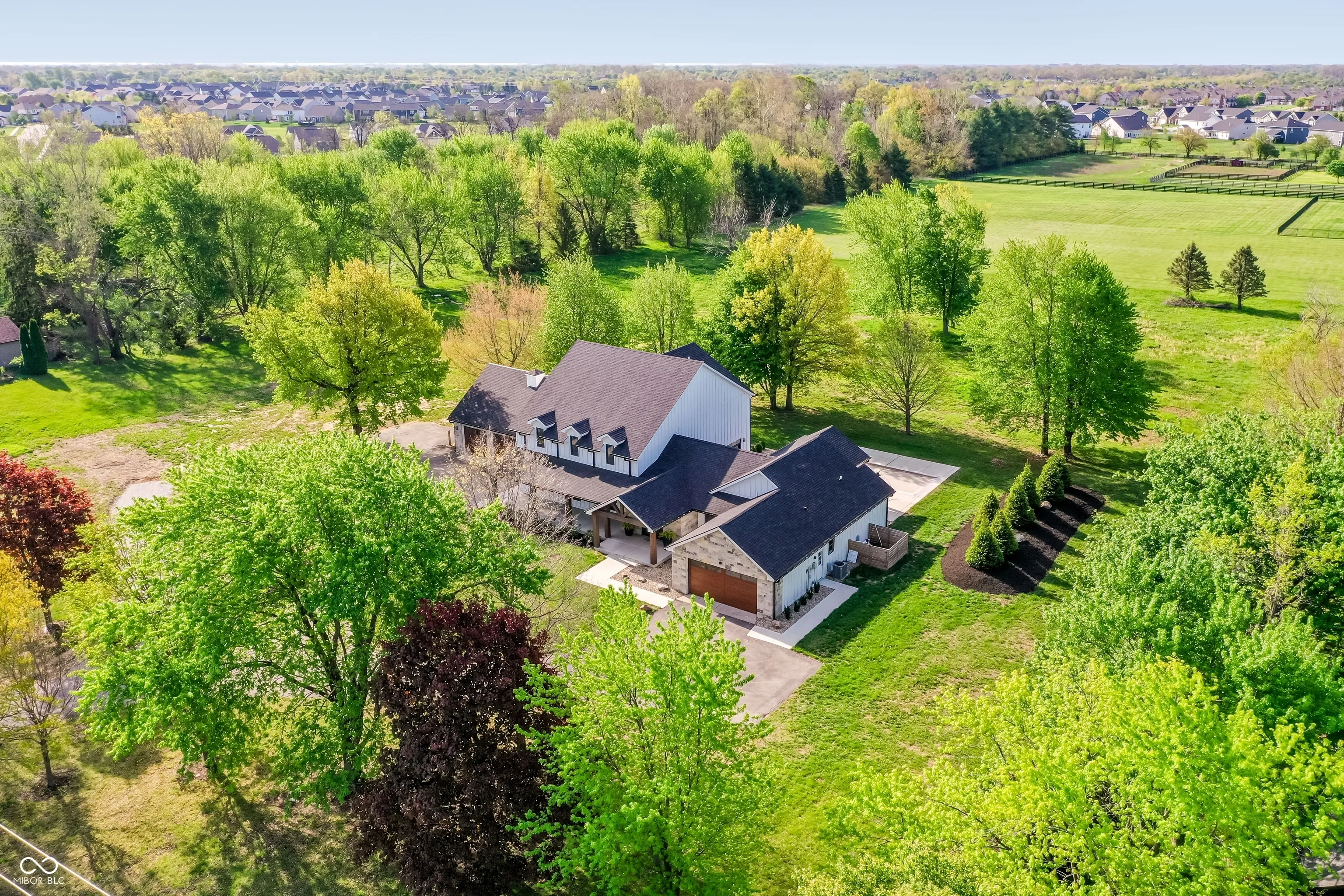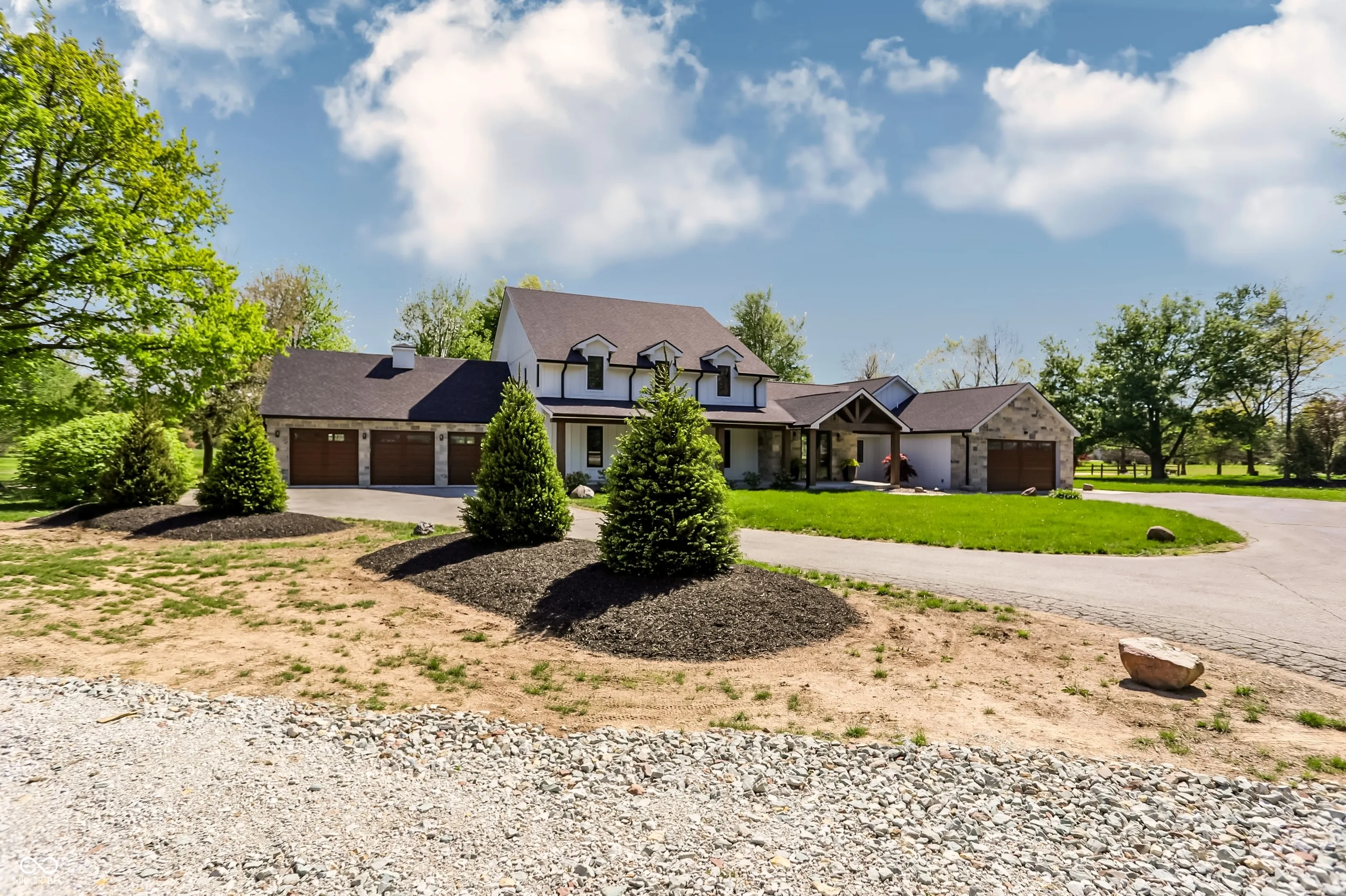 Beautifully rebuilt modern farmhouse on 1.69 acres in Westfield featuring 5 bedrooms and 5.5 baths. The sought-after main-floor primary suite offers double sinks, a walk-in closet, garden tub, separate shower, elegant tile, and heated floors. The home’s open-concept design centers around a vaulted hearth room that flows seamlessly into the updated kitchen. Large windows, hardwood floors, and timeless finishes create bright, inviting spaces throughout. Upstairs includes four spacious bedrooms with flexible use options. The elevated deck overlooks a new gunite pool that enhances outdoor living. A 5-car garage provides exceptional storage. This property offers privacy, quality craftsmanship, and convenience in a prime Westfield location.
