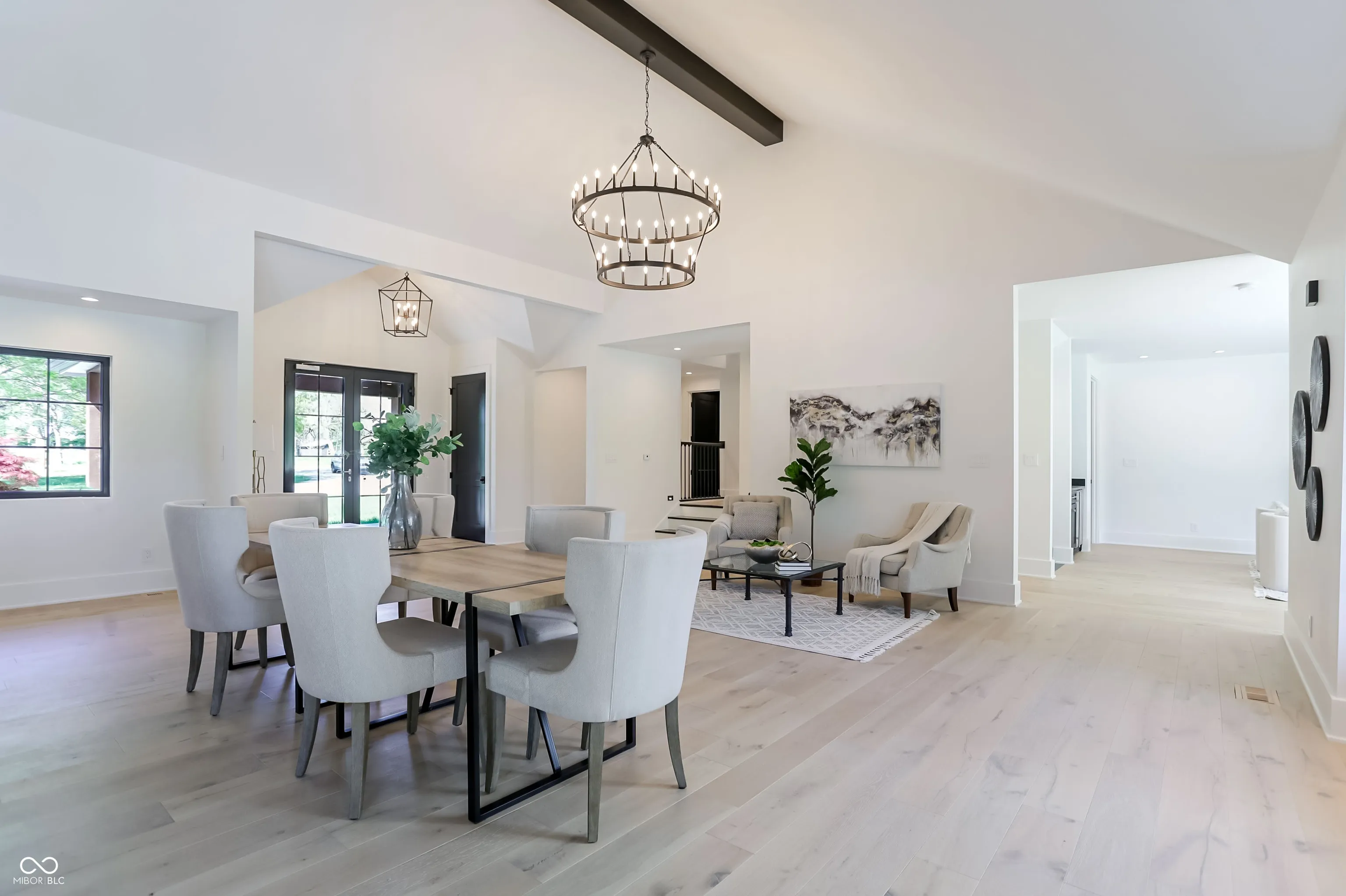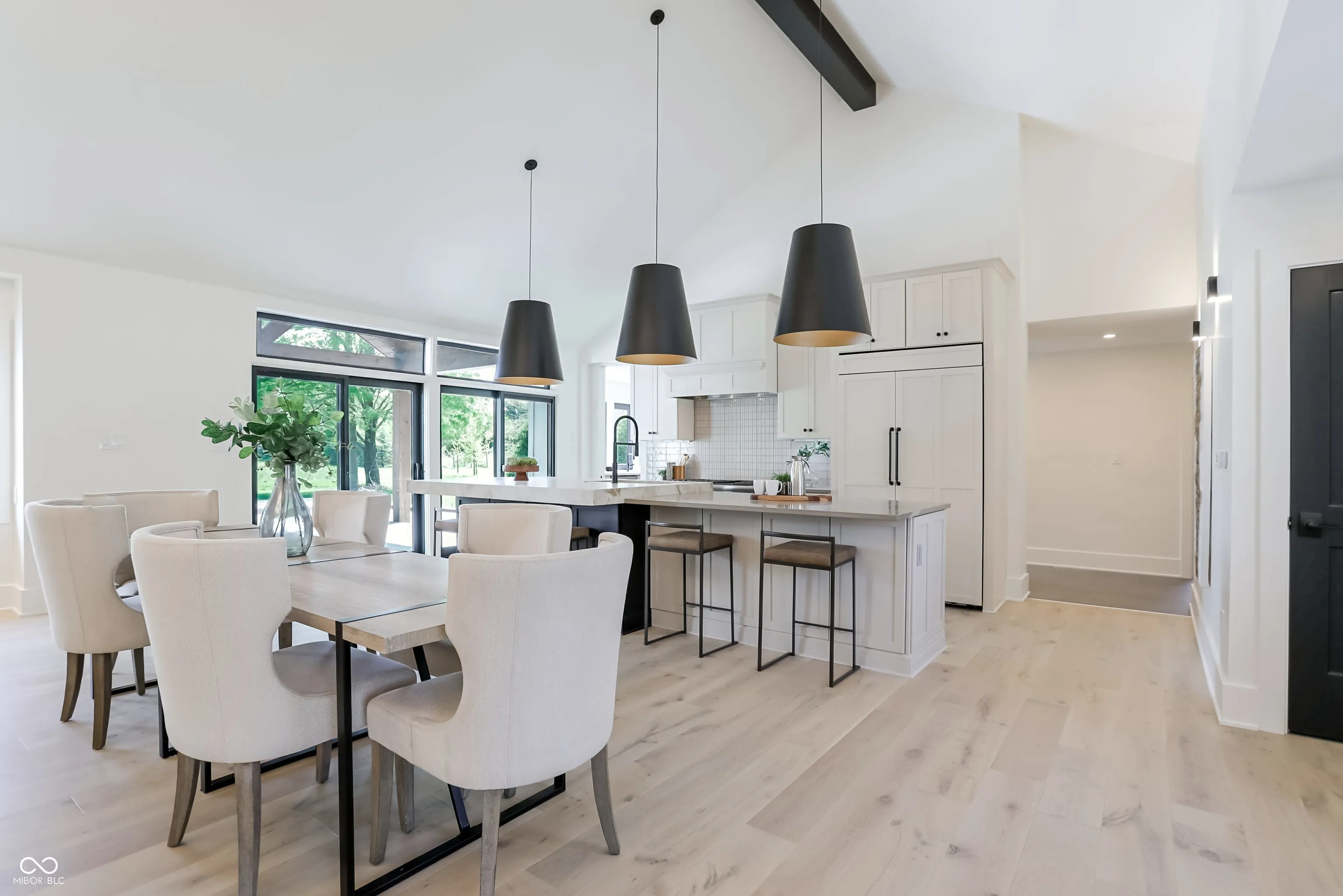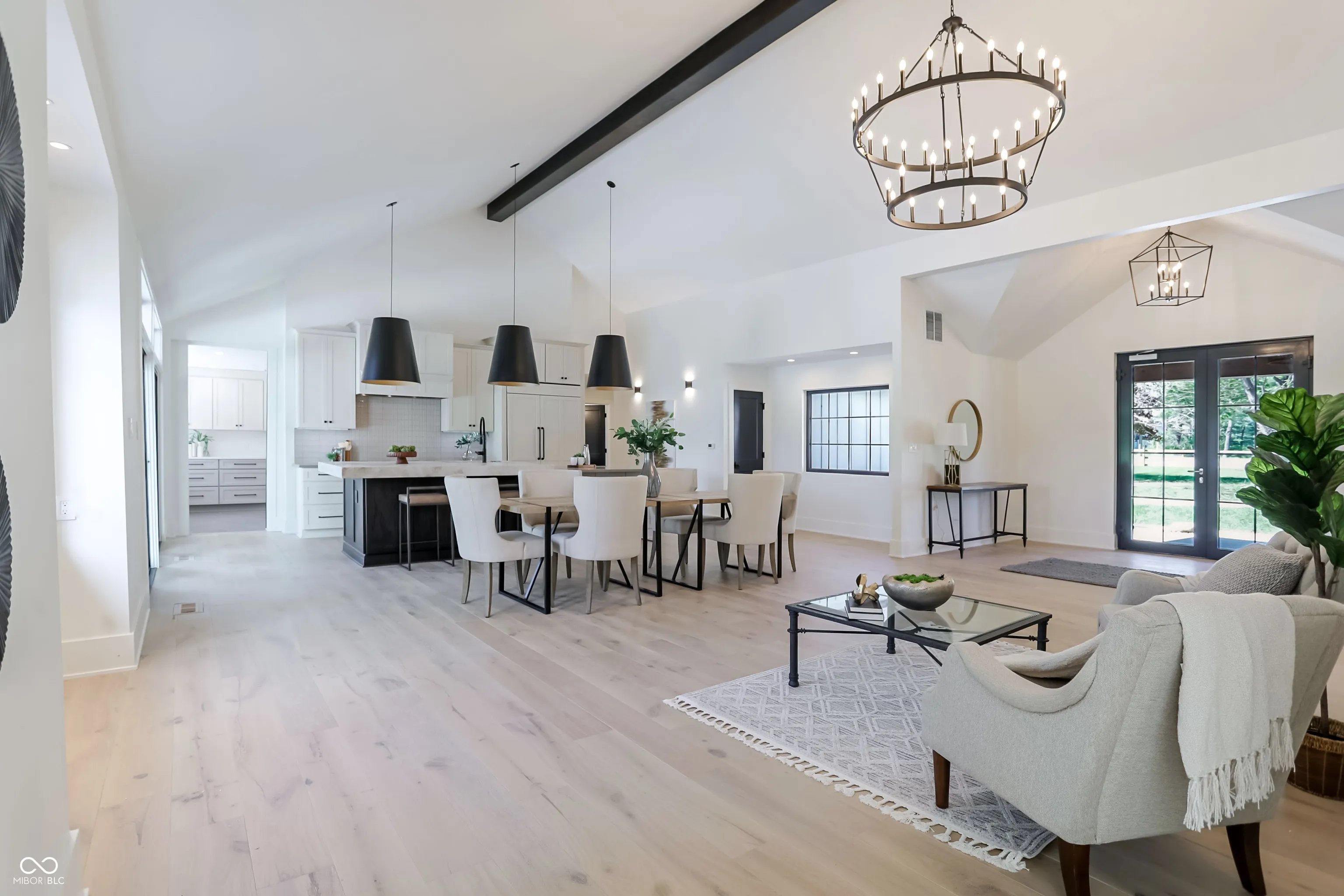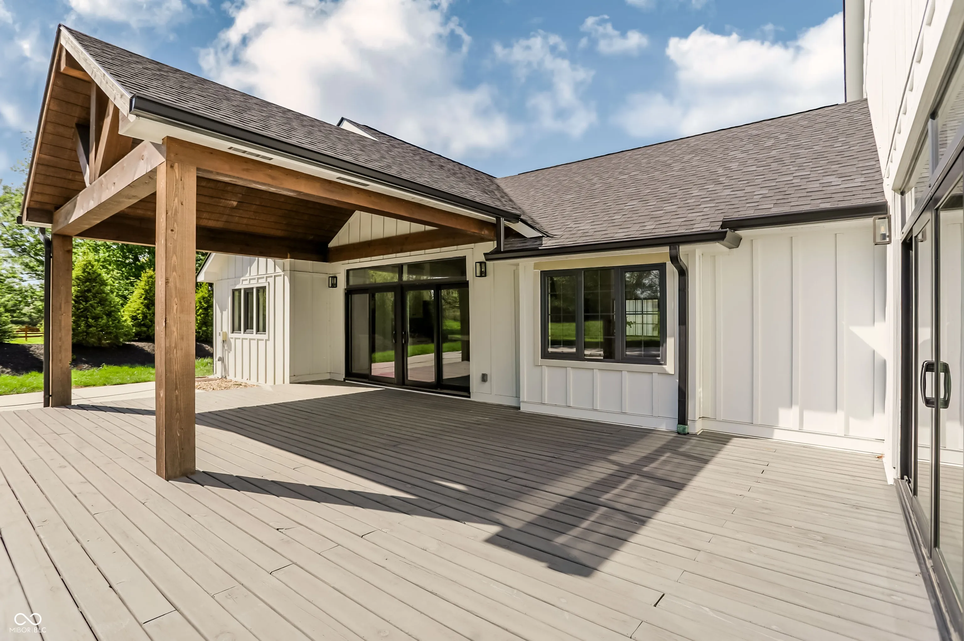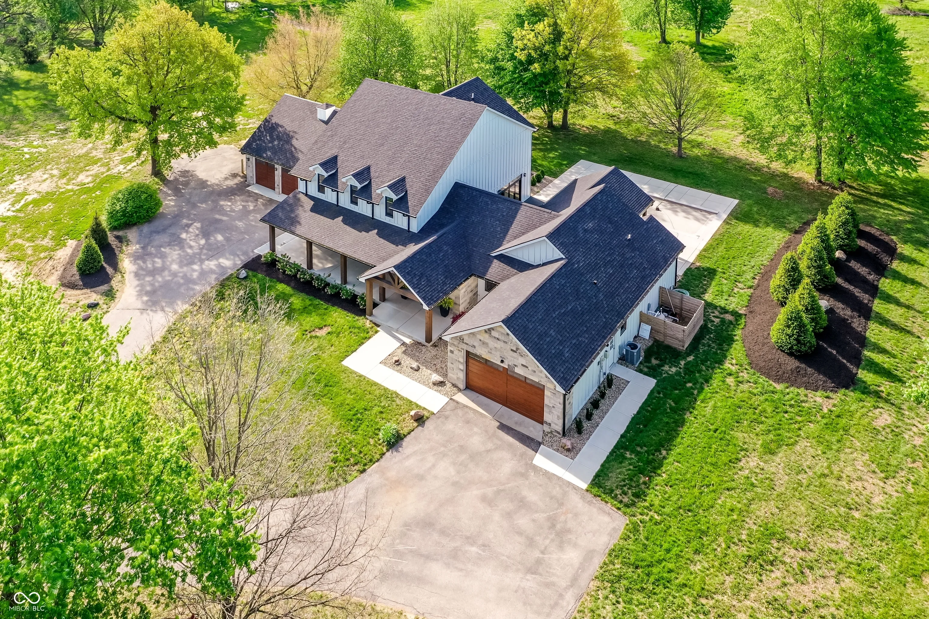 Beautifully rebuilt modern farmhouse on 1.69 acres in Westfield featuring 5 bedrooms and 5.5 baths. The sought-after main-floor primary suite offers double sinks, a walk-in closet, garden tub, separate shower, elegant tile, and heated floors. The home’s open-concept design centers around a vaulted hearth room that flows seamlessly into the updated kitchen. Large windows, hardwood floors, and timeless finishes create bright, inviting spaces throughout. Upstairs includes four spacious bedrooms with flexible use options. The elevated deck overlooks a new gunite pool that enhances outdoor living. A 5-car garage provides exceptional storage. This property offers privacy, quality craftsmanship, and convenience in a prime Westfield location.