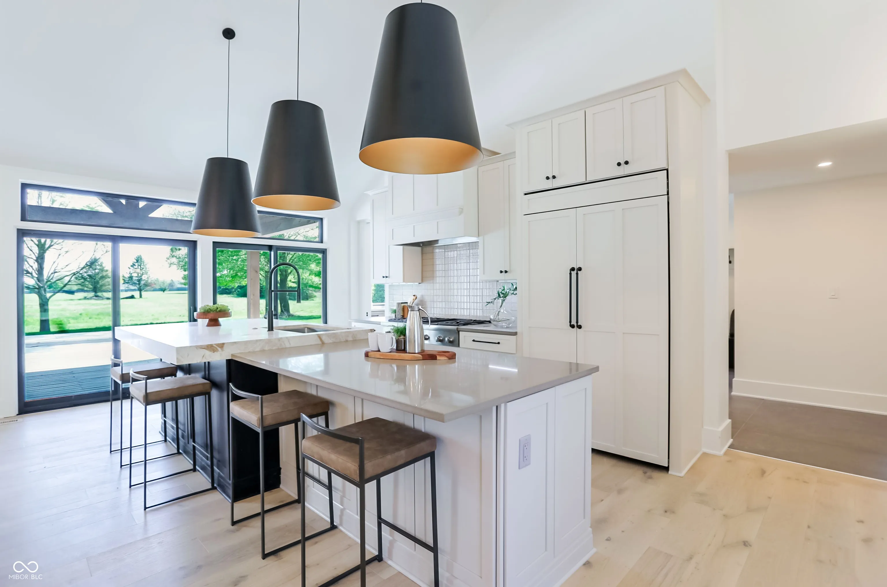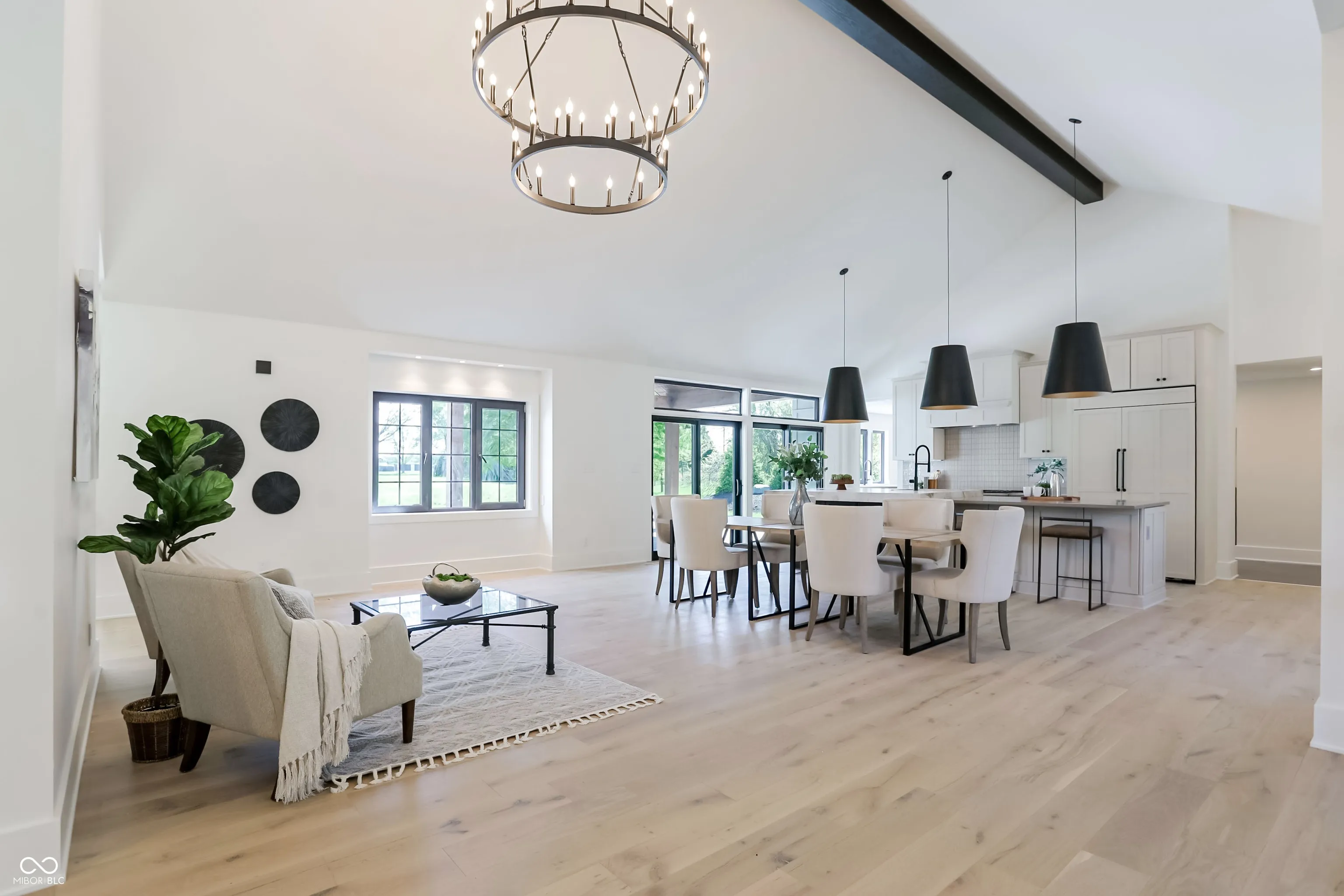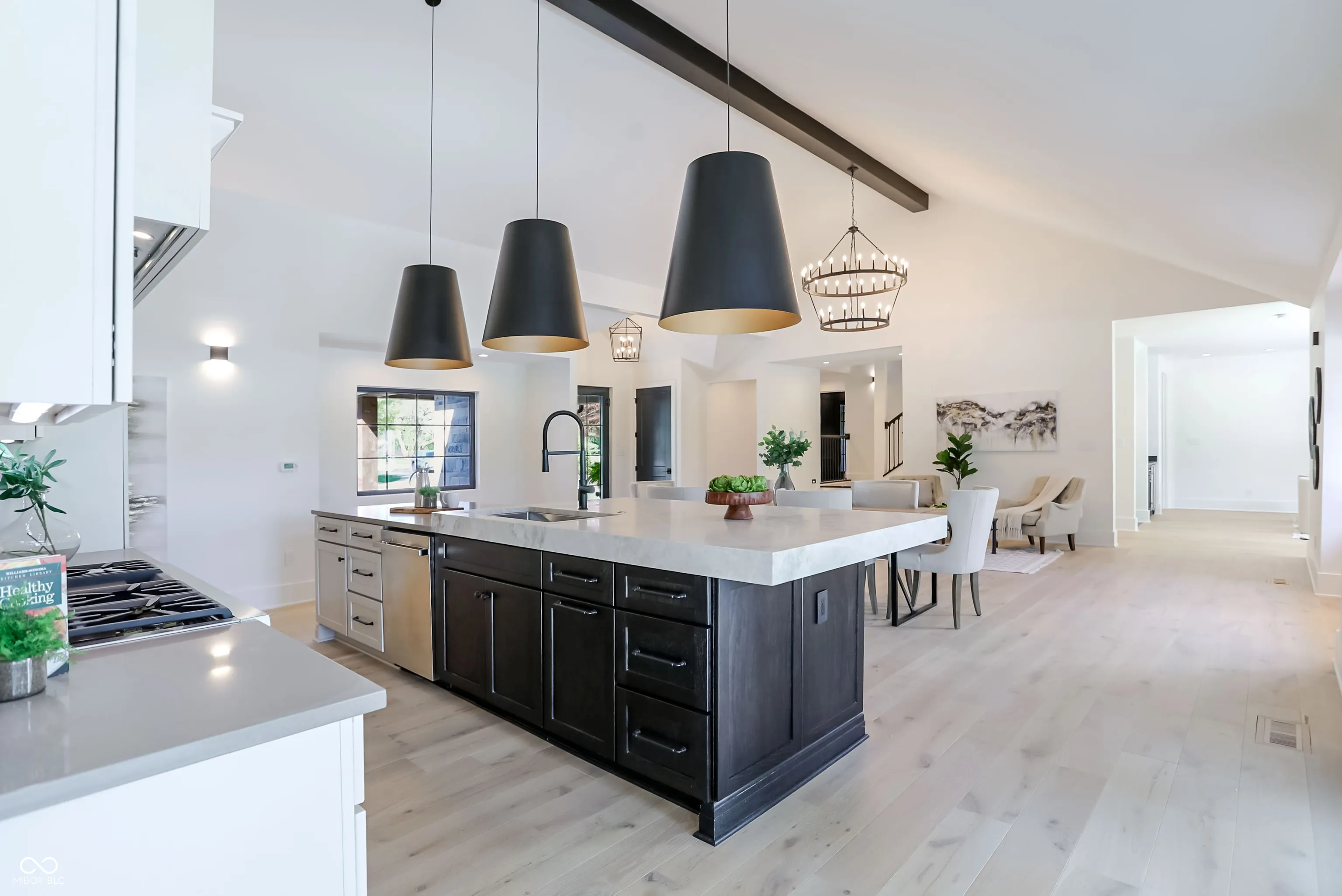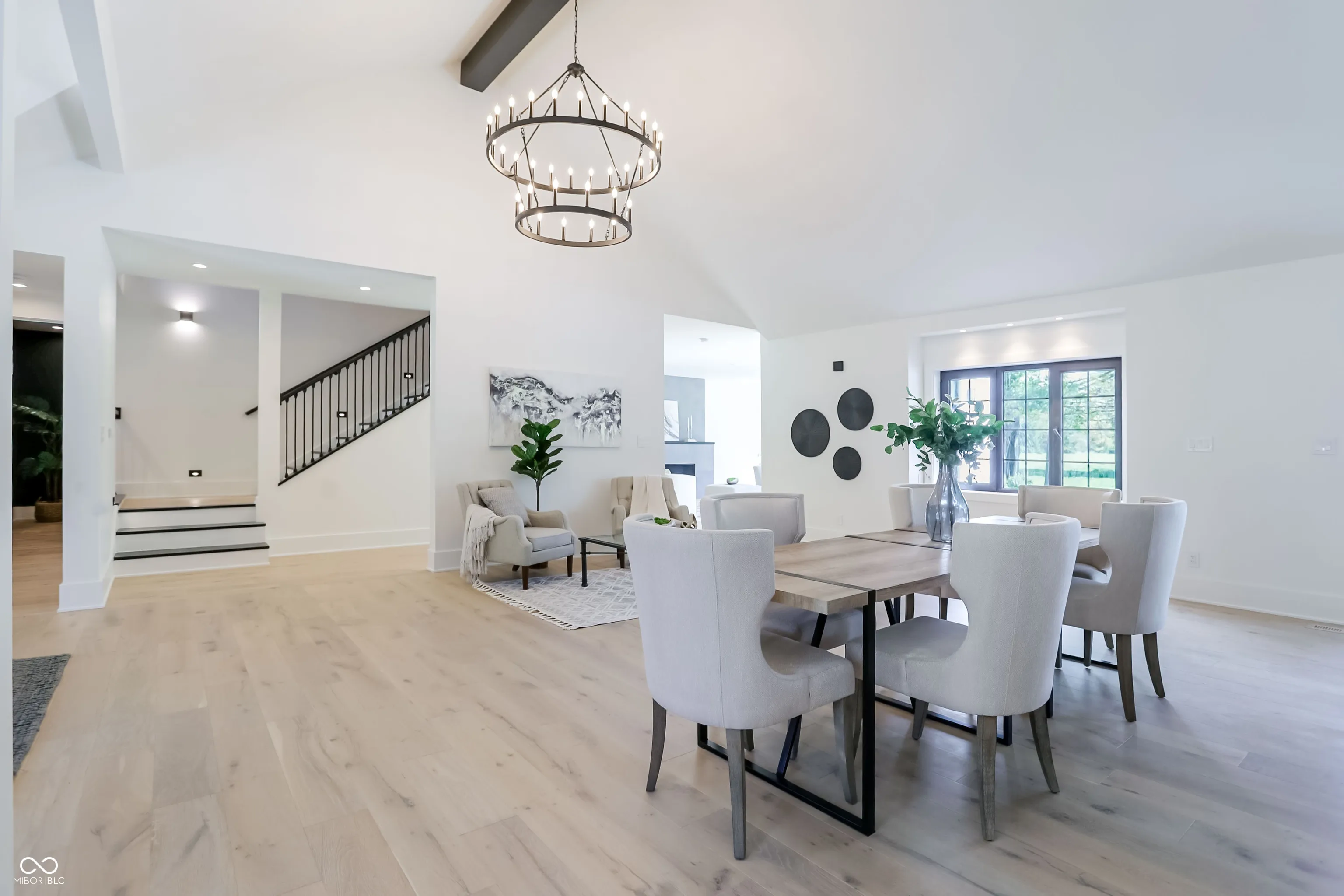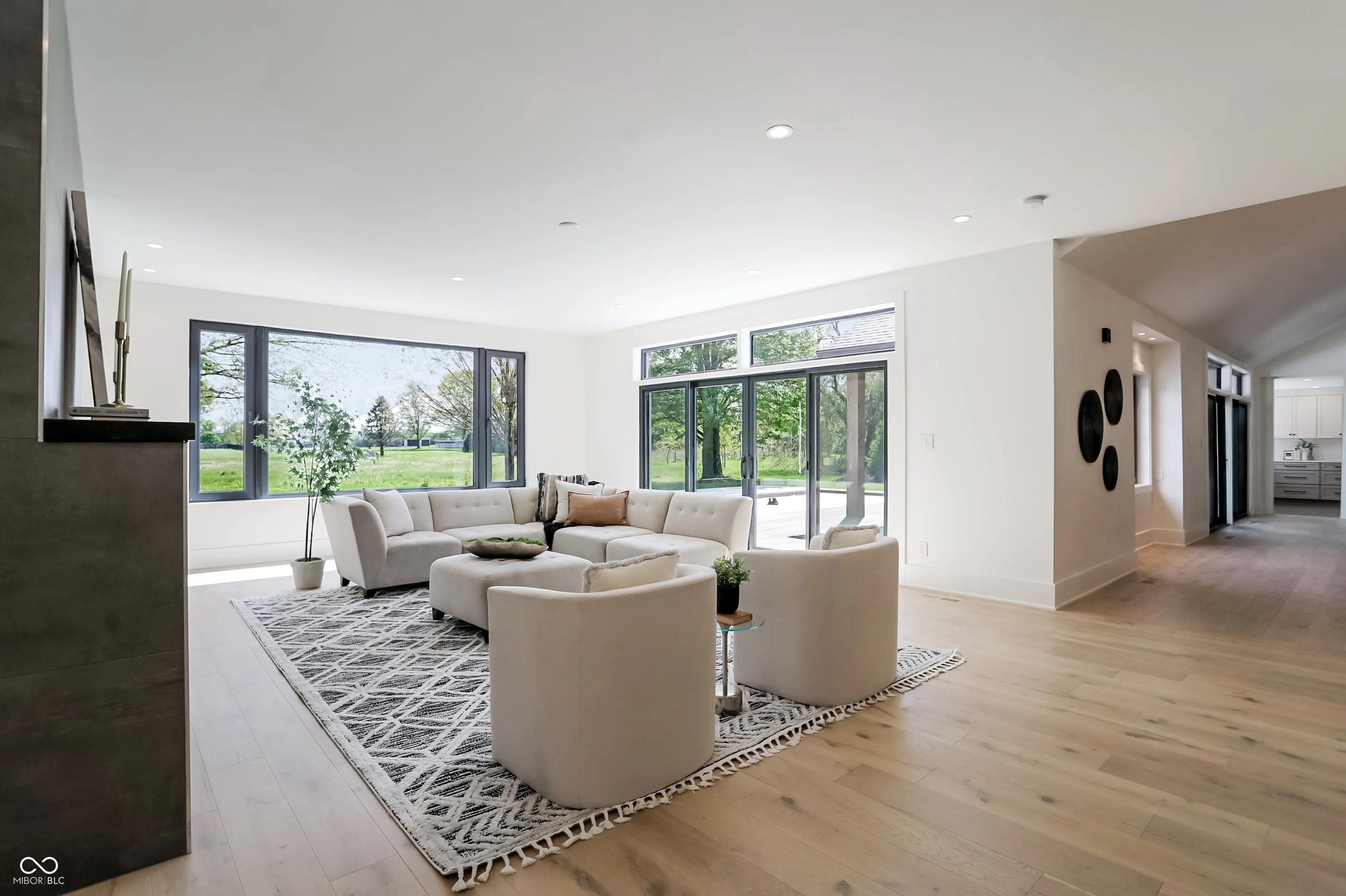 Beautifully rebuilt modern farmhouse on 1.69 acres in Westfield featuring 5 bedrooms and 5.5 baths. The sought-after main-floor primary suite offers double sinks, a walk-in closet, garden tub, separate shower, elegant tile, and heated floors. The home’s open-concept design centers around a vaulted hearth room that flows seamlessly into the updated kitchen. Large windows, hardwood floors, and timeless finishes create bright, inviting spaces throughout. Upstairs includes four spacious bedrooms with flexible use options. The elevated deck overlooks a new gunite pool that enhances outdoor living. A 5-car garage provides exceptional storage. This property offers privacy, quality craftsmanship, and convenience in a prime Westfield location.