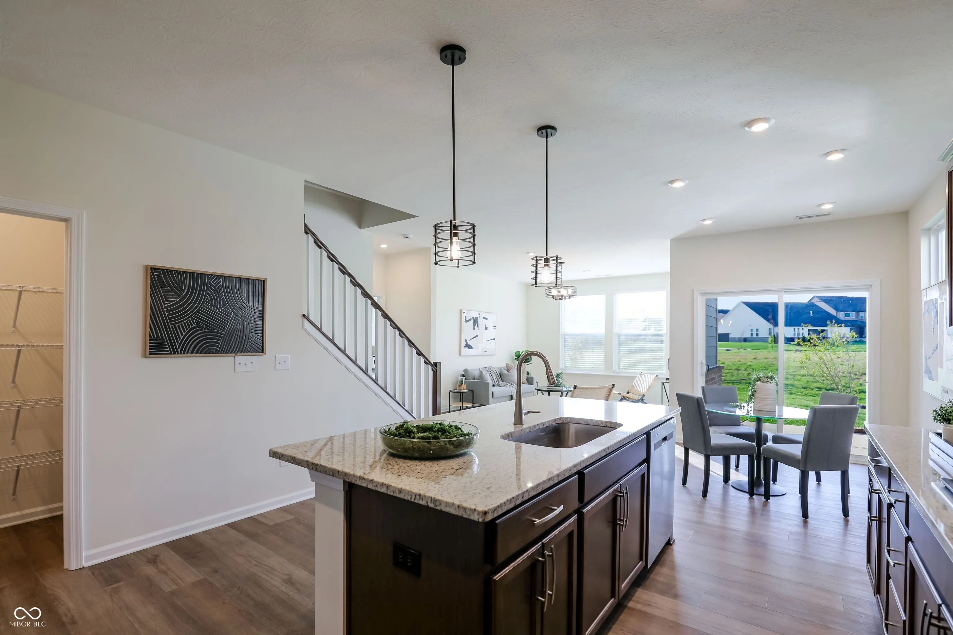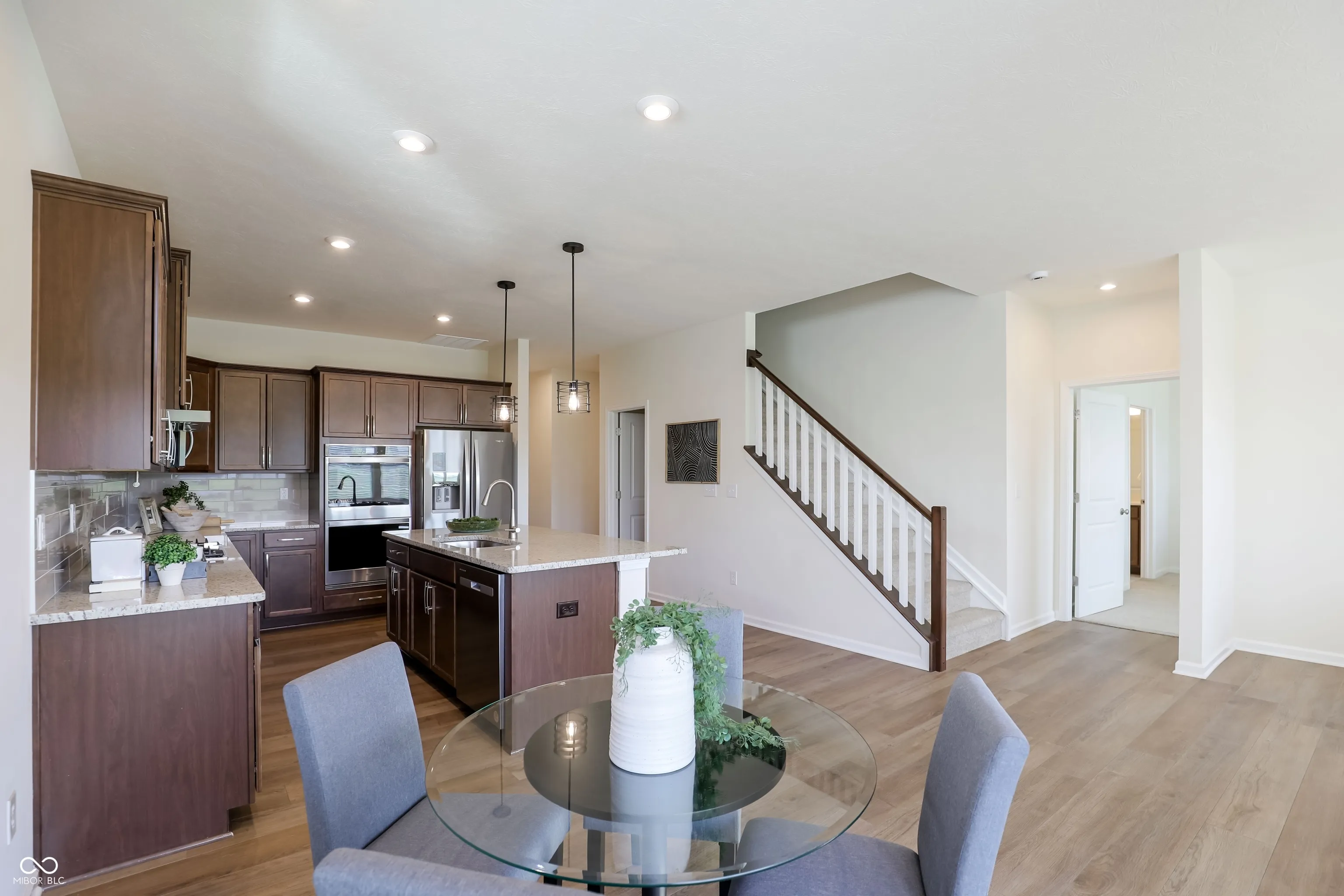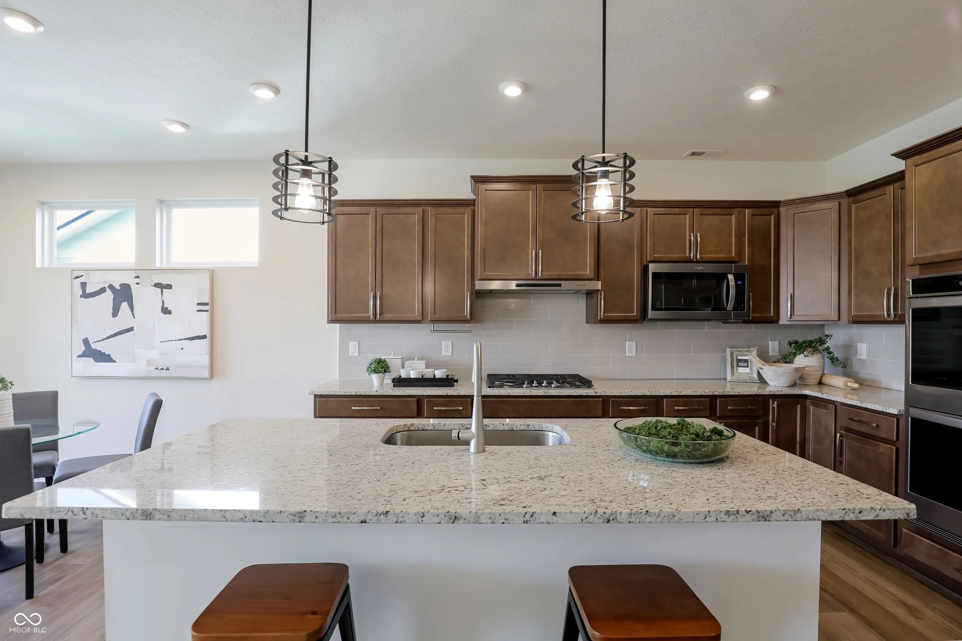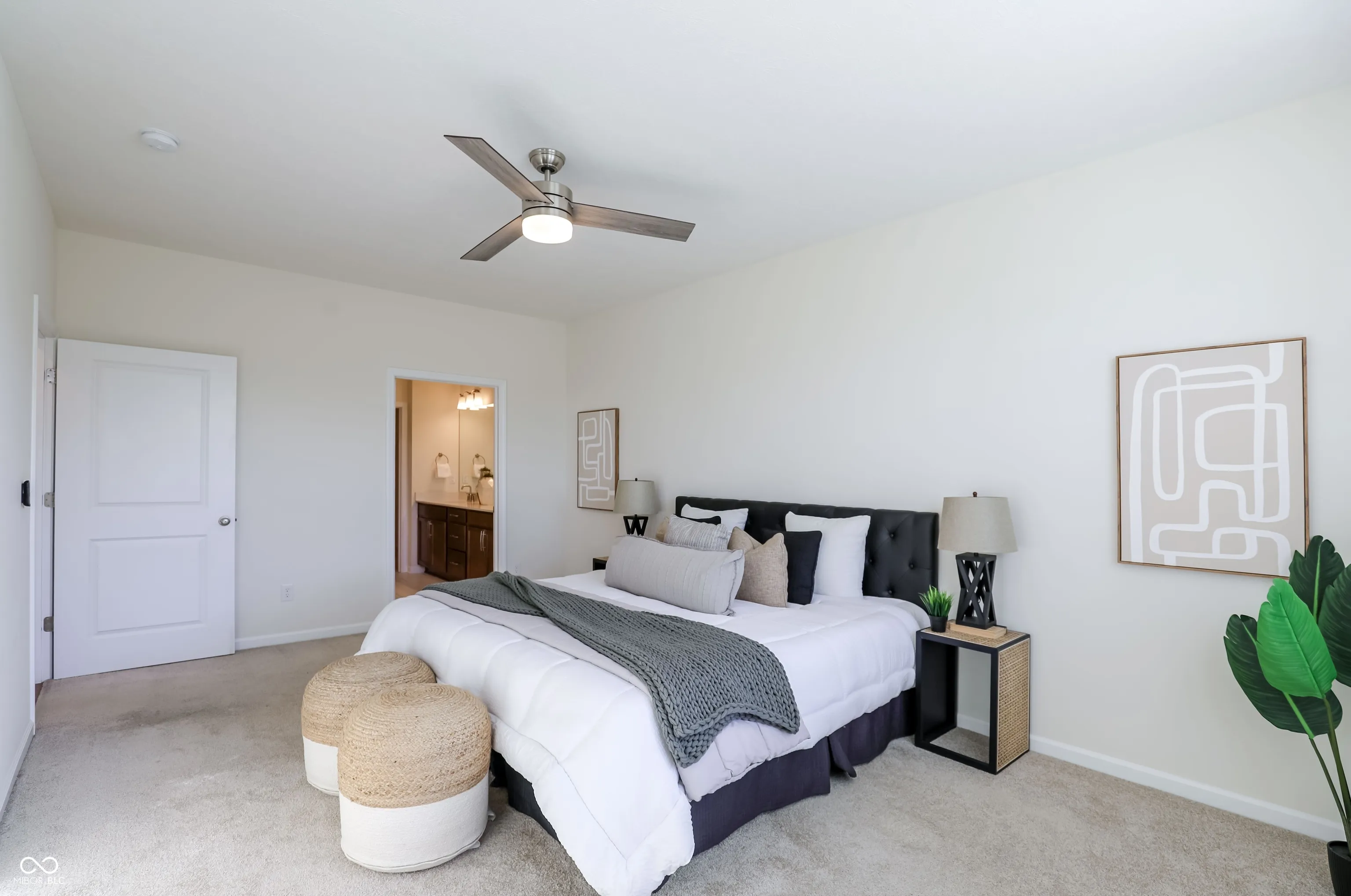 Welcome to this villa in the desirable Albany Village community of Carmel, offering a perfect blend of comfort, style, and low-maintenance living. This thoughtfully designed 1.5-story home features 3 bedrooms and 3.5 baths with an open and inviting layout ideal for modern living. The main level showcases a spacious owner’s suite with a beautifully upgraded bathroom and walk-through closet, along with a second bedroom featuring its own private bath and walk-in closet. The open-concept living space is centered around a gourmet kitchen with granite countertops, a large island with breakfast bar, and a walk-in pantry. A dedicated study, powder room, and luxury vinyl plank flooring add both elegance and functionality. Upstairs offers a large third bedroom and an expansive loft, perfect for guests or additional living space. The charming exterior features brick and cement siding, along with a covered porch and patio ideal for relaxing outdoors.