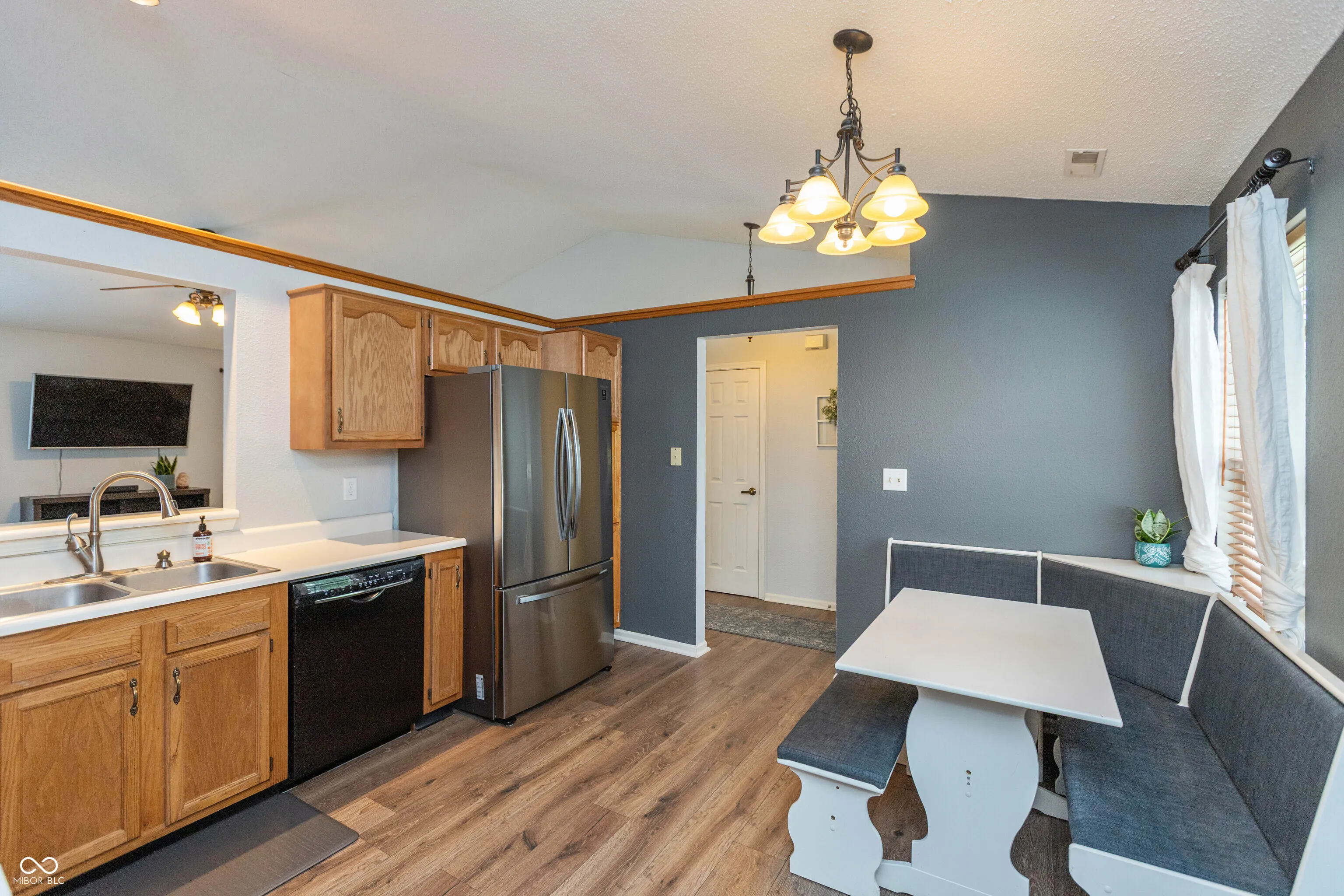 Welcome to this updated 3-bedroom, 2-bath ranch in desirable Bridgeport Commons! This home offers easy one-level living with a bright, open layout and modern finishes throughout. The great room features newer laminate flooring and flows into the eat-in kitchen; all appliances are included. Washer and dryer are also included. All bedrooms have new carpet, and both bathrooms have been updated, including the primary suite with granite countertops and a tiled shower. Enjoy the fully fenced backyard with a wood deck and peaceful water view, perfect for relaxing or entertaining. Finished 2-car attached garage. Convenient location near shopping, dining, and major highways. Move-in ready!