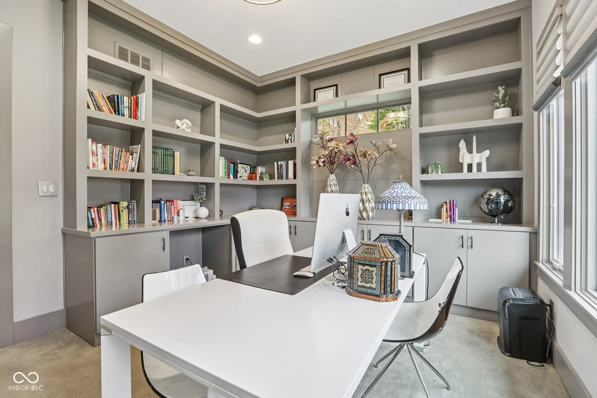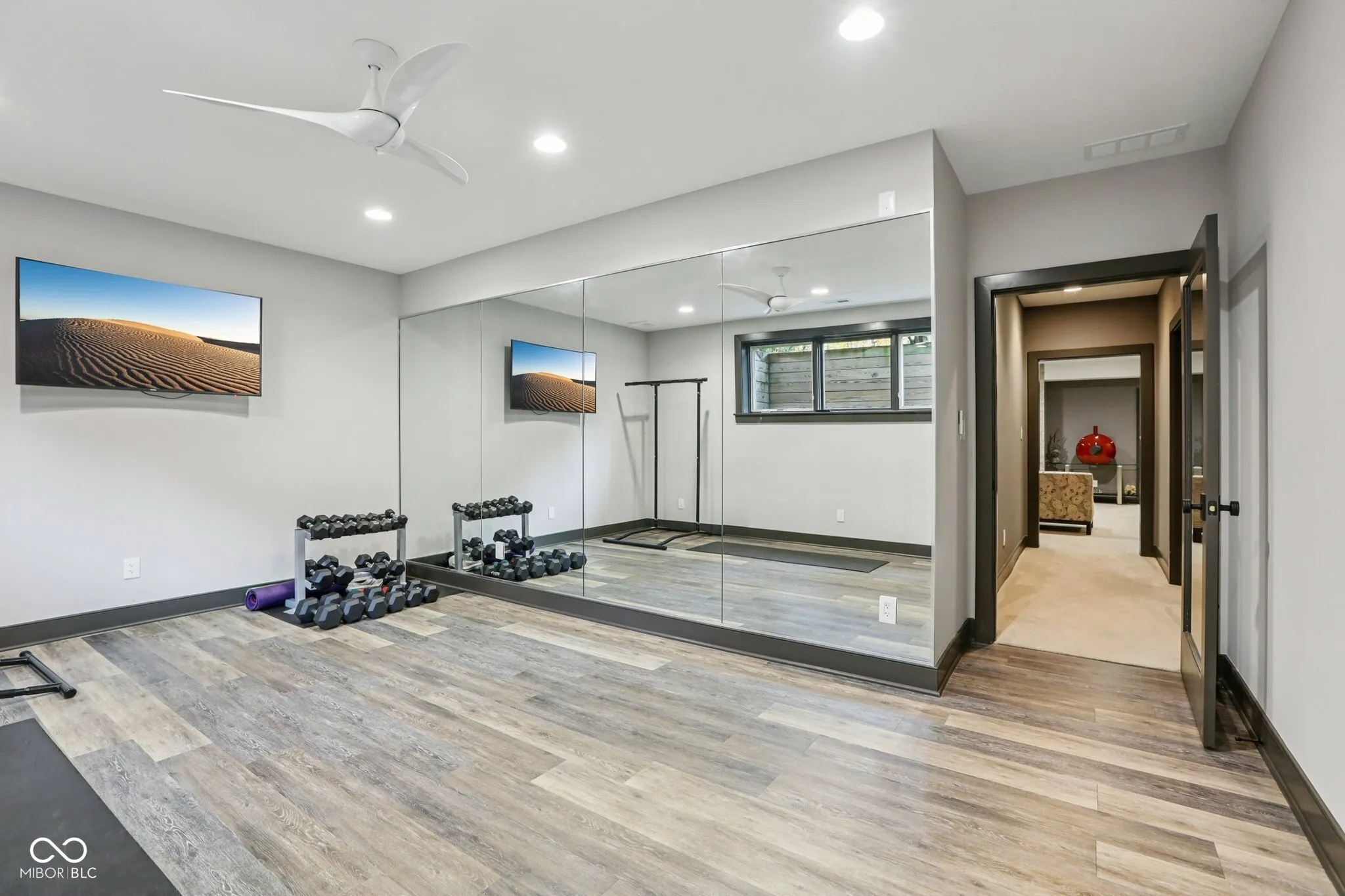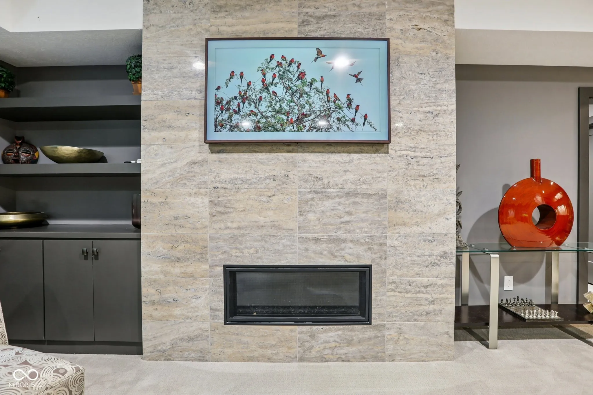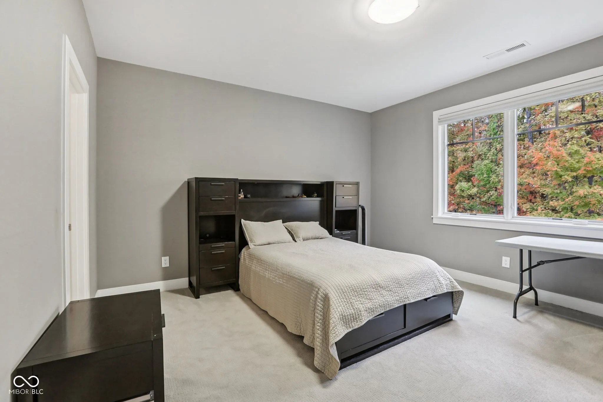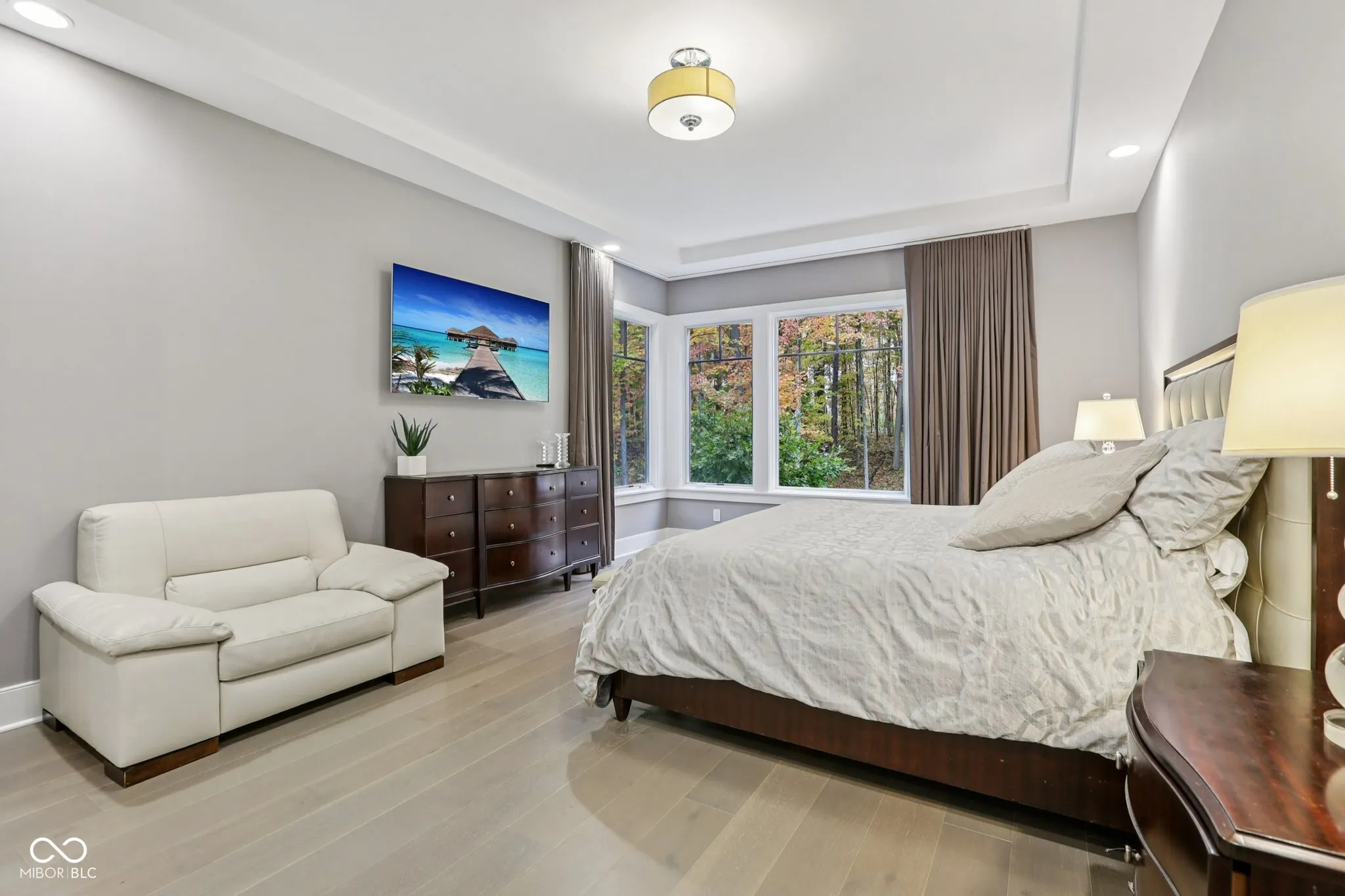 Carmel meets Brown County. Custom built by Old Town Design Group and set against nearly 10 acres of protected forest preserve, this Sunrise on the Monon residence offers something increasingly rare in Carmel: genuine privacy, with easy access to the Monon Trail. The craftsmanship is deliberate throughout: walnut entry door, mahogany transoms, a custom steel and oak staircase, Pella windows. The main-level primary suite is finished with a tray ceiling and spa bath. The kitchen pairs Wolf and Sub-Zero appliances with white acrylic and chocolate bamboo cabinetry. Downstairs, a dedicated theater with a 133″ slate screen and THX-certified Dolby Atmos surround sound. Red cedar garage doors, an EV-ready outlet, Control4 automation, and automated Hunter Douglas shades round out a home that was thought through from the beginning.