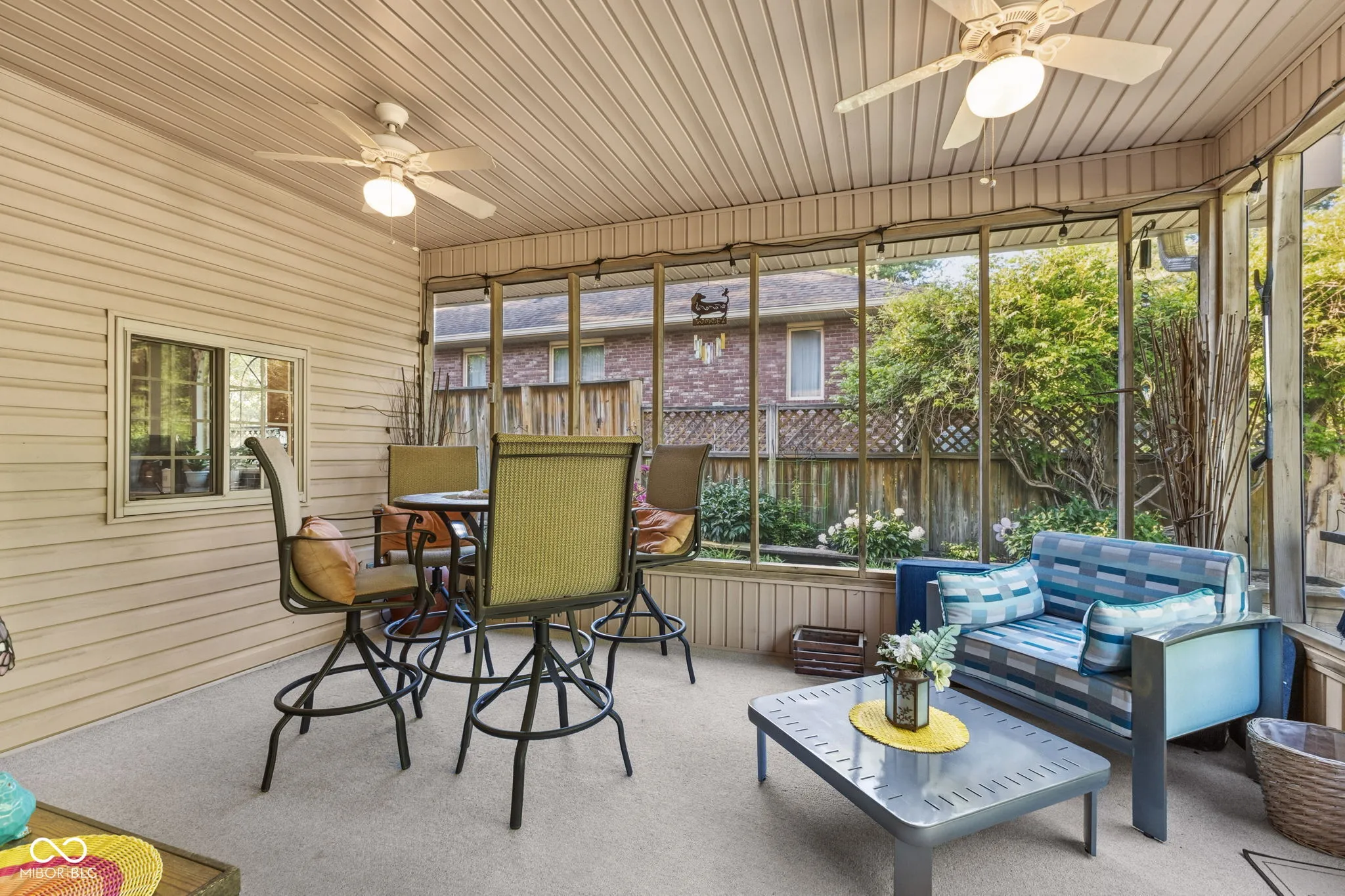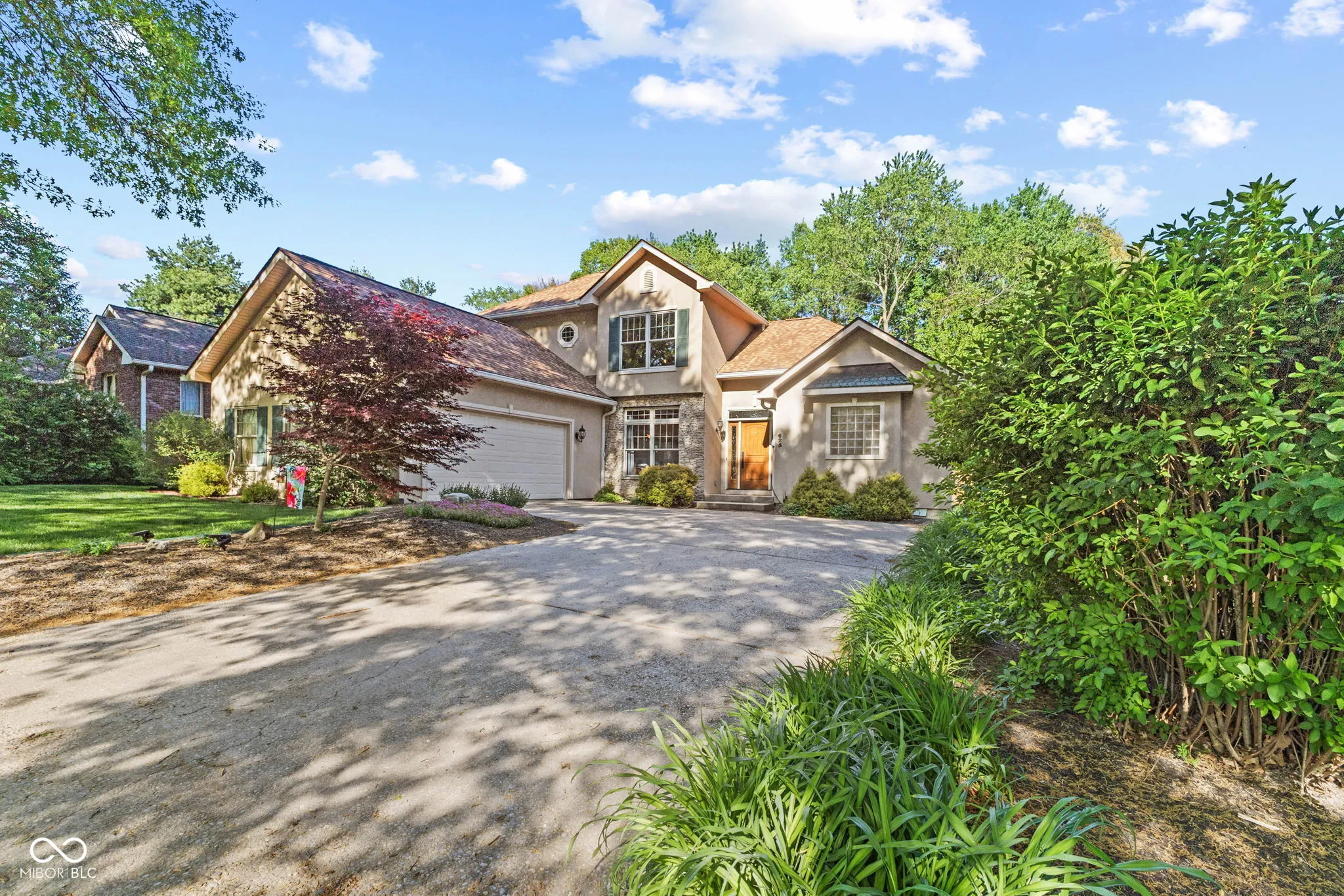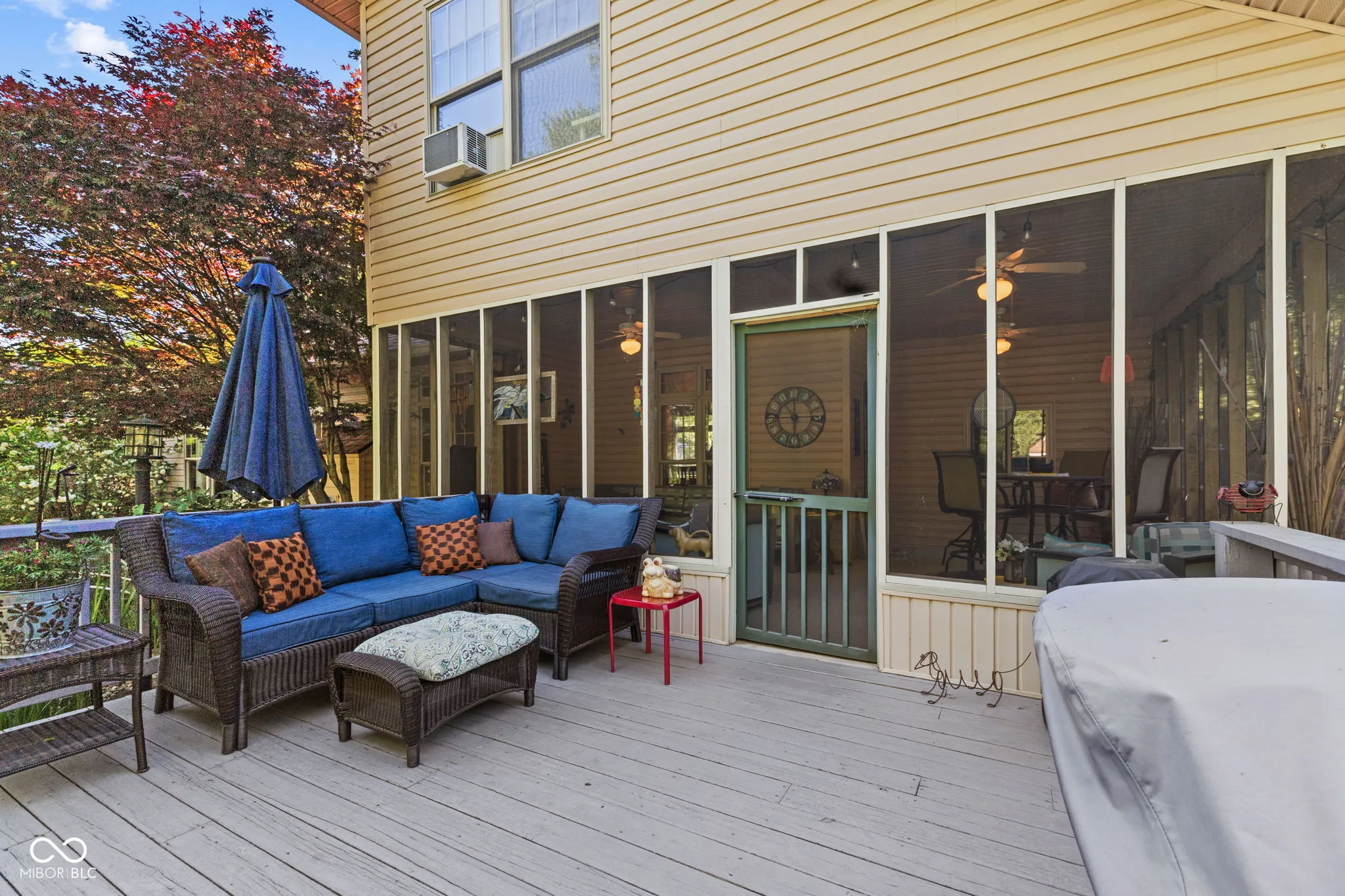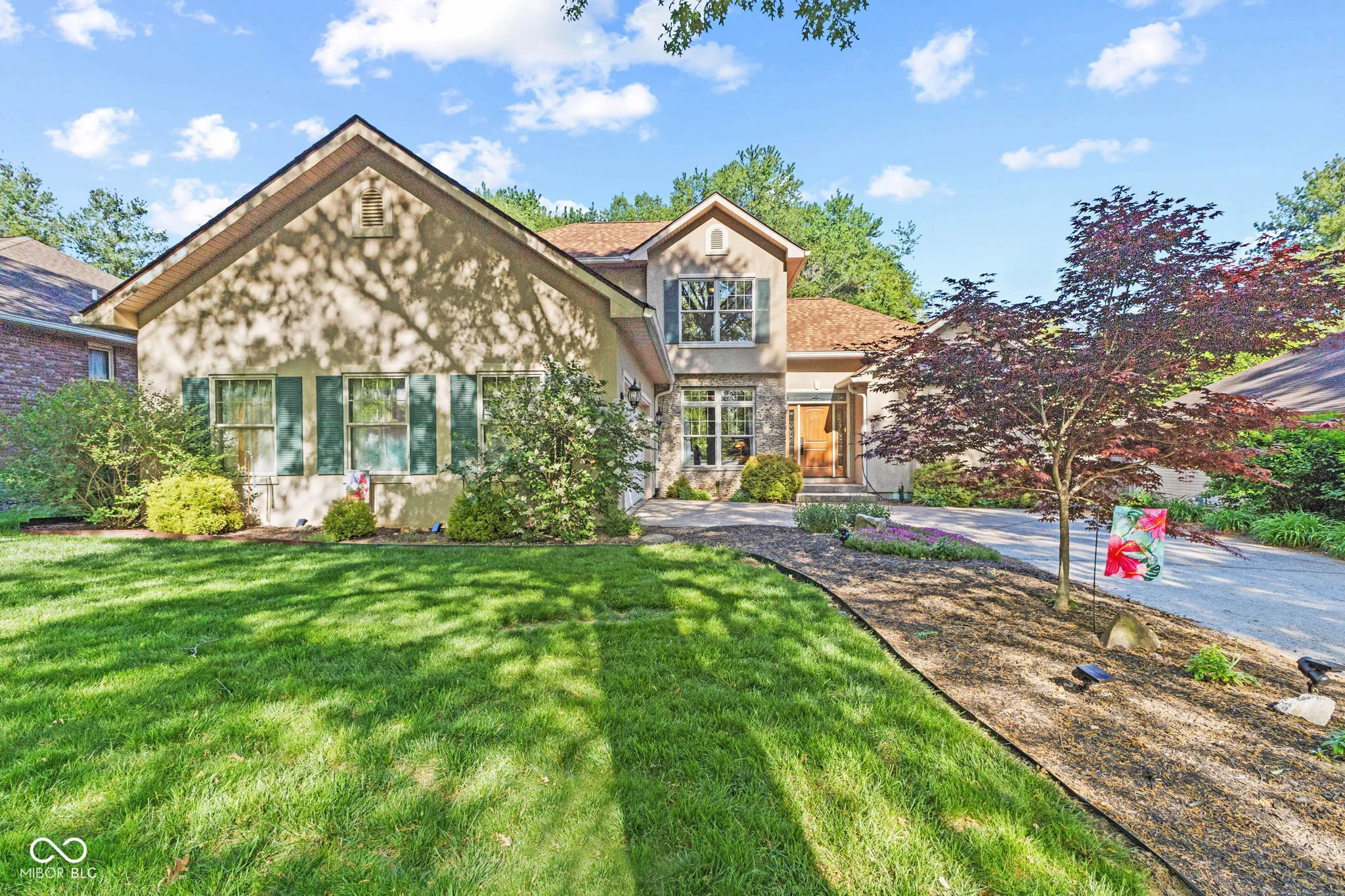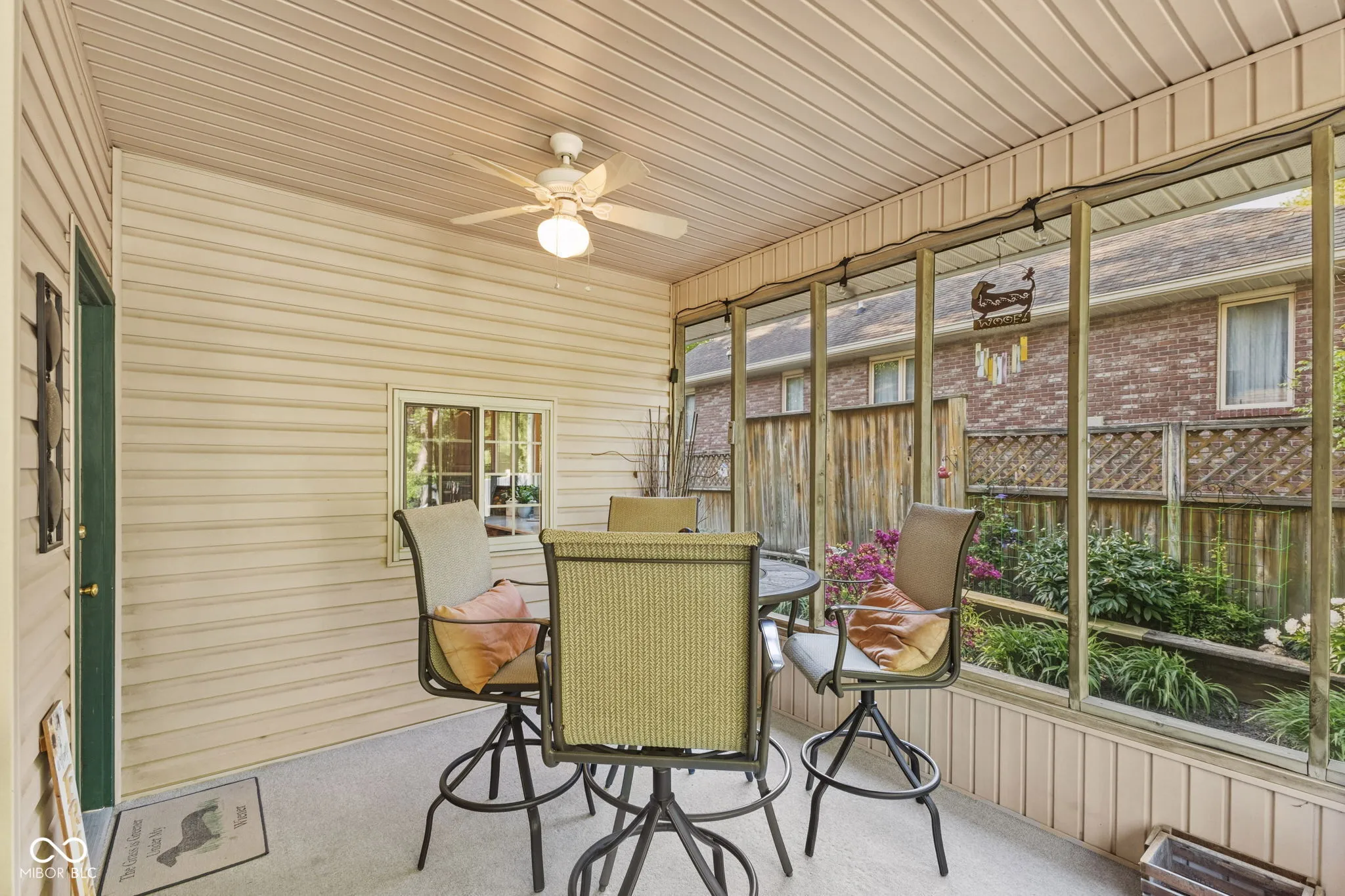 Impeccably maintained and thoughtfully updated, this stunning home reflects nearly 20 years of meticulous care and pride of ownership. The main floor features inviting living and dining spaces, a well-appointed kitchen, laundry, and a versatile flex room ideal for a home office or den. The main floor is also highlighted by a main-level primary suite for ultimate convenience. Upstairs, you’ll find two spacious bedrooms, a full bath, and additional hall space, creating a private and comfortable retreat for family or guests. Recent upgrades include a newer roof with transferable warranty (2023), 3/4″ hardwood floors throughout the main level, new kitchen flooring tile, quartz countertops, wall-mounted microwave/range combination, updated window glass, new HVAC system (2025), and newer water heater (2023) and more-providing both style and peace of mind. Step outside into your own serene, park-like retreat. The backyard offers exceptional privacy, surrounded by mature trees and thoughtfully designed to feel like a true escape. Enjoy the tranquil koi pond, elegant pergola, expansive deck, and custom paver walkway, all complemented by a screened-in 3-season sunroom just off the kitchen and dining area-perfect for effortless indoor-outdoor living. A dedicated storage shed/workshop adds versatility without compromising the beauty of the space. This is a rare opportunity to own a home with quality updates, a versatile layout, and a backyard retreat you’ll love coming home to all while being situated in a highly sought-after neighborhood known for its established charm. Enjoy the convenience of being just minutes from shopping, dining, parks, and Indiana University, while still tucked into a quiet, desirable residential setting.