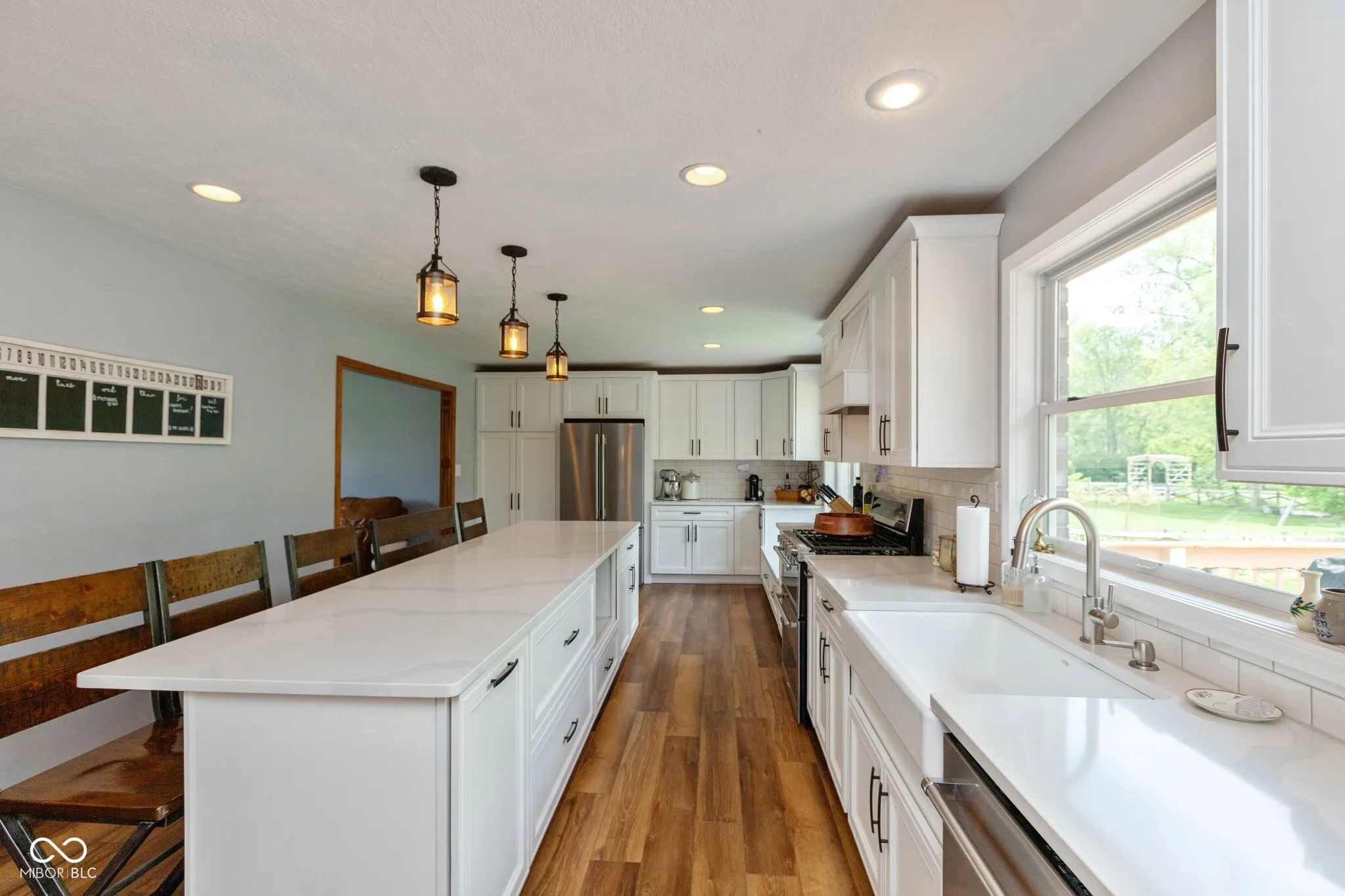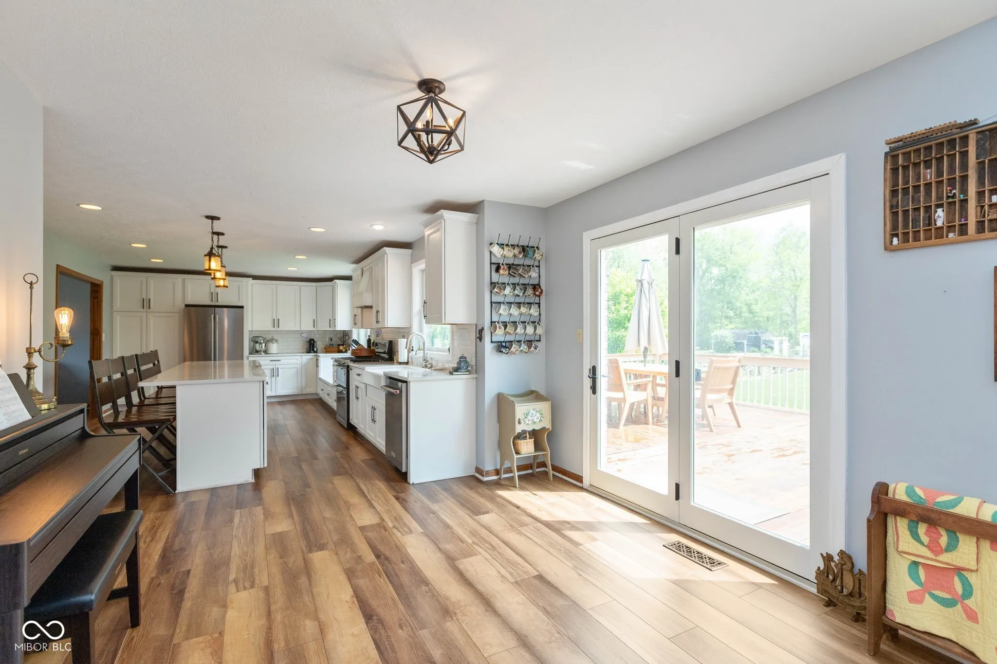 Welcome to this stunning 5 bedroom, 2.5 bath custom home in Plainfield, perfectly blending modern updates with serene outdoor living. The completely remodeled kitchen is the heart of the home, featuring beautiful white quartz countertops, a gas range, stainless steel appliances, and a massive center island with abundant seating-ideal for entertaining or everyday living. Luxury vinyl plank flooring flows seamlessly throughout the entire home, offering both style and durability. Major mechanical updates provide peace of mind, including a furnace and A/C that are just 5 years old and a brand-new water heater. Step outside to your private retreat-this property sits on over an acre with a picturesque backyard that includes mature woods and a peaceful creek. Enjoy outdoor gatherings or quiet mornings on the 800 sq ft wood deck, offering plenty of space to relax and take in the natural surroundings. With generous living space, thoughtful updates, and a rare lot setting, this one is a must-see!
