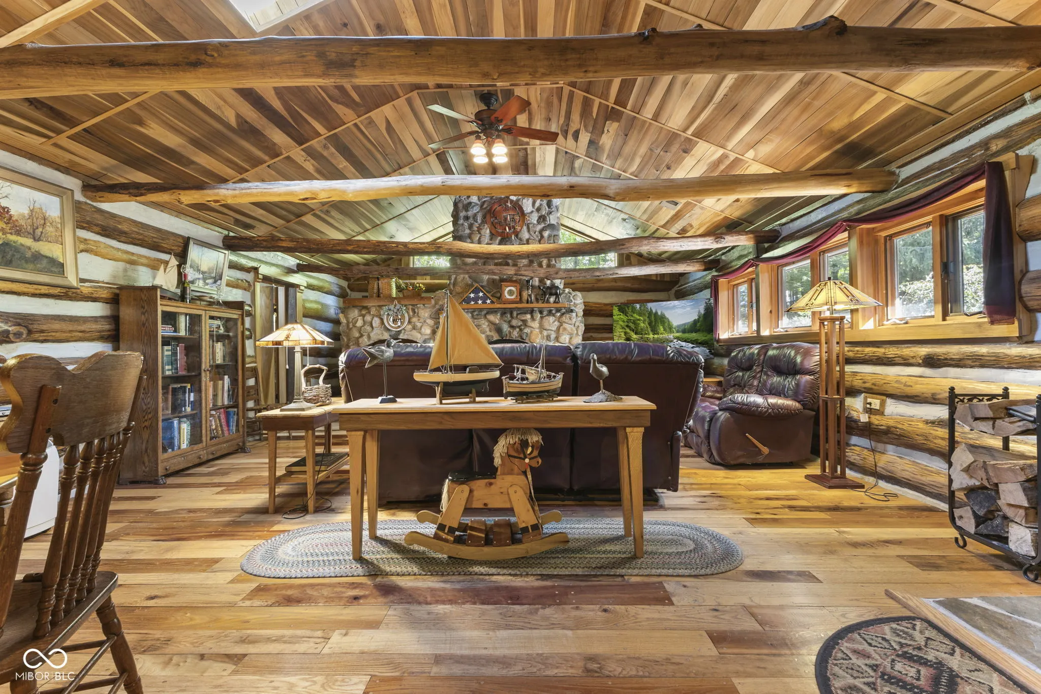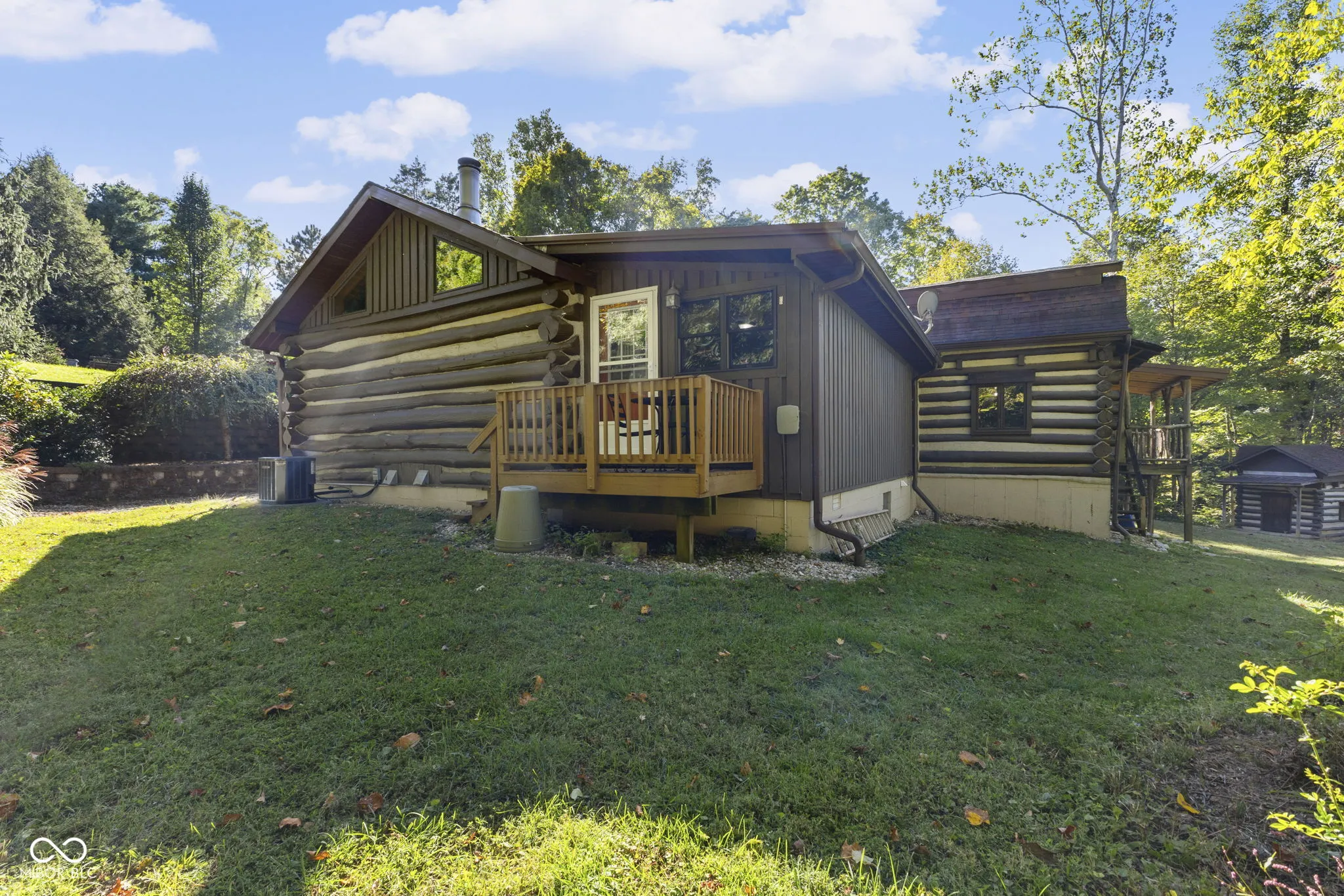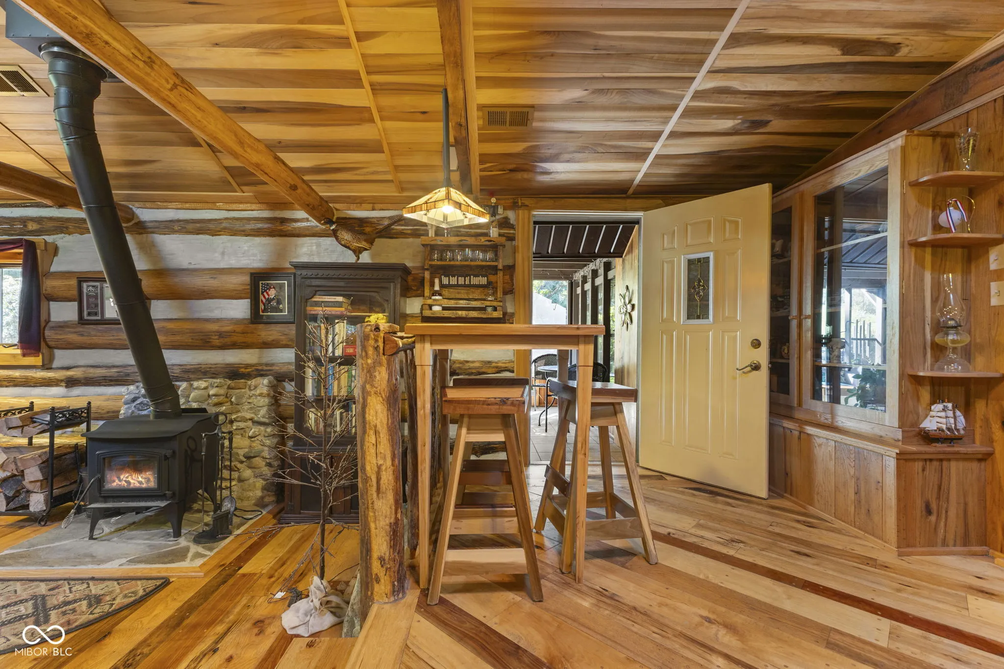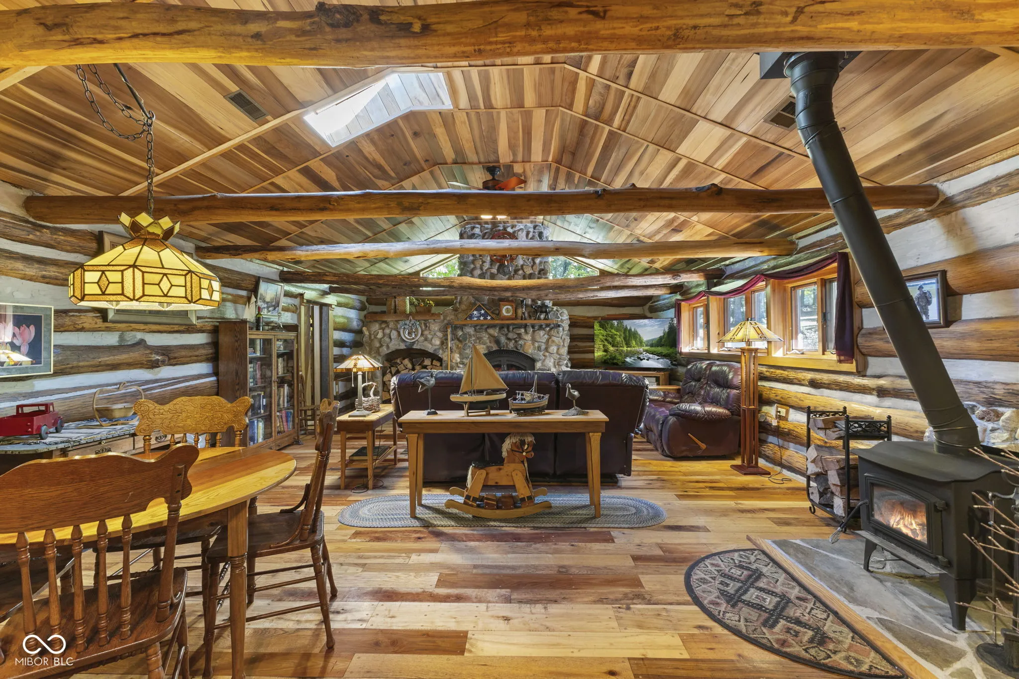 Tucked away down a private lane behind the renowned Link Observatory, this extraordinary log home rests atop a secluded 23-acre hilltop retreat. What began as a humble cabin has been lovingly expanded over decades by the owner, using timber harvested right from the land itself-making this home truly one of a kind. Step inside to find rich hardwood floors and handcrafted details at every turn. Each room reveals its own personality, from the cozy nooks to the sun-drenched solarium that fills the home with warmth and natural light. The spacious kitchen showcases Amish-made cabinetry, dual sinks, and abundant counter space-ideal for meal prep, entertaining, or gathering with friends and family. At the heart of the home lies the stunning great room-an entertainer’s dream-featuring soaring vaulted ceilings, a dramatic wood-burning fireplace, and a custom-built bar perfect for gatherings. Three additional freestanding wood stoves add both warmth and rustic charm throughout the home. The main-level primary suite offers a peaceful retreat with an ensuite bath, a generous walk-in closet connecting to a private office or secondary bedroom, and direct access to the outside. Outside, the magic continues. Multiple decks and a screened porch invite you to take in the surrounding natural beauty from every angle. Several outbuildings provide plenty of space for equipment, ATVs, or hobbies, while several trails wind through your private wooded paradise. The elevated setting offers breathtaking views that rival any mountain cabin-panoramic fall foliage, spectacular sunsets, and even distant fireworks on clear nights. Here, you’ll experience nature at your doorstep without sacrificing modern comfort. A property of this caliber is rarely available. This is more than a home-it’s a legacy, built by hand and meant to be che