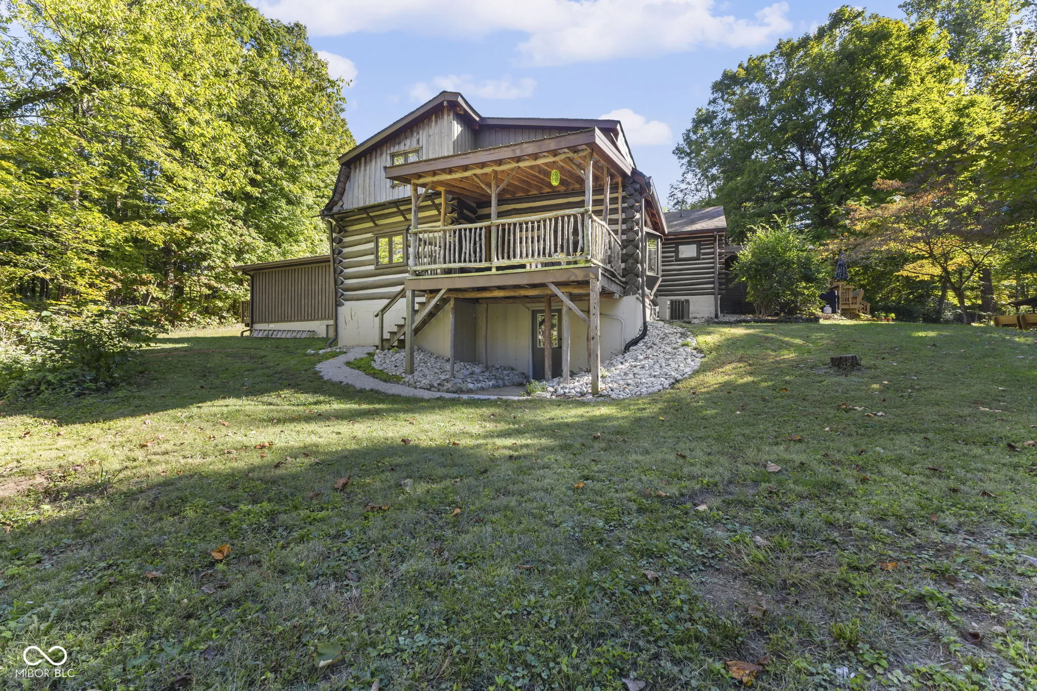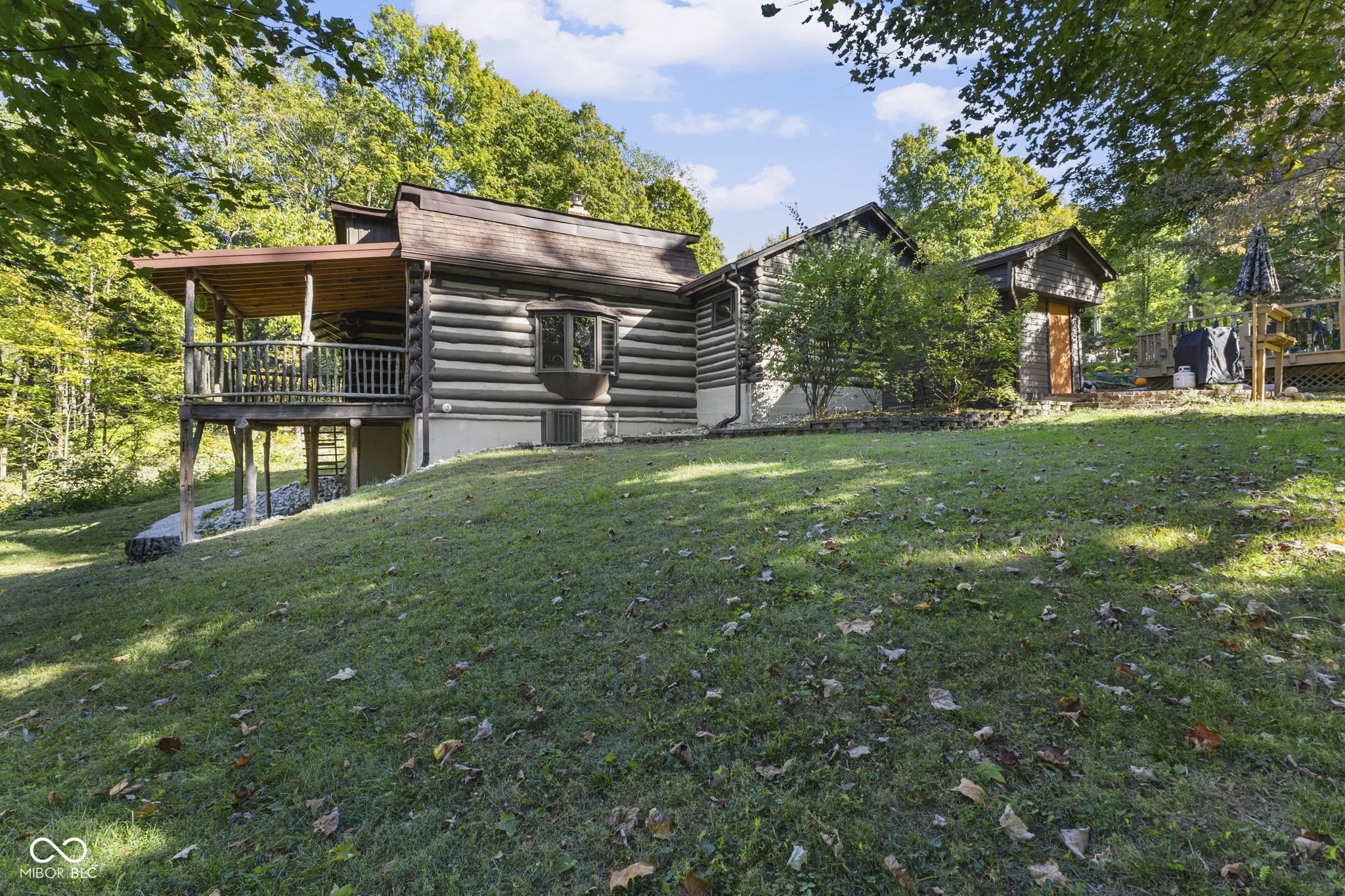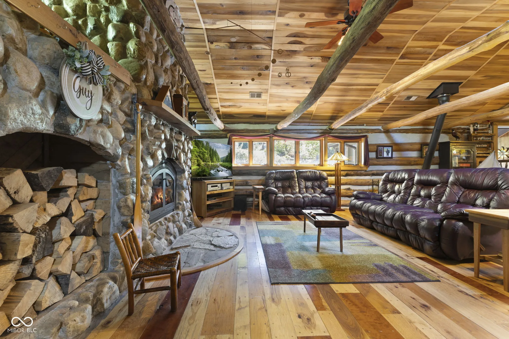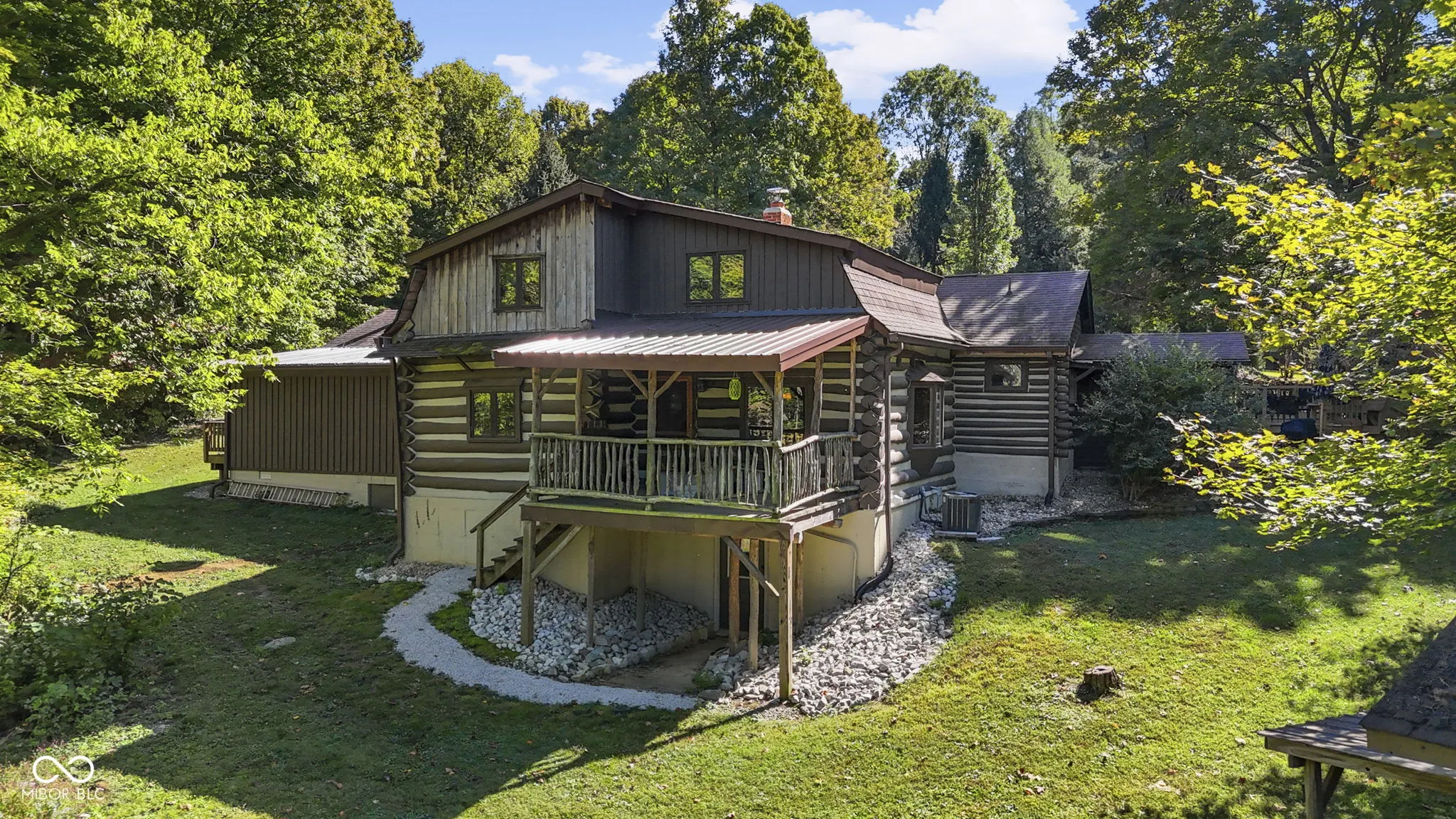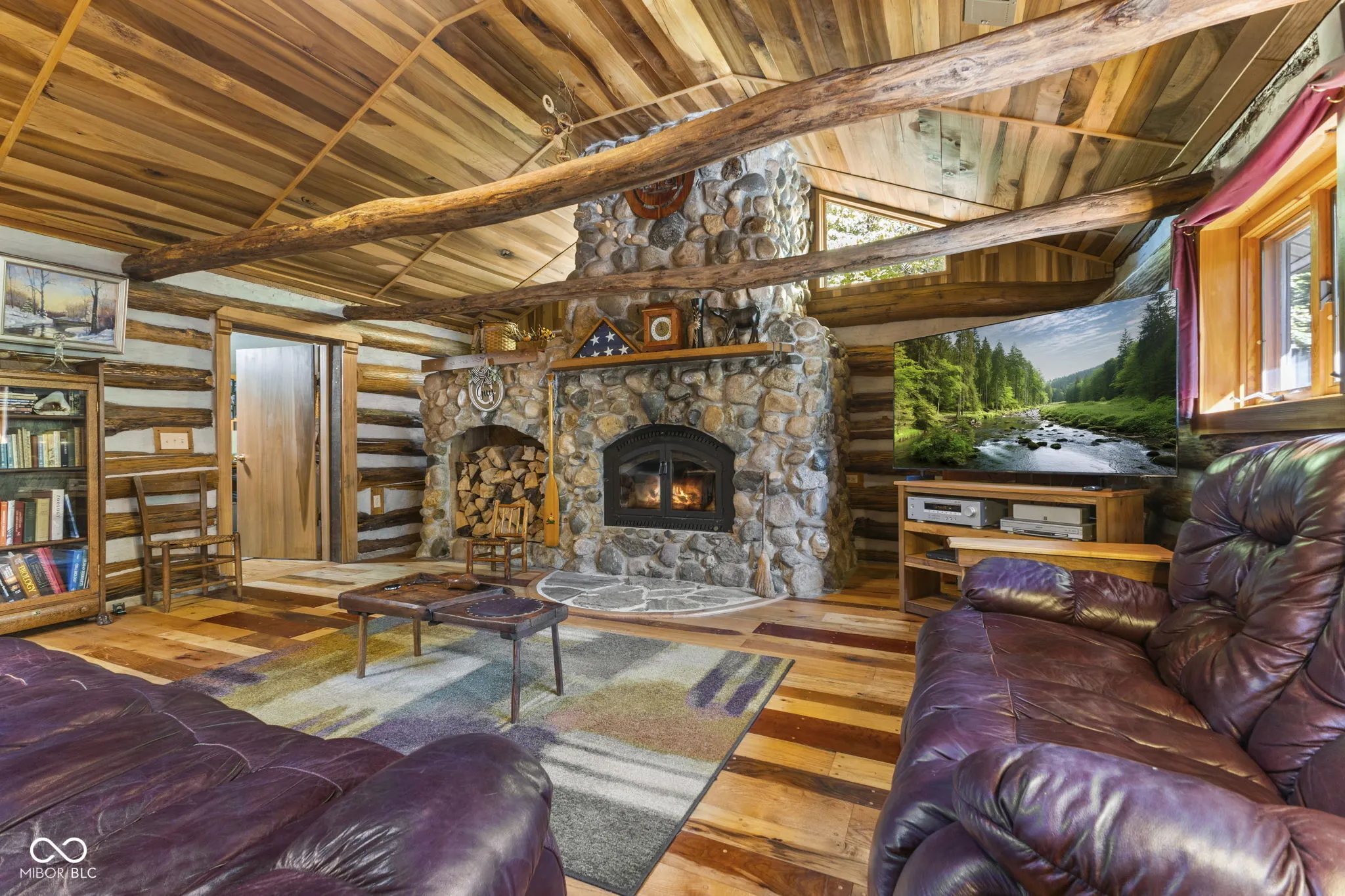 Tucked away down a private lane behind the renowned Link Observatory, this extraordinary log home rests atop a secluded 23-acre hilltop retreat. What began as a humble cabin has been lovingly expanded over decades by the owner, using timber harvested right from the land itself-making this home truly one of a kind. Step inside to find rich hardwood floors and handcrafted details at every turn. Each room reveals its own personality, from the cozy nooks to the sun-drenched solarium that fills the home with warmth and natural light. The spacious kitchen showcases Amish-made cabinetry, dual sinks, and abundant counter space-ideal for meal prep, entertaining, or gathering with friends and family. At the heart of the home lies the stunning great room-an entertainer’s dream-featuring soaring vaulted ceilings, a dramatic wood-burning fireplace, and a custom-built bar perfect for gatherings. Three additional freestanding wood stoves add both warmth and rustic charm throughout the home. The main-level primary suite offers a peaceful retreat with an ensuite bath, a generous walk-in closet connecting to a private office or secondary bedroom, and direct access to the outside. Outside, the magic continues. Multiple decks and a screened porch invite you to take in the surrounding natural beauty from every angle. Several outbuildings provide plenty of space for equipment, ATVs, or hobbies, while several trails wind through your private wooded paradise. The elevated setting offers breathtaking views that rival any mountain cabin-panoramic fall foliage, spectacular sunsets, and even distant fireworks on clear nights. Here, you’ll experience nature at your doorstep without sacrificing modern comfort. A property of this caliber is rarely available. This is more than a home-it’s a legacy, built by hand and meant to be che
