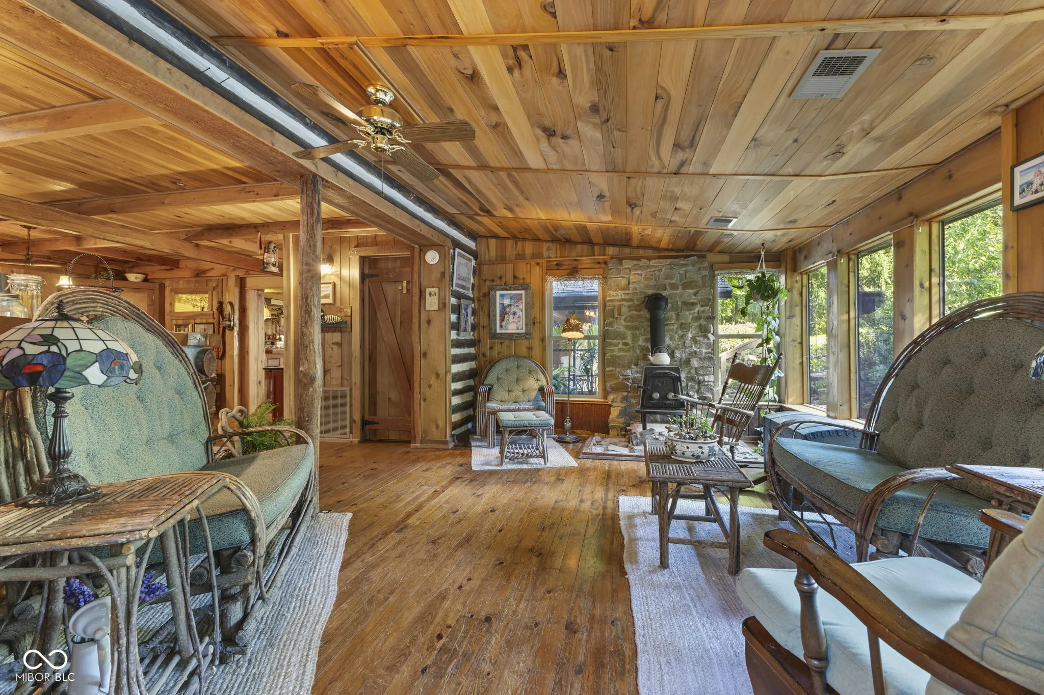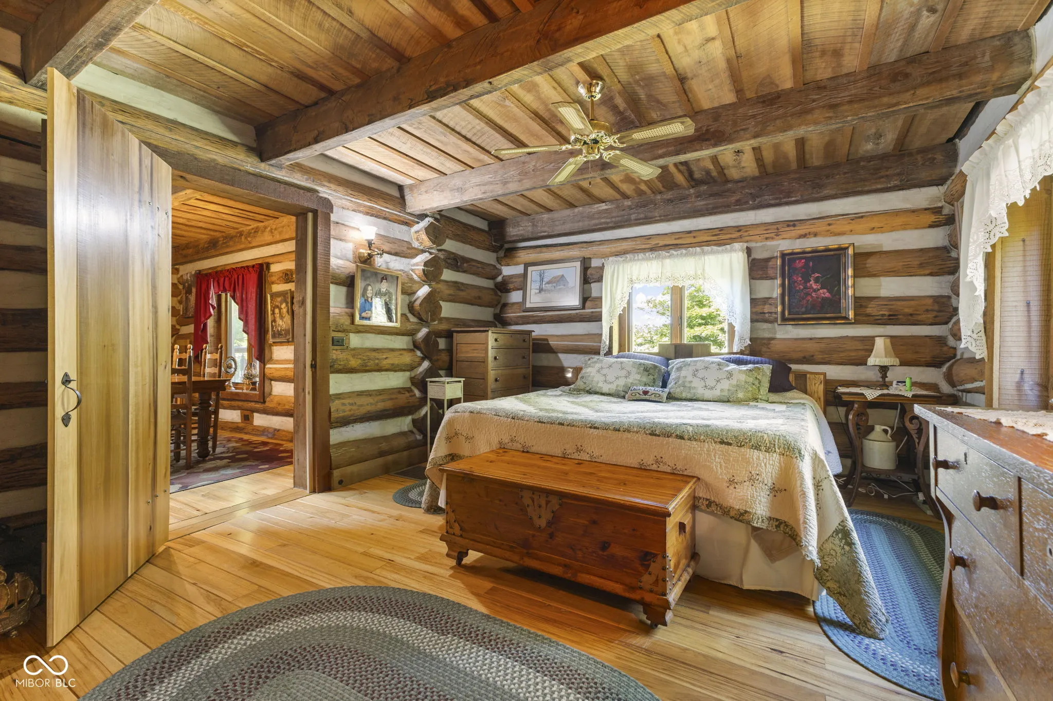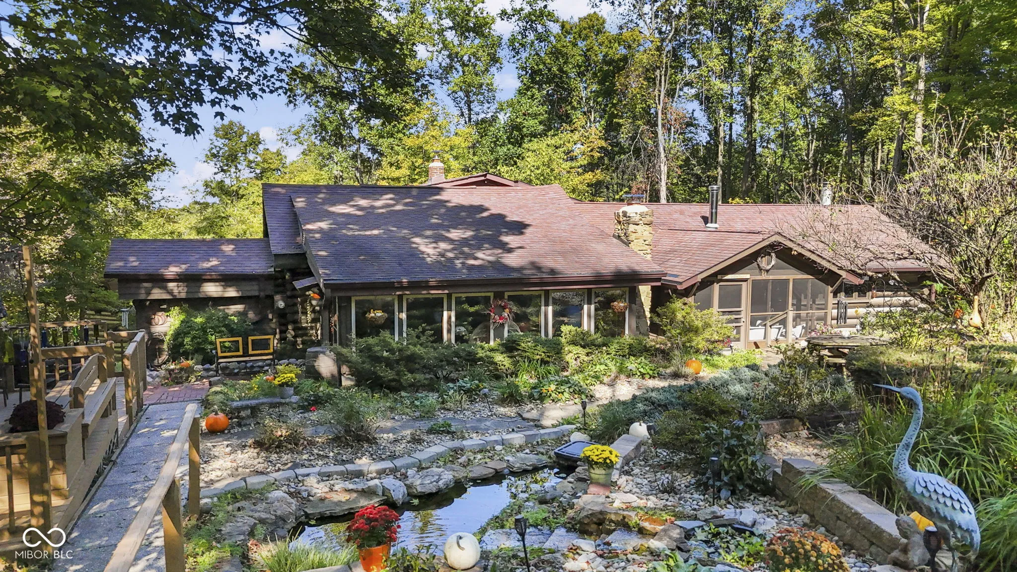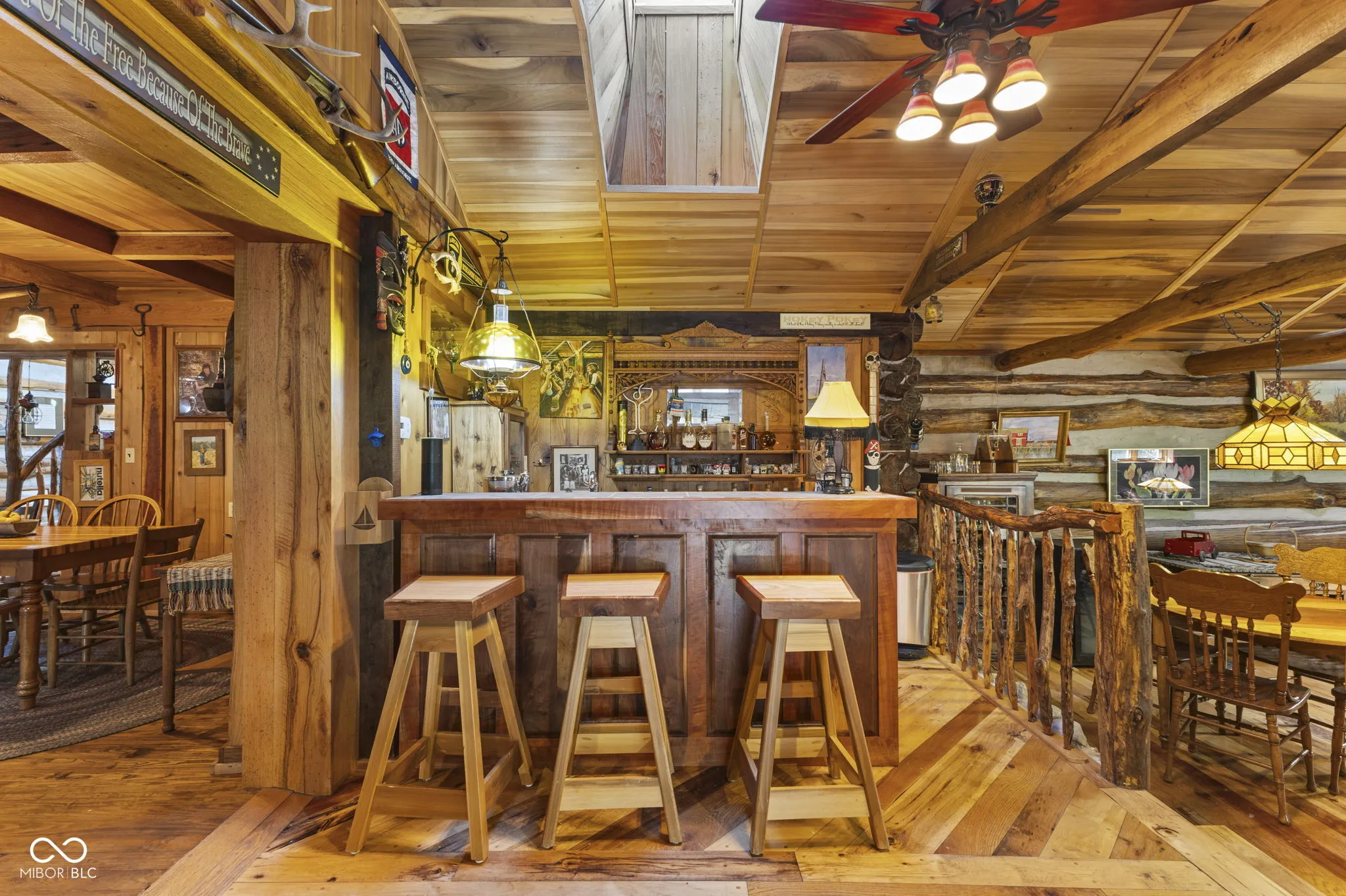 Tucked away down a private lane behind the renowned Link Observatory, this extraordinary log home rests atop a secluded 23-acre hilltop retreat. What began as a humble cabin has been lovingly expanded over decades by the owner, using timber harvested right from the land itself-making this home truly one of a kind. Step inside to find rich hardwood floors and handcrafted details at every turn. Each room reveals its own personality, from the cozy nooks to the sun-drenched solarium that fills the home with warmth and natural light. The spacious kitchen showcases Amish-made cabinetry, dual sinks, and abundant counter space-ideal for meal prep, entertaining, or gathering with friends and family. At the heart of the home lies the stunning great room-an entertainer’s dream-featuring soaring vaulted ceilings, a dramatic wood-burning fireplace, and a custom-built bar perfect for gatherings. Three additional freestanding wood stoves add both warmth and rustic charm throughout the home. The main-level primary suite offers a peaceful retreat with an ensuite bath, a generous walk-in closet connecting to a private office or secondary bedroom, and direct access to the outside. Outside, the magic continues. Multiple decks and a screened porch invite you to take in the surrounding natural beauty from every angle. Several outbuildings provide plenty of space for equipment, ATVs, or hobbies, while several trails wind through your private wooded paradise. The elevated setting offers breathtaking views that rival any mountain cabin-panoramic fall foliage, spectacular sunsets, and even distant fireworks on clear nights. Here, you’ll experience nature at your doorstep without sacrificing modern comfort. A property of this caliber is rarely available. This is more than a home-it’s a legacy, built by hand and meant to be che