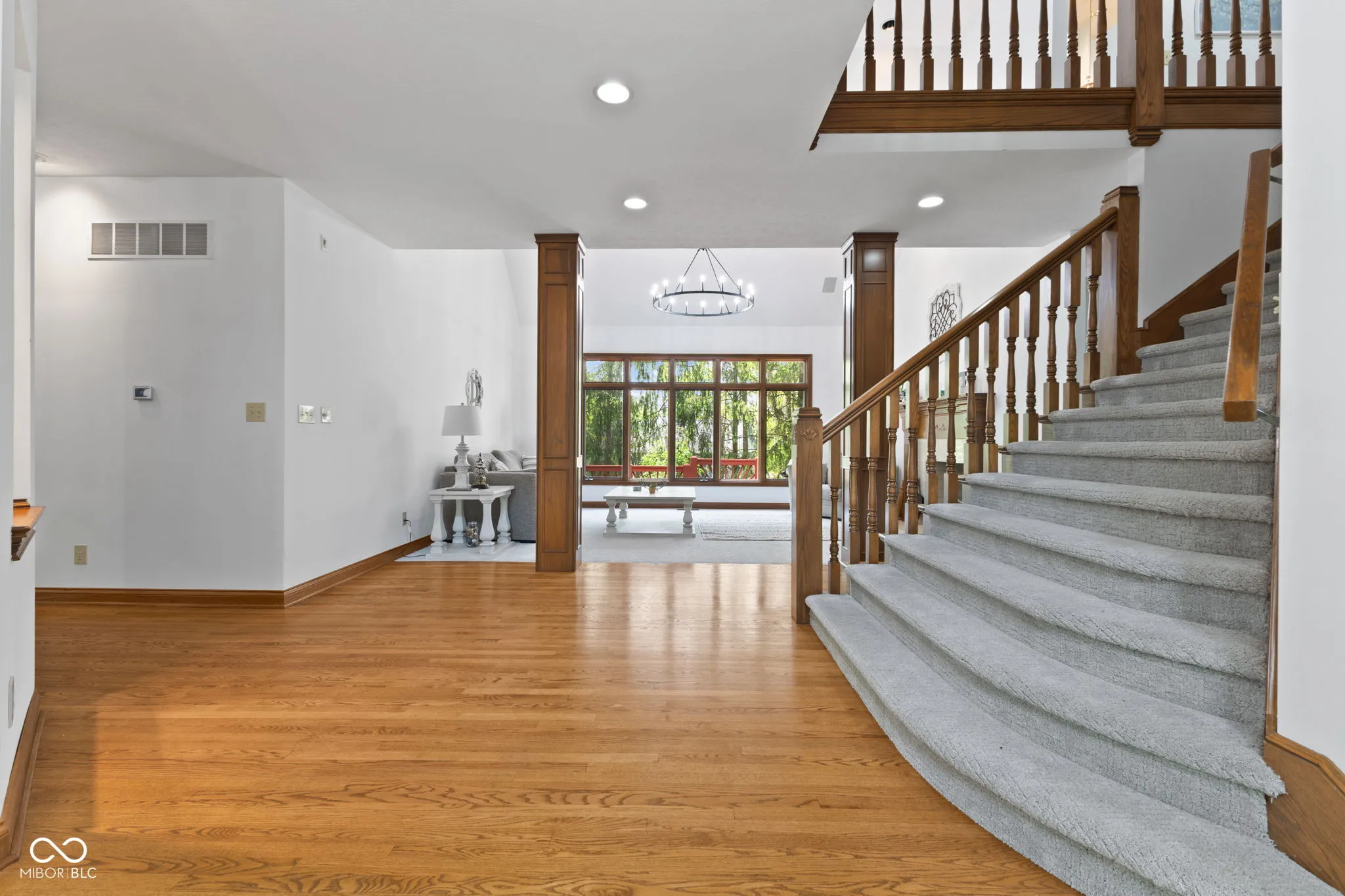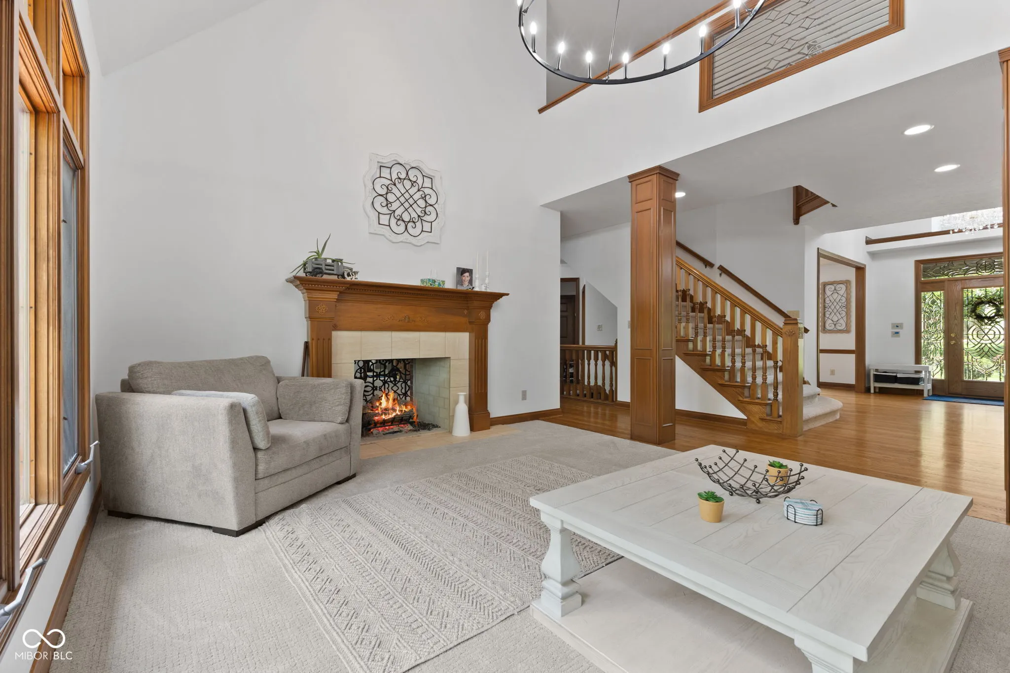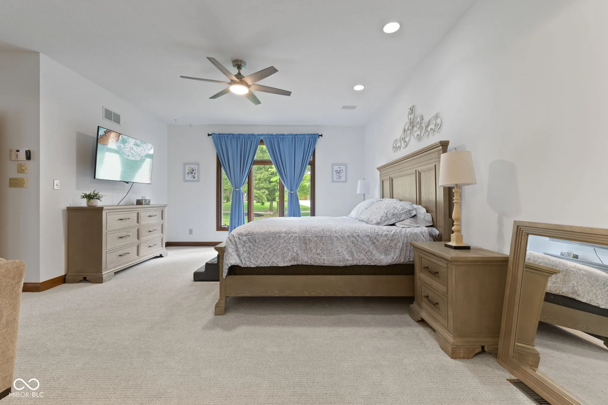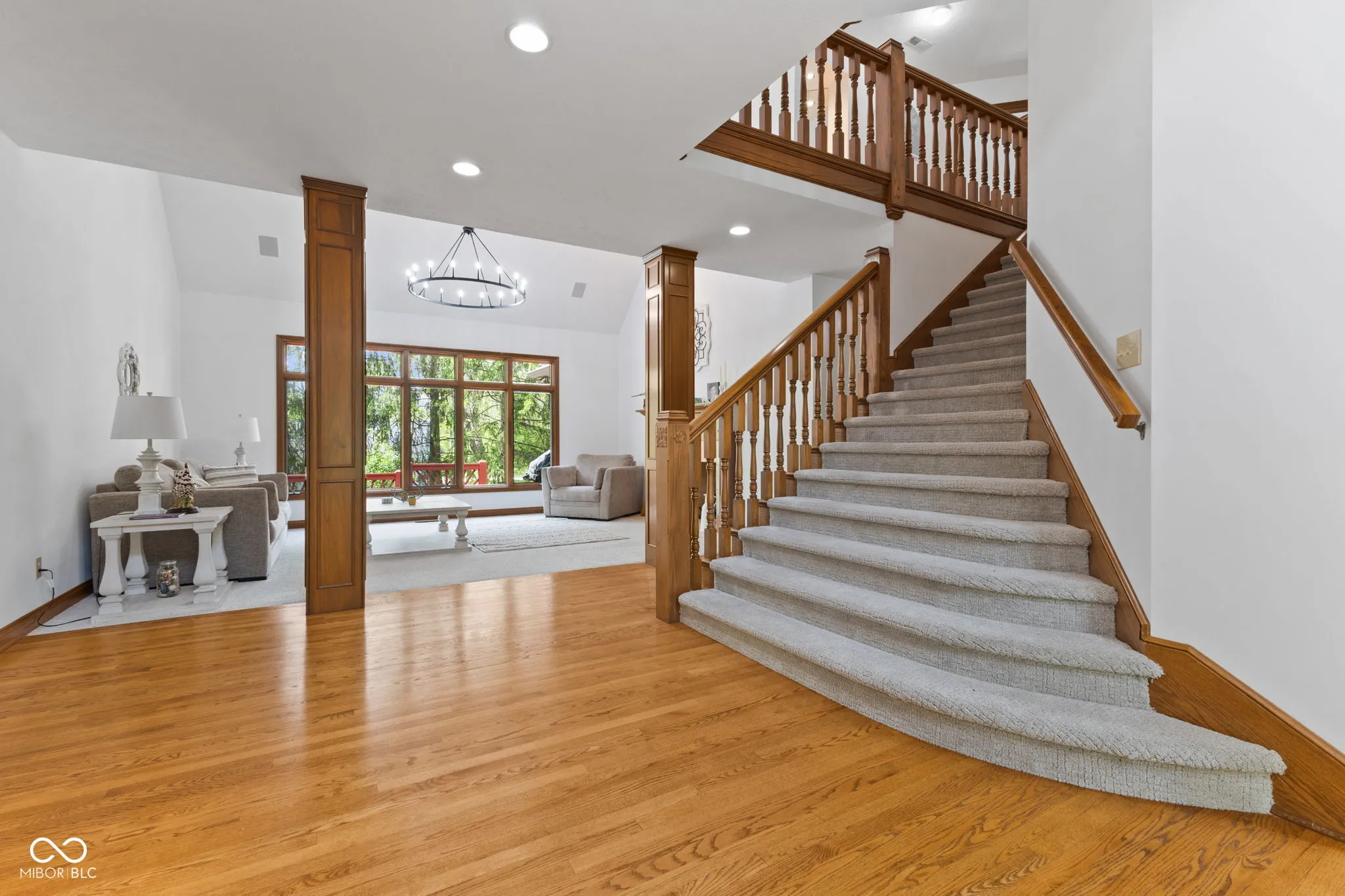Presenting a distinguished custom-built residence in the highly desirable Eagle Trace community, this two-owner home offers an exceptional blend of space, craftsmanship, and opportunity. Situated on a generous 0.58-acre lot, the property features 6 bedrooms, 4 full and 2 half baths, and a 4-car garage, delivering the functionality today’s buyers are searching for. A grand two-story foyer sets the tone, leading into expansive living spaces enhanced by rich oak flooring, detailed wood trim, soaring ceilings, and fresh neutral finishes throughout. Multiple gathering areas provide flexibility for everyday living and entertaining, including a great room, a dual-fireplace living room, and a light-filled breakfast nook overlooking the private, fully fenced backyard with mature trees and natural privacy. The main-level primary suite offers a spacious retreat with dual vanities, a soaking tub, and a walk-in closet. The walkout lower level expands the living space with additional bedrooms, a large family room with fireplace, and a wet bar, ideal for guests, multi-generational living, or entertaining. A rare and valuable feature, the home includes an expansive 800+ square foot storm shelter, providing added security, storage, or flexible use space that is increasingly sought after. Enjoy a peaceful outdoor setting while still being conveniently located near everyday amenities. Ideal for relocation buyers, this home offers easy access to downtown Indianapolis, major interstates, and leading employers such as Eli Lilly and Company and Cummins Inc., along with proximity to top healthcare systems including IU Health, Ascension St. Vincent, and Community Health Network. This home presents a rare opportunity to own a well-built, meticulously maintained property with timeless character, offering the perfect canvas to personalize while benefiting from solid construction and a prime location.