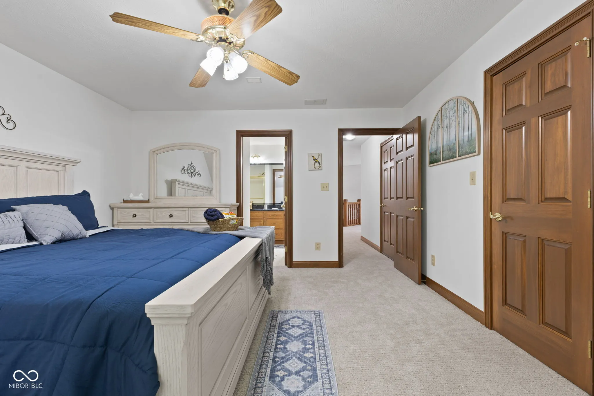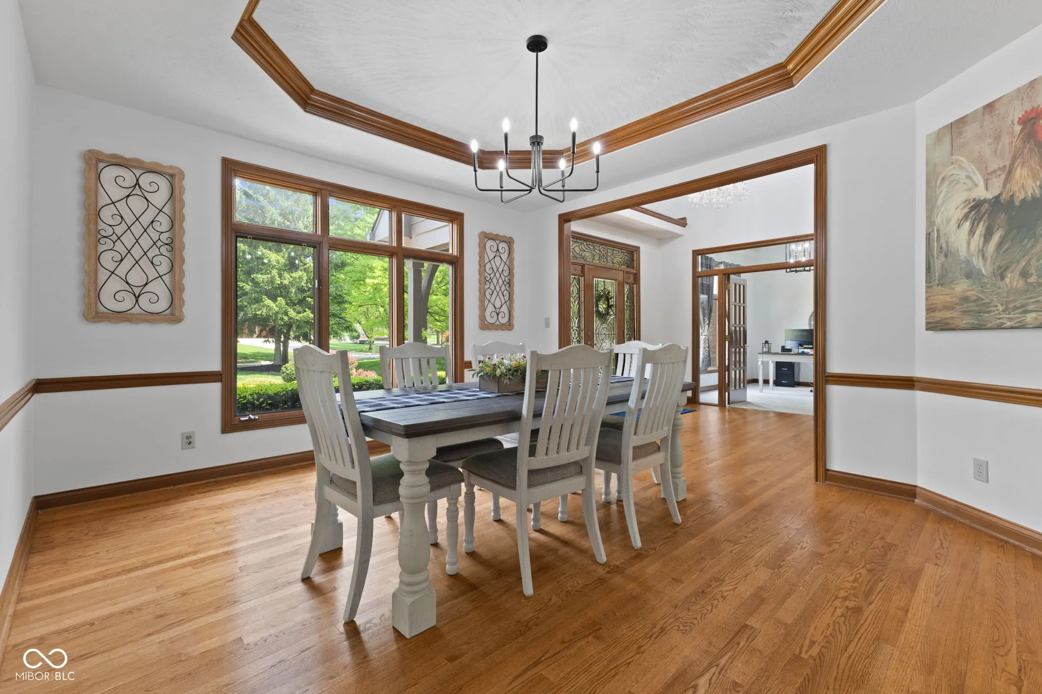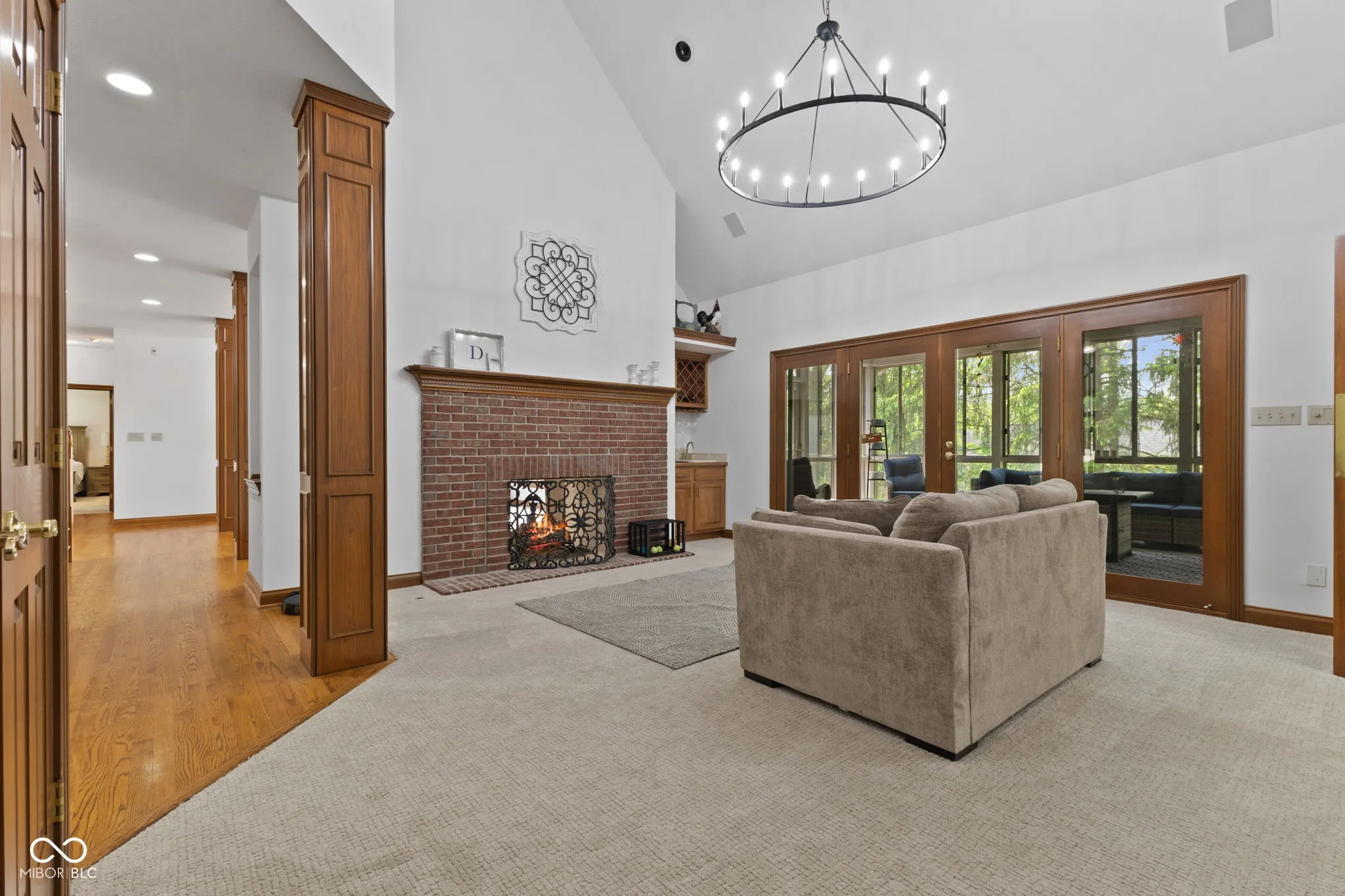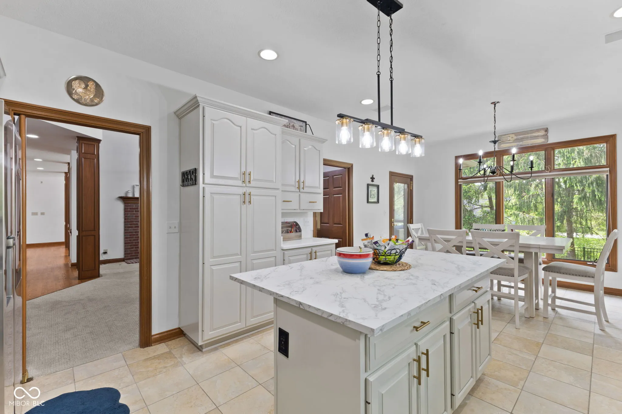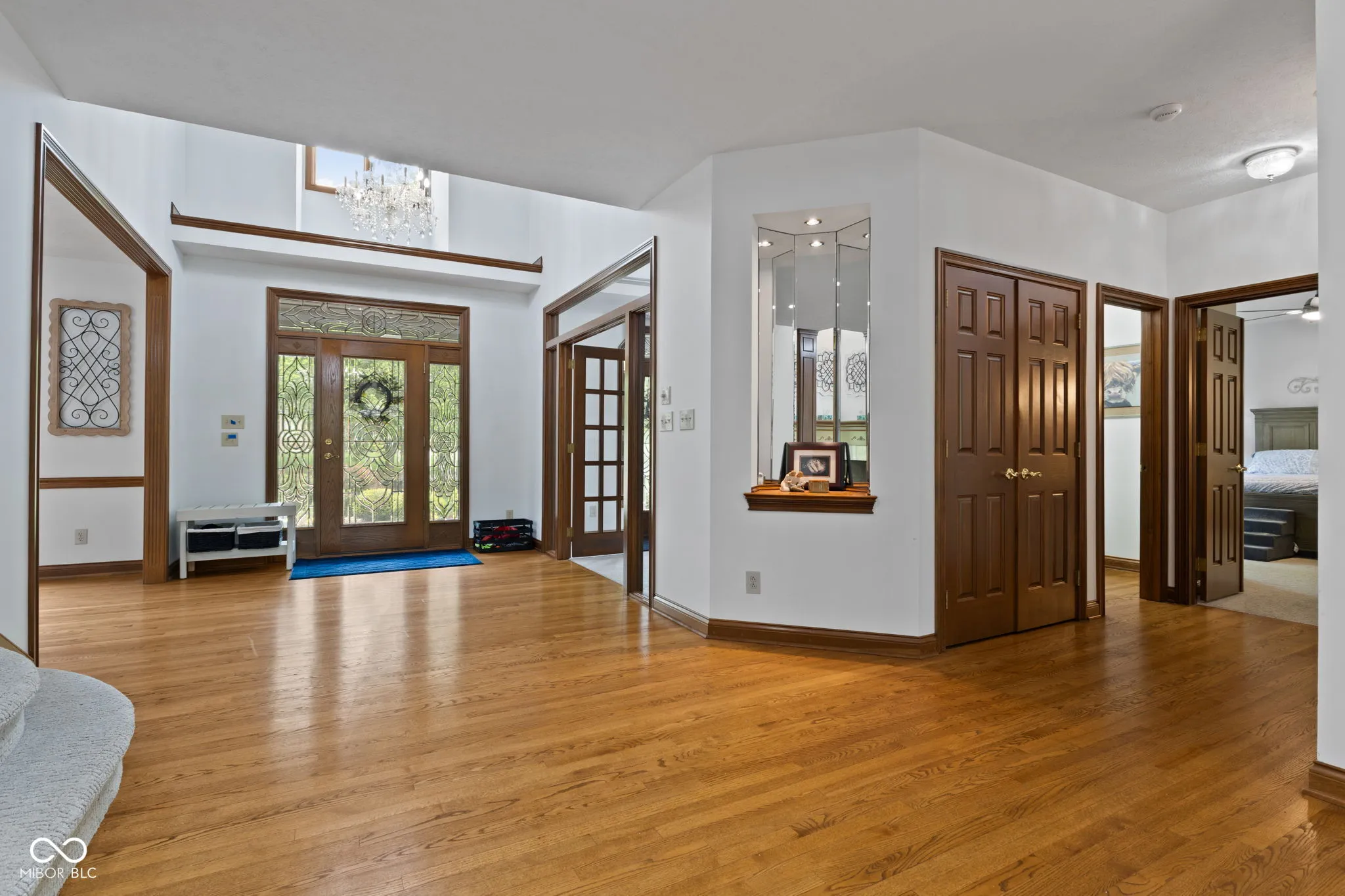 Presenting a distinguished custom-built residence in the highly desirable Eagle Trace community, this two-owner home offers an exceptional blend of space, craftsmanship, and opportunity. Situated on a generous 0.58-acre lot, the property features 6 bedrooms, 4 full and 2 half baths, and a 4-car garage, delivering the functionality today’s buyers are searching for. A grand two-story foyer sets the tone, leading into expansive living spaces enhanced by rich oak flooring, detailed wood trim, soaring ceilings, and fresh neutral finishes throughout. Multiple gathering areas provide flexibility for everyday living and entertaining, including a great room, a dual-fireplace living room, and a light-filled breakfast nook overlooking the private, fully fenced backyard with mature trees and natural privacy. The main-level primary suite offers a spacious retreat with dual vanities, a soaking tub, and a walk-in closet. The walkout lower level expands the living space with additional bedrooms, a large family room with fireplace, and a wet bar, ideal for guests, multi-generational living, or entertaining. A rare and valuable feature, the home includes an expansive 800+ square foot storm shelter, providing added security, storage, or flexible use space that is increasingly sought after. Enjoy a peaceful outdoor setting while still being conveniently located near everyday amenities. Ideal for relocation buyers, this home offers easy access to downtown Indianapolis, major interstates, and leading employers such as Eli Lilly and Company and Cummins Inc., along with proximity to top healthcare systems including IU Health, Ascension St. Vincent, and Community Health Network. This home presents a rare opportunity to own a well-built, meticulously maintained property with timeless character, offering the perfect canvas to personalize while benefiting from solid construction and a prime location.