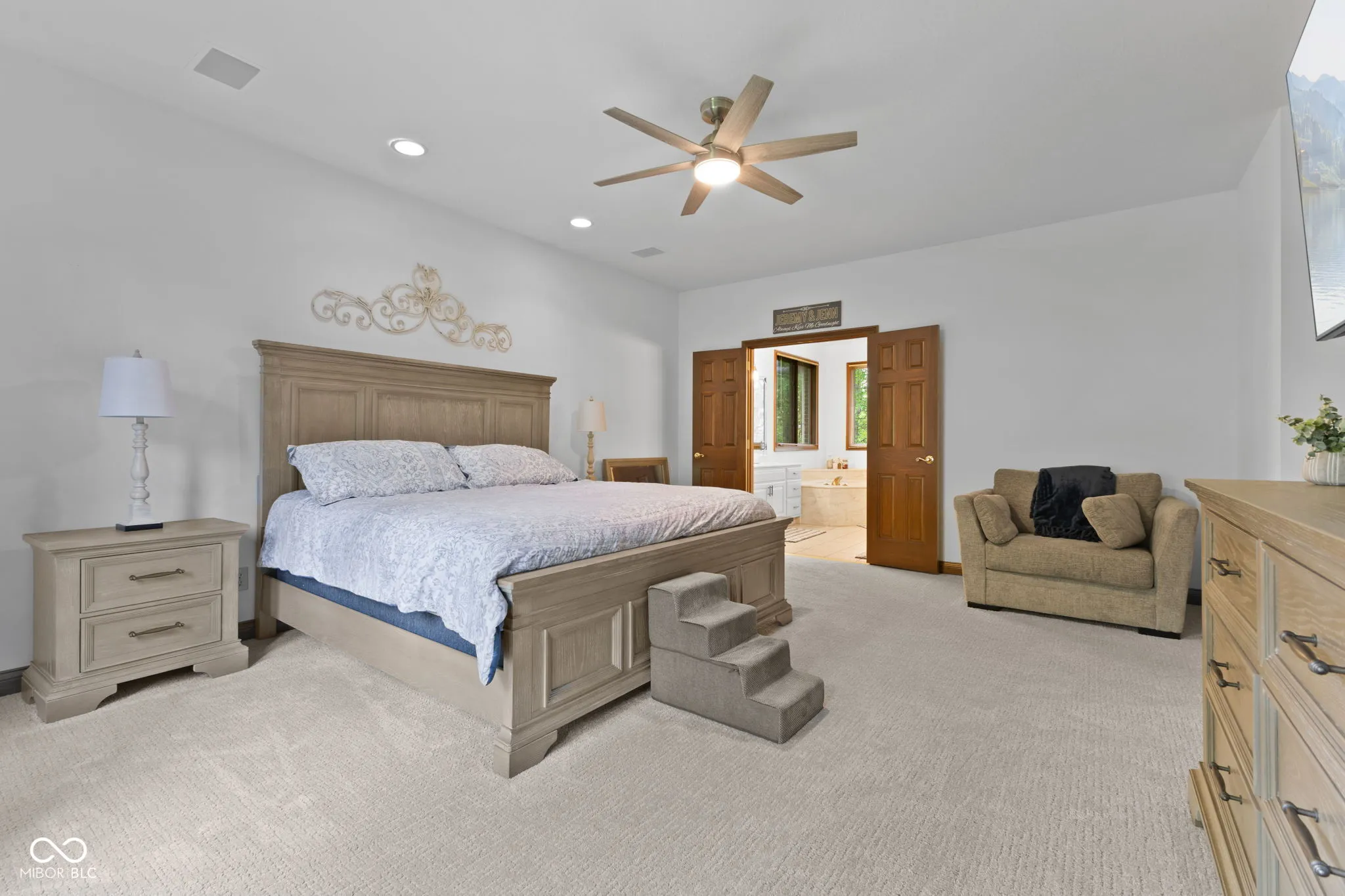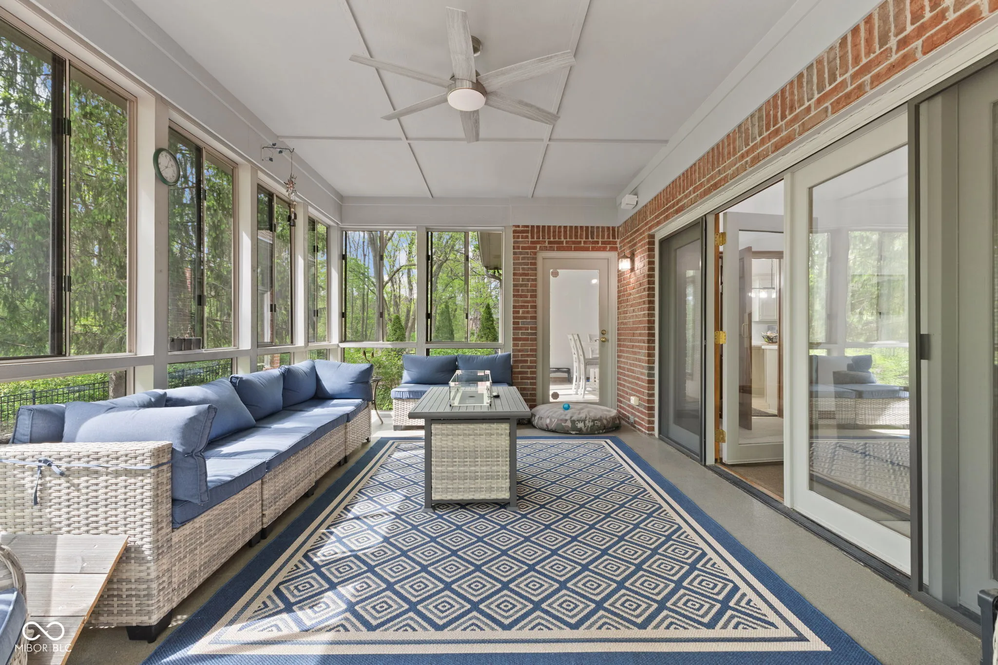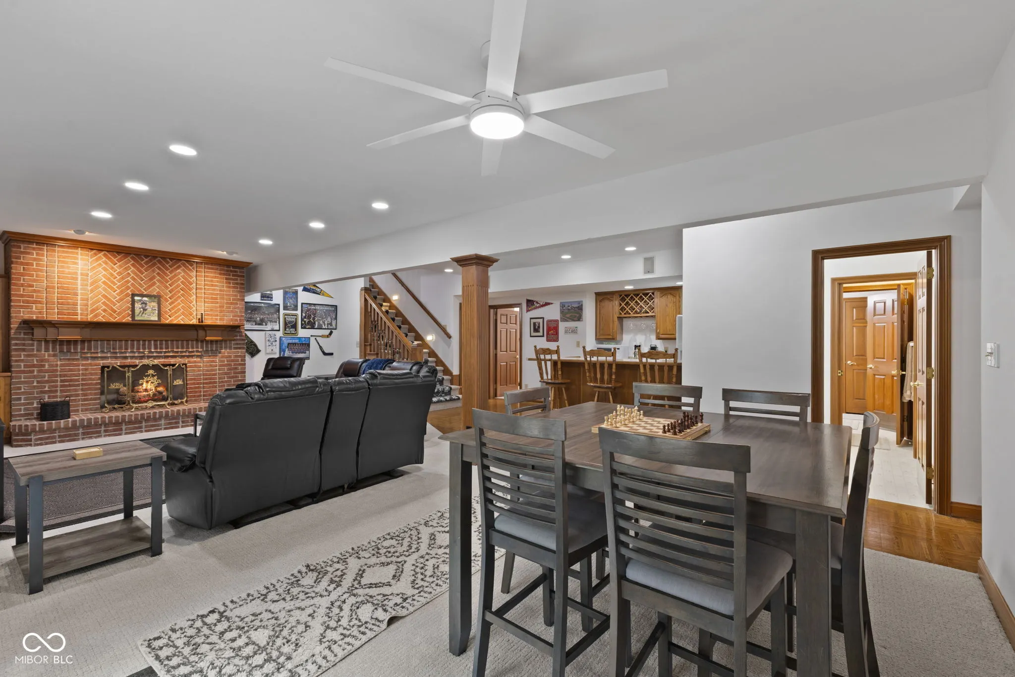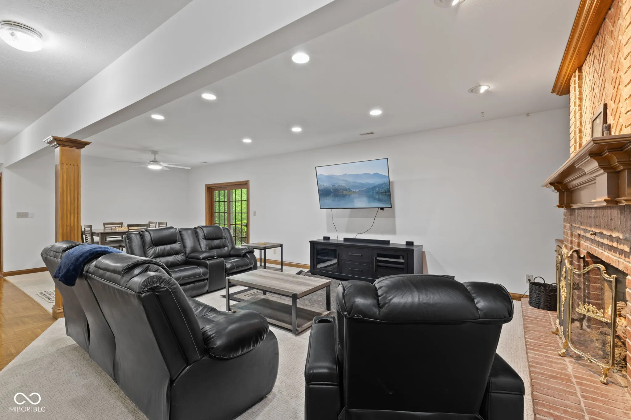 Presenting a distinguished custom-built residence in the highly desirable Eagle Trace community, this two-owner home offers an exceptional blend of space, craftsmanship, and opportunity. Situated on a generous 0.58-acre lot, the property features 6 bedrooms, 4 full and 2 half baths, and a 4-car garage, delivering the functionality today’s buyers are searching for. A grand two-story foyer sets the tone, leading into expansive living spaces enhanced by rich oak flooring, detailed wood trim, soaring ceilings, and fresh neutral finishes throughout. Multiple gathering areas provide flexibility for everyday living and entertaining, including a great room, a dual-fireplace living room, and a light-filled breakfast nook overlooking the private, fully fenced backyard with mature trees and natural privacy. The main-level primary suite offers a spacious retreat with dual vanities, a soaking tub, and a walk-in closet. The walkout lower level expands the living space with additional bedrooms, a large family room with fireplace, and a wet bar, ideal for guests, multi-generational living, or entertaining. A rare and valuable feature, the home includes an expansive 800+ square foot storm shelter, providing added security, storage, or flexible use space that is increasingly sought after. Enjoy a peaceful outdoor setting while still being conveniently located near everyday amenities. Ideal for relocation buyers, this home offers easy access to downtown Indianapolis, major interstates, and leading employers such as Eli Lilly and Company and Cummins Inc., along with proximity to top healthcare systems including IU Health, Ascension St. Vincent, and Community Health Network. This home presents a rare opportunity to own a well-built, meticulously maintained property with timeless character, offering the perfect canvas to personalize while benefiting from solid construction and a prime location.