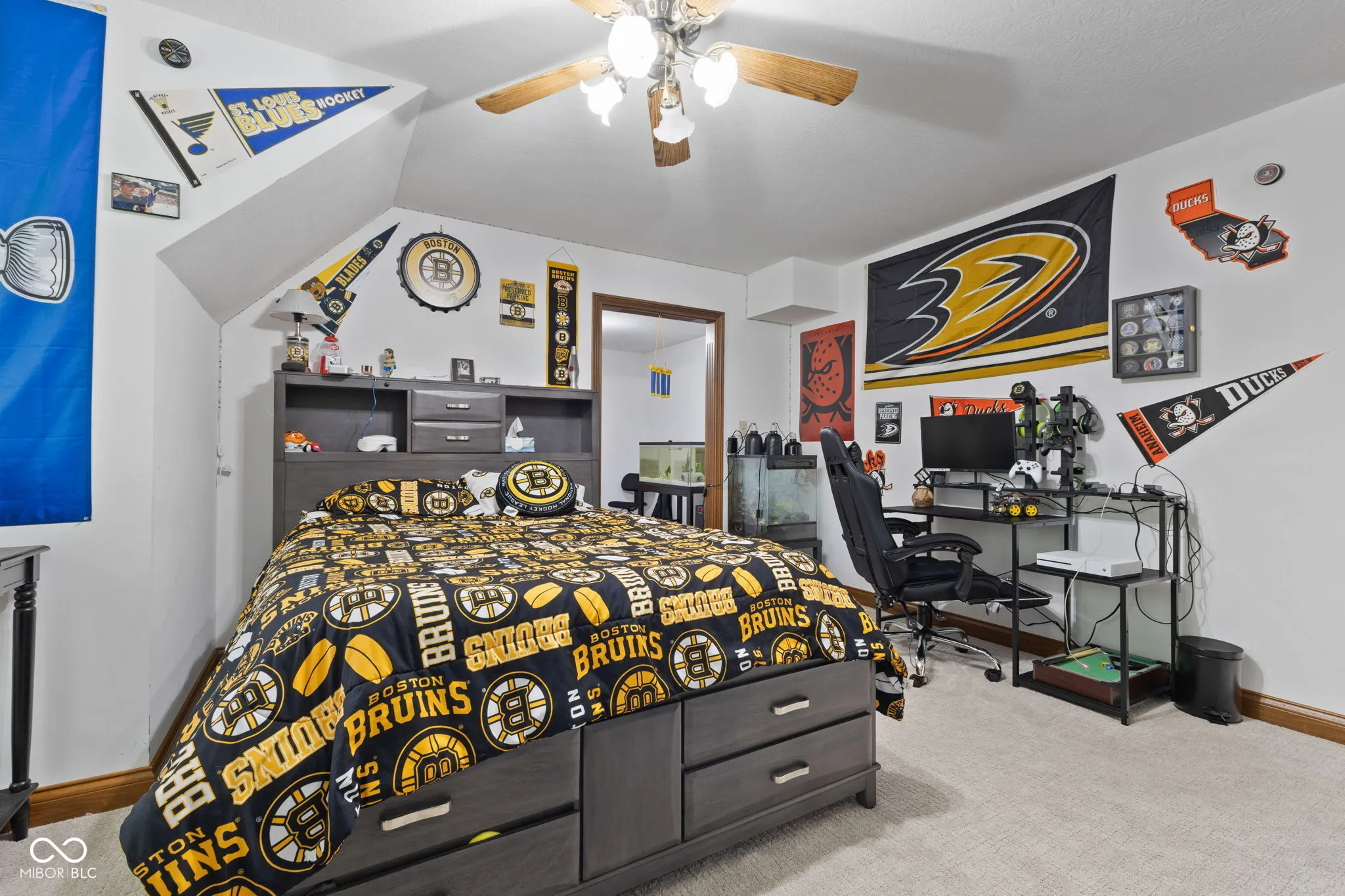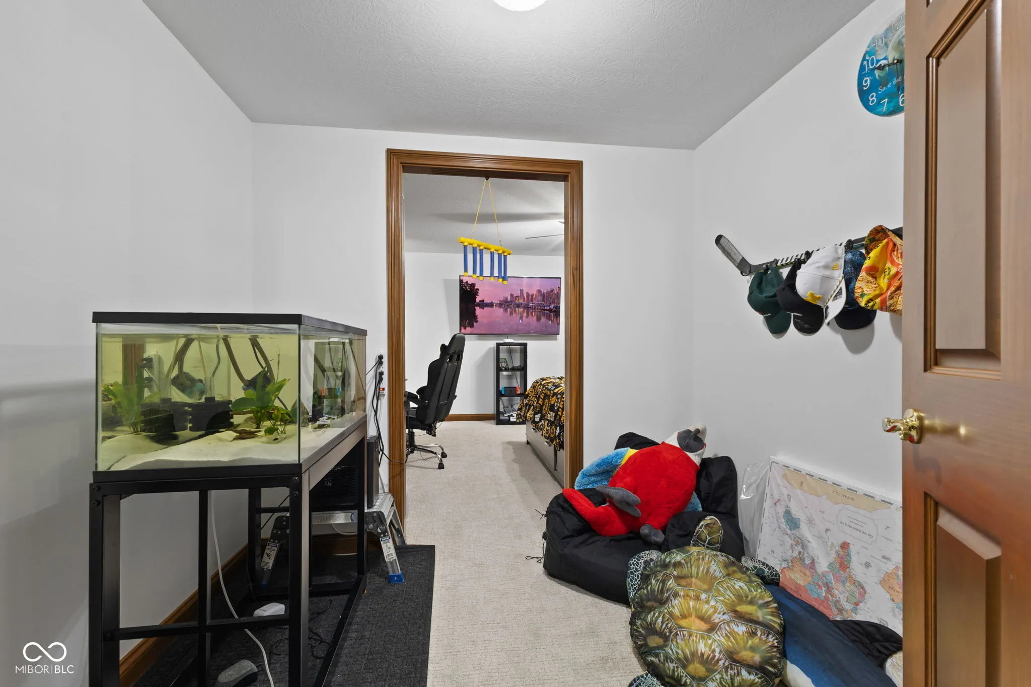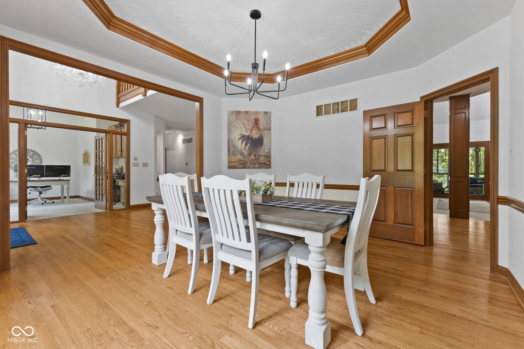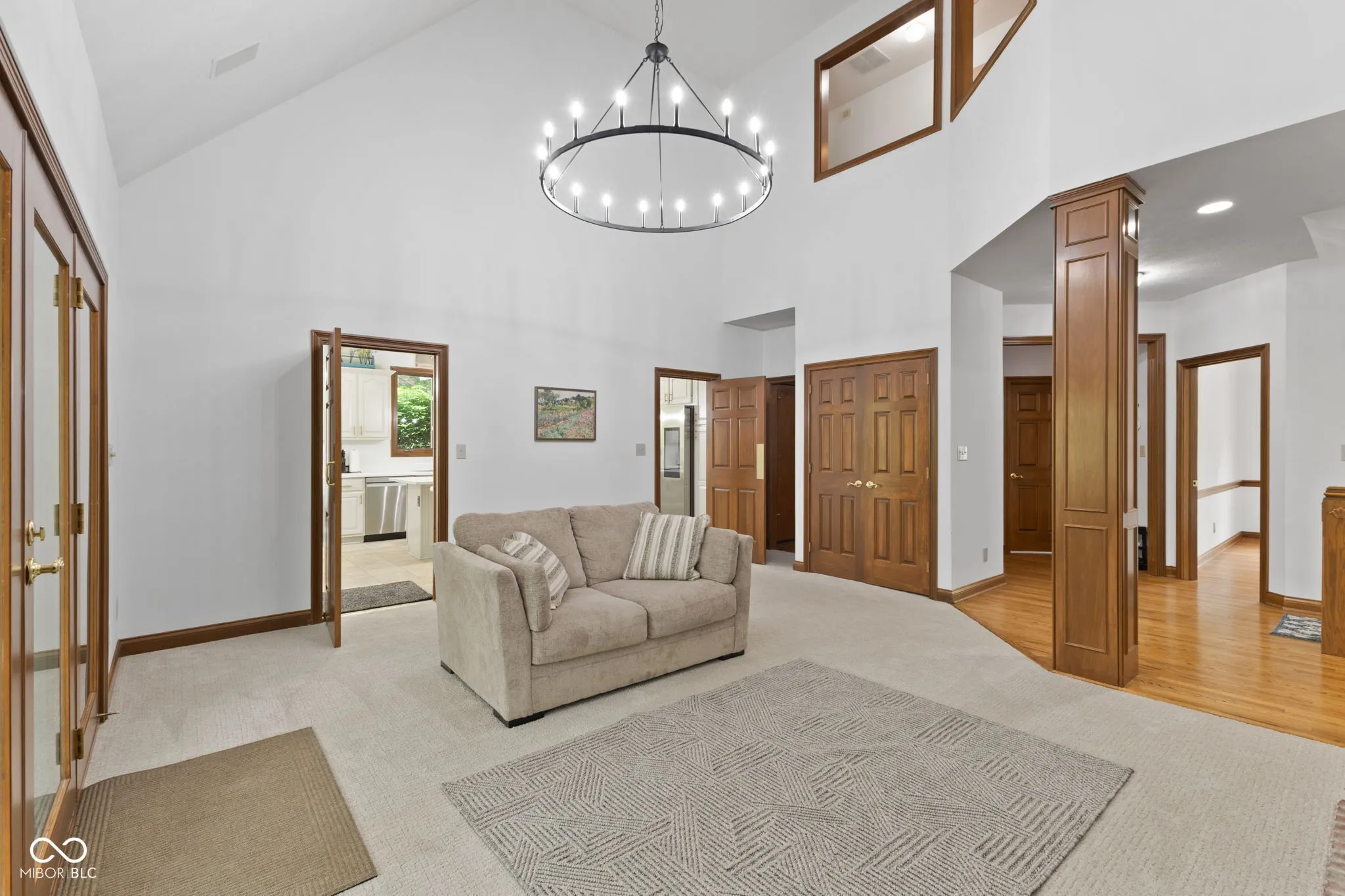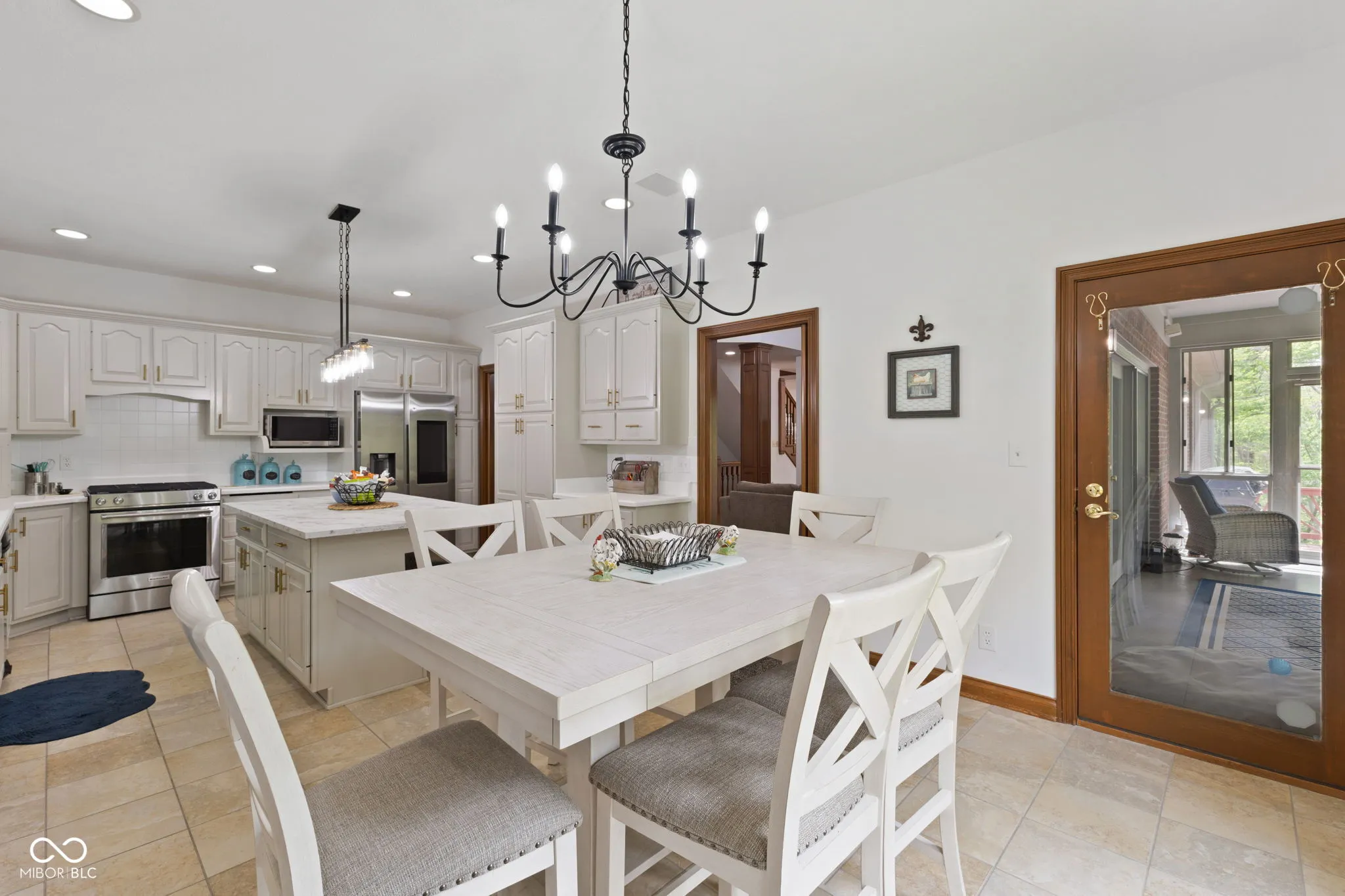 Presenting a distinguished custom-built residence in the highly desirable Eagle Trace community, this two-owner home offers an exceptional blend of space, craftsmanship, and opportunity. Situated on a generous 0.58-acre lot, the property features 6 bedrooms, 4 full and 2 half baths, and a 4-car garage, delivering the functionality today’s buyers are searching for. A grand two-story foyer sets the tone, leading into expansive living spaces enhanced by rich oak flooring, detailed wood trim, soaring ceilings, and fresh neutral finishes throughout. Multiple gathering areas provide flexibility for everyday living and entertaining, including a great room, a dual-fireplace living room, and a light-filled breakfast nook overlooking the private, fully fenced backyard with mature trees and natural privacy. The main-level primary suite offers a spacious retreat with dual vanities, a soaking tub, and a walk-in closet. The walkout lower level expands the living space with additional bedrooms, a large family room with fireplace, and a wet bar, ideal for guests, multi-generational living, or entertaining. A rare and valuable feature, the home includes an expansive 800+ square foot storm shelter, providing added security, storage, or flexible use space that is increasingly sought after. Enjoy a peaceful outdoor setting while still being conveniently located near everyday amenities. Ideal for relocation buyers, this home offers easy access to downtown Indianapolis, major interstates, and leading employers such as Eli Lilly and Company and Cummins Inc., along with proximity to top healthcare systems including IU Health, Ascension St. Vincent, and Community Health Network. This home presents a rare opportunity to own a well-built, meticulously maintained property with timeless character, offering the perfect canvas to personalize while benefiting from solid construction and a prime location.