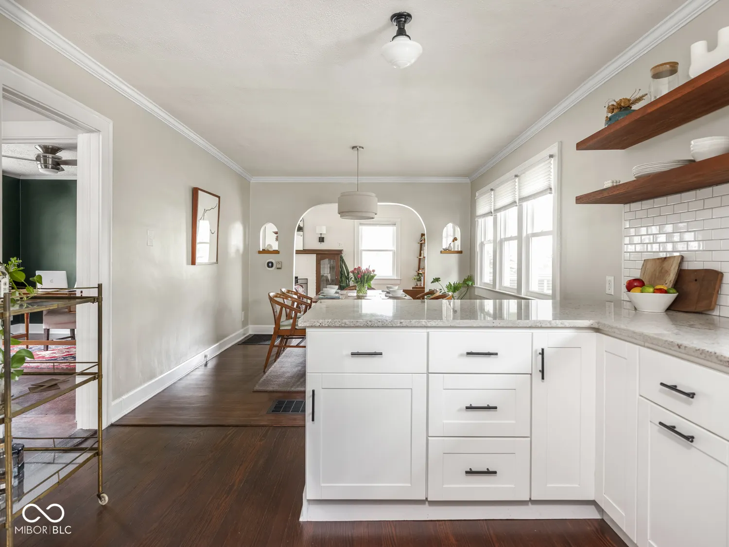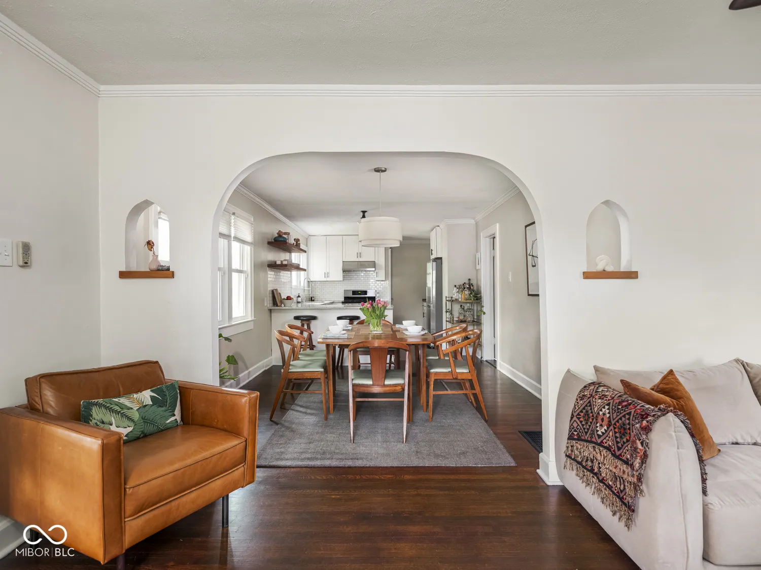 Set on a corner lot framed by mature trees and well-kept landscaping, this Irvington bungalow sets a new standard. Every inch reflects thoughtful care and a level of detail that’s hard to find. A covered front porch with a swing welcomes you in, where original charm carries through with hardwood floors, arched openings, and a fireplace flanked by stunning built-ins. The dining space flows easily into an updated kitchen with timeless finishes, stainless steel appliances, and a bright, open feel. The full bathroom between the two bedrooms features classic subway tile and clean, well-executed finishes. Downstairs, the basement is exceptionally tidy and usable, offering great storage, laundry space, and a convenient half bath. Outside, the backyard is a true highlight; fully fenced, private, and anchored by a covered patio that functions as an extension of the home and the ideal place to relax or entertain. It connects seamlessly to the fully reconstructed 2-car garage (2022), along with new sidewalks, driveway, and patio completed the same year. Major updates provide peace of mind, including roof replacement on both house and garage (2022), new windows (2021), exterior drainage system (2022), exterior paint and siding updates (2022), furnace (2024), water heater (2025), tuck pointing (2025), and basement sealing (2026), among others. This home is a truly rare combination of character, condition, and meaningful updates in a prime Irvington location, just a short walk from Ellenberger Park.