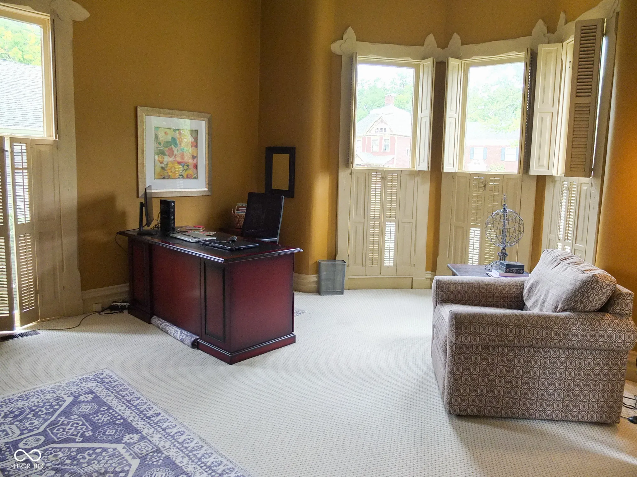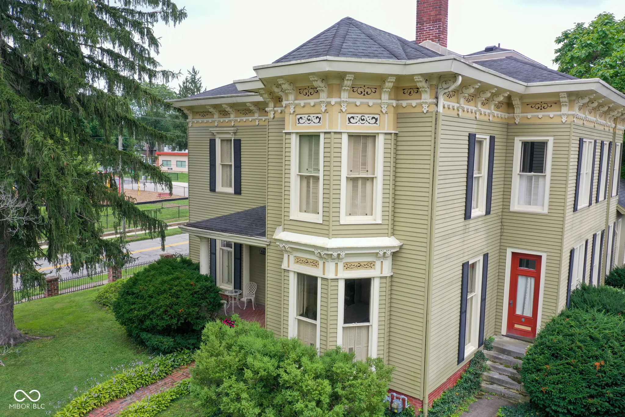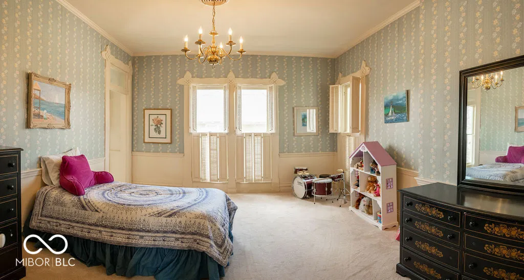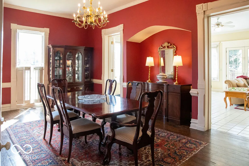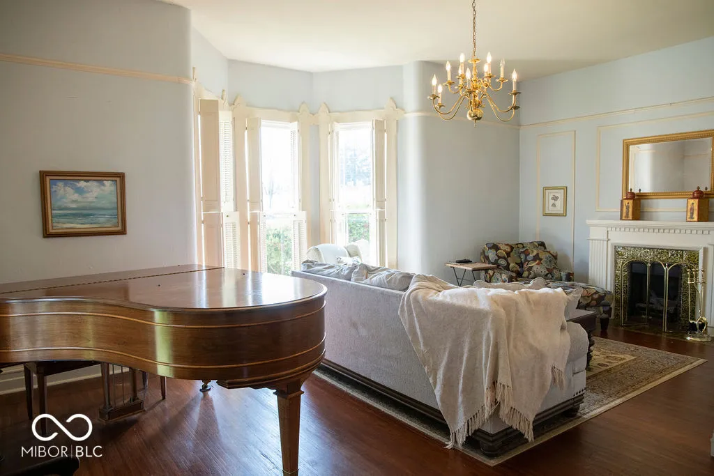 Stately home in historic Elston Grove, blending timeless elegance with modern convenience. Enjoy a short walk to downtown festivals, dining, shops, Wabash College, the library, museums, and parks. This spacious home features 4 bedrooms and 6 bathrooms, with hardwood floors, detailed built-ins, and four fireplaces throughout. The updated kitchen offers modern appliances, generous counter space, and a pantry, plus an adjacent wet bar for entertaining. A dedicated office and private library provide great work and relaxation spaces. The primary suite includes separate his-and-her full bathrooms. Large windows bring in abundant natural light, and the in-ground pool creates the perfect outdoor retreat.