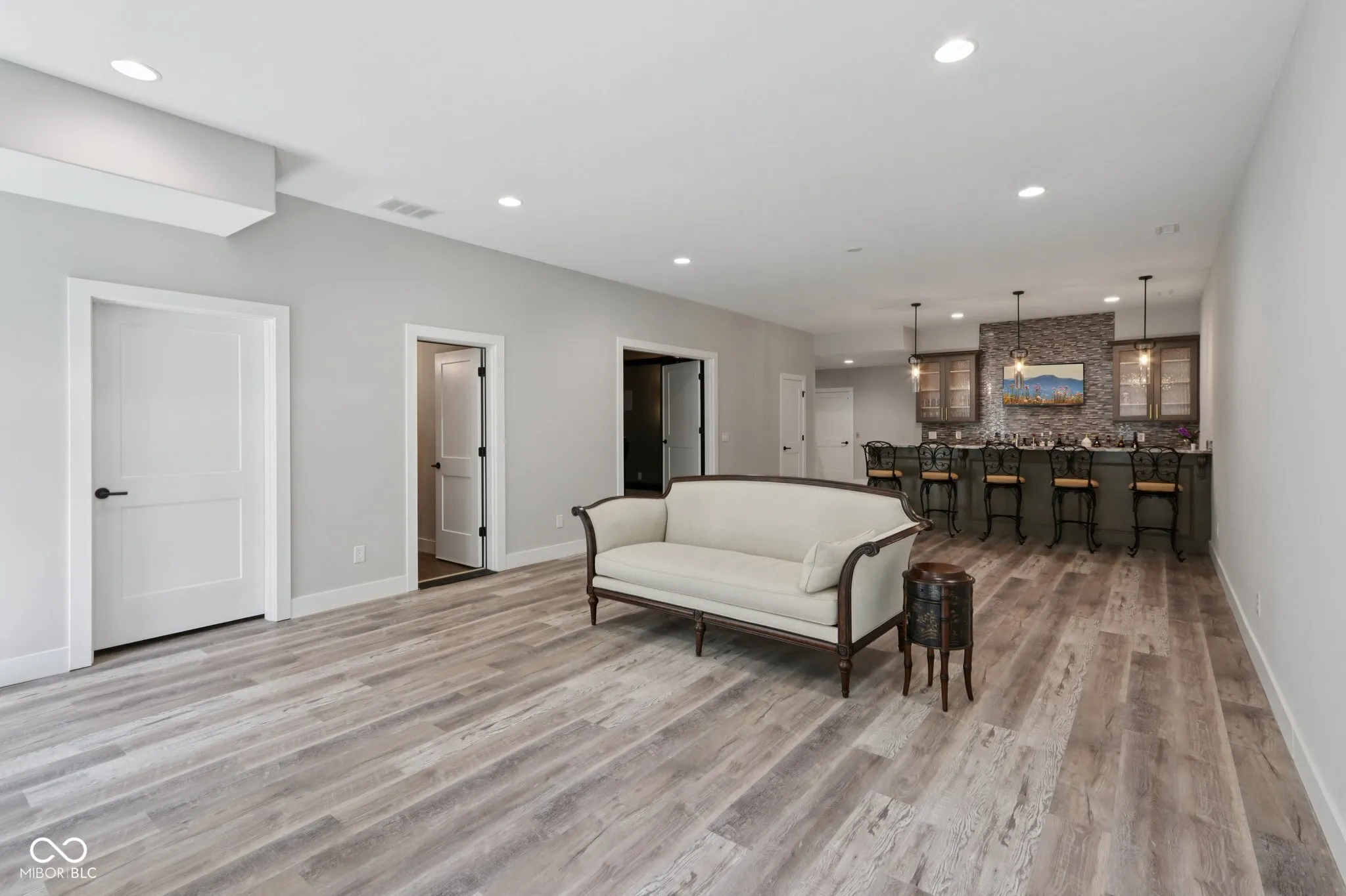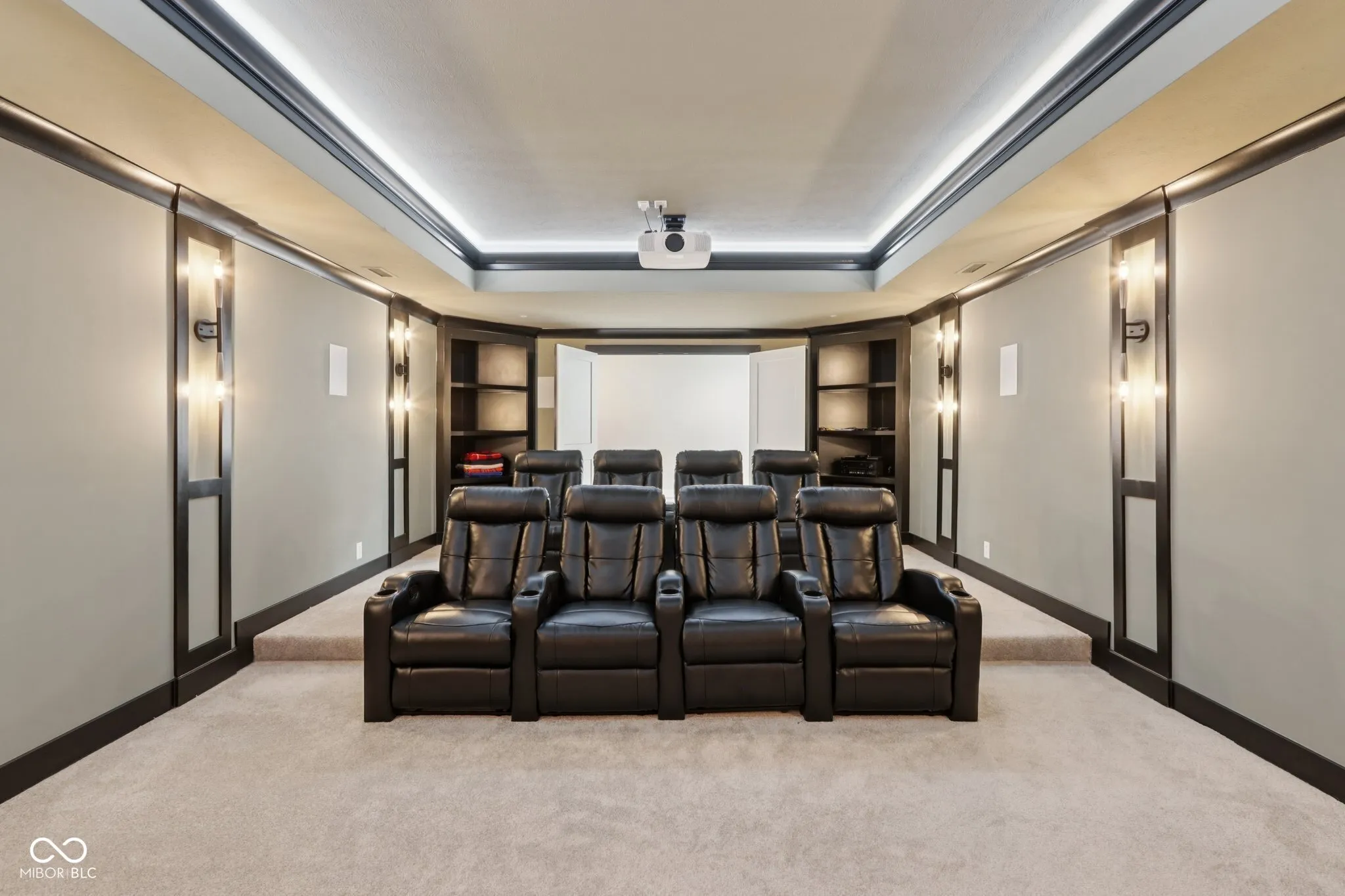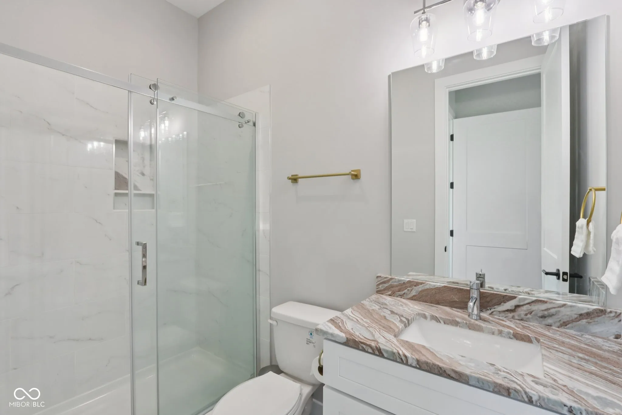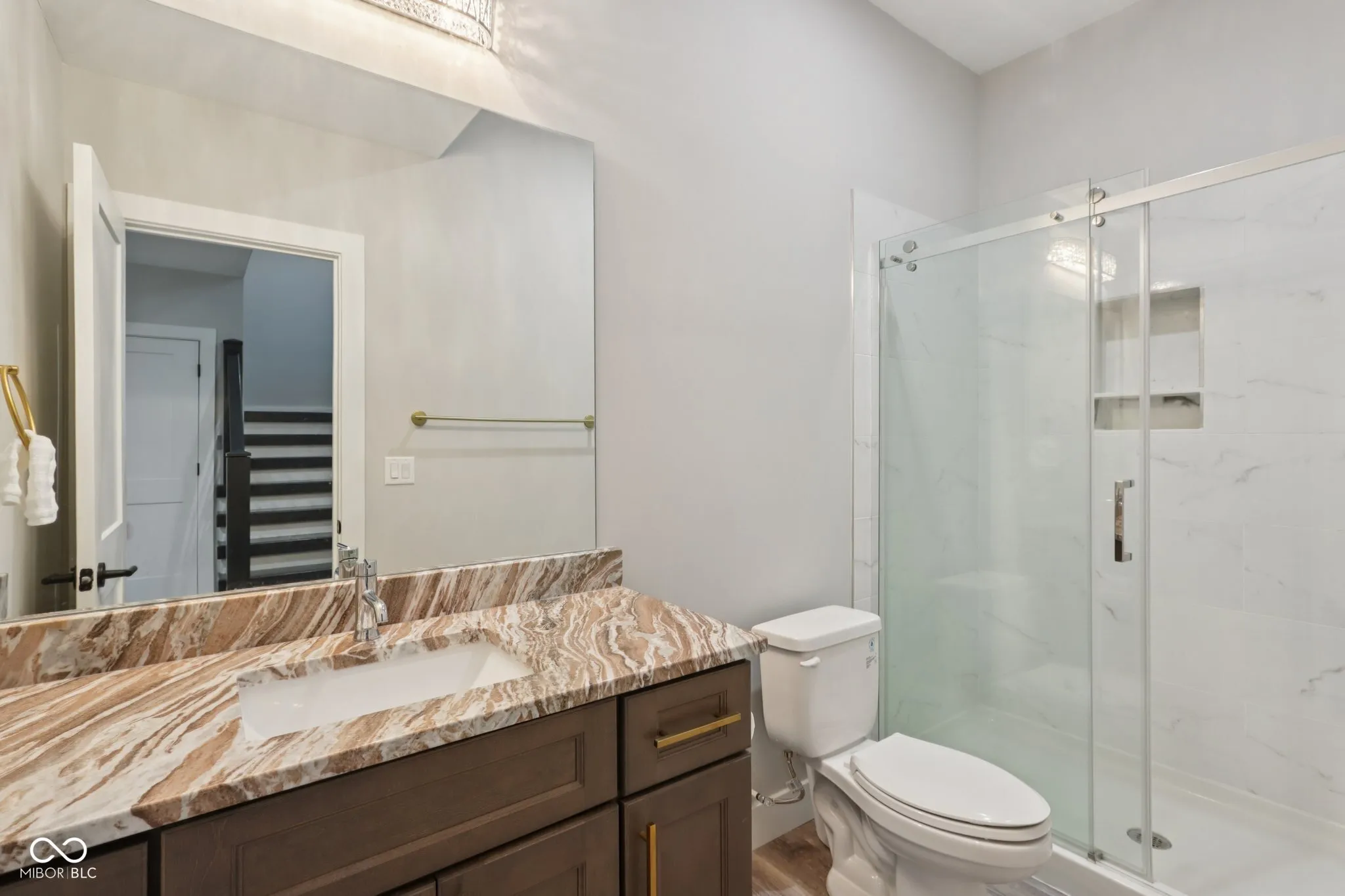 A rare offering in coveted Oak Park Estates, this newer custom estate is a statement of refined luxury and effortless living. Set on a nearly 1-acre lot backing to a tree line with open field beyond, the home offers exceptional privacy and a peaceful setting. A sparkling pool anchors the outdoor experience, complemented by expansive entertaining spaces and a 5-car garage. The interior features 5 bedrooms, 5.5 baths, open concept living, and an elevator providing easy access to all levels and the garage. The main level showcases seamless flow between the gourmet kitchen, great room, and dining areas. The chef’s kitchen is a showstopper, boasting dual oversized islands (including a waterfall island), two full-size sinks, pot filler, professional-grade appliances including two dishwashers, 60″ built-in refrigerator, 48″ pro rangetop, double ovens, warming drawer, microwave drawer, wine chiller, and a spacious walk-in pantry. A dramatic 2-story great room and 2-story dining area, united beneath an elegant beamed ceiling, are flooded with natural light from a multi-panel sliding glass wall that frames views of the pool. A stunning two-sided floor-to-ceiling fireplace connects the great room to a private office with custom built-ins. The main floor also offers a private guest suite with its own bath. Upstairs, the primary suite impresses with a spa-style tiled shower featuring rain shower heads and a walk-in tub, along with a massive walk-in closet with center island. Two additional bedrooms each include ensuite baths with dual vanities and walk-in closets. The 10′ lower level is an entertainer’s haven with a wet bar, home theater, wine cellar, exercise room, recreation space with fireplace, a 5th bedroom, and a full bath. The private backyard is a true extension of the home, complete with a pool, expansive custom paver patio, built-in grilling station, and pergola. An exceptional blend of modern convenience and first-class amenities – luxury living without compromise.