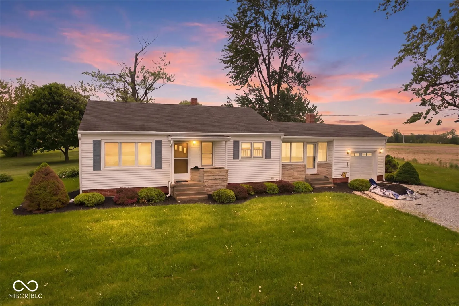 Close to town on 1 acre, plus qualifies for USDA loans! From the garage you enter a sunroom/sitting room with a fireplace and then into the kitchen with the best strawberry wallpaper 1954 vintage can offer. New flooring in the living room, 2 bedrooms (3rd bedroom has hardwood), and sunroom. Fresh paint, a basement, and plenty of yard space!