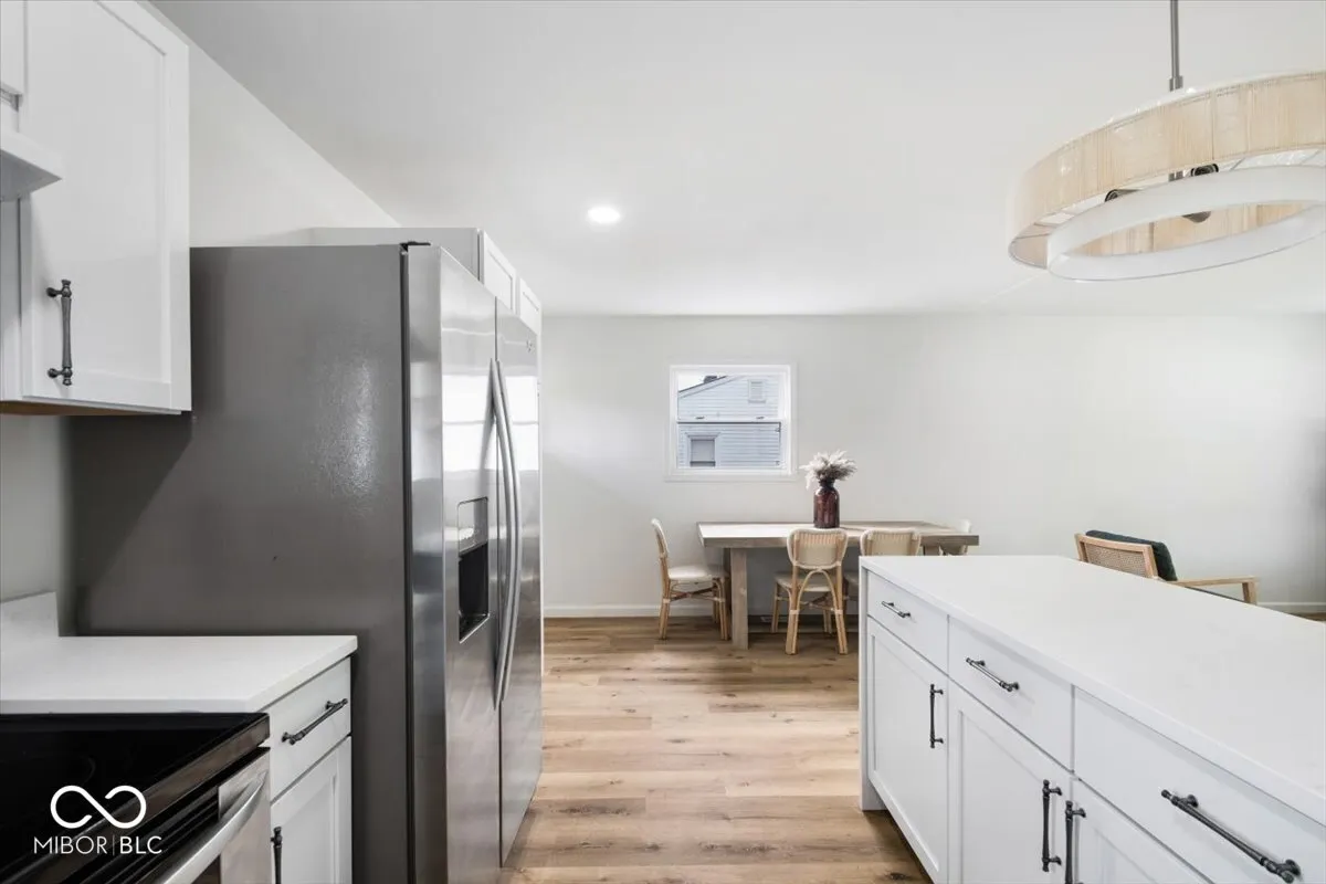 Welcome to this beautifully remodeled ranch nestled in one of Indianapolis’ most sought-after neighborhoods – Eagledale. Thoughtfully updated from top to bottom, this 3-bedroom, 1-bathroom home offers the perfect blend of modern finishes and everyday functionality that today’s buyers are looking for. The open floor plan creates an inviting, connected living space ideal for families and professionals alike. The fully renovated kitchen features all-new cabinetry, countertops, and fixtures, while the updated bathroom mirrors that same attention to detail. New luxury vinyl plank flooring flows throughout the home, complemented by fresh paint and new tile that give every room a clean, contemporary feel. Major updates have been handled too – including a brand new roof – giving you the confidence and peace of mind that comes with a truly turnkey property. No projects, no surprises. Just a well-executed remodel in a neighborhood people genuinely want to live in. Whether you’re planting roots for a growing family or looking for a low-maintenance home close to everything Indianapolis has to offer, this Eagledale gem checks every box. Don’t let this one pass you by – schedule your private showing today.