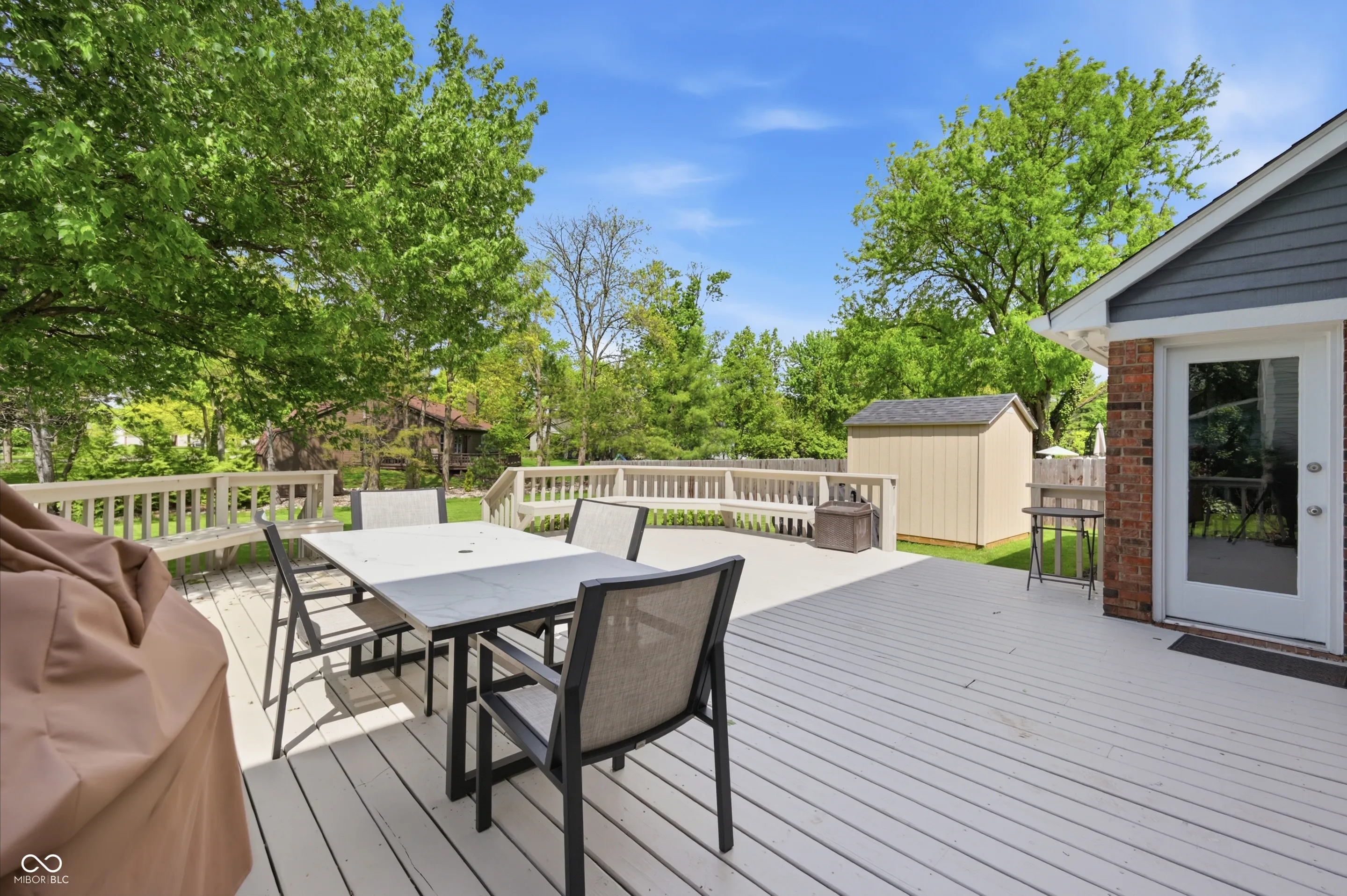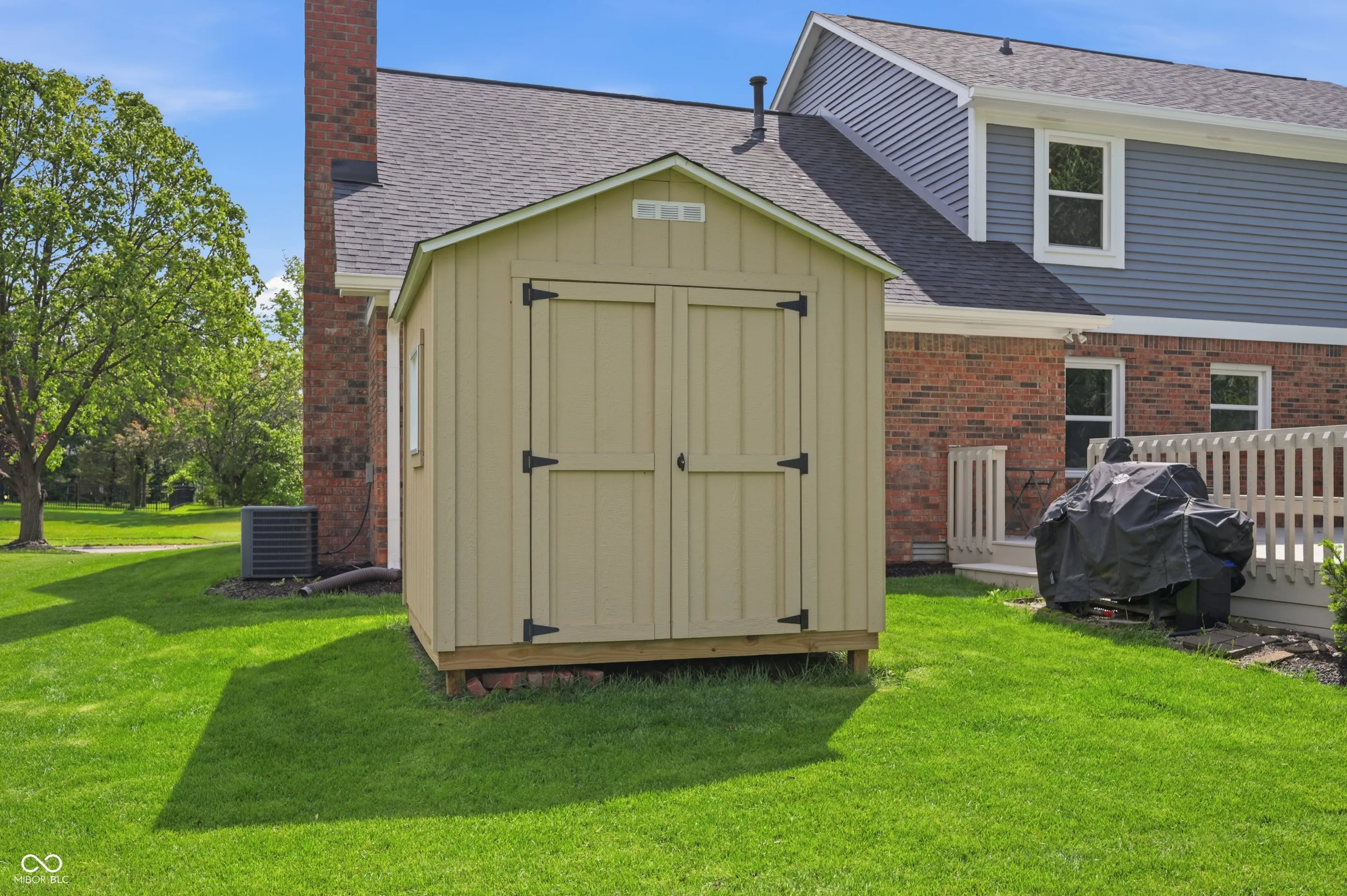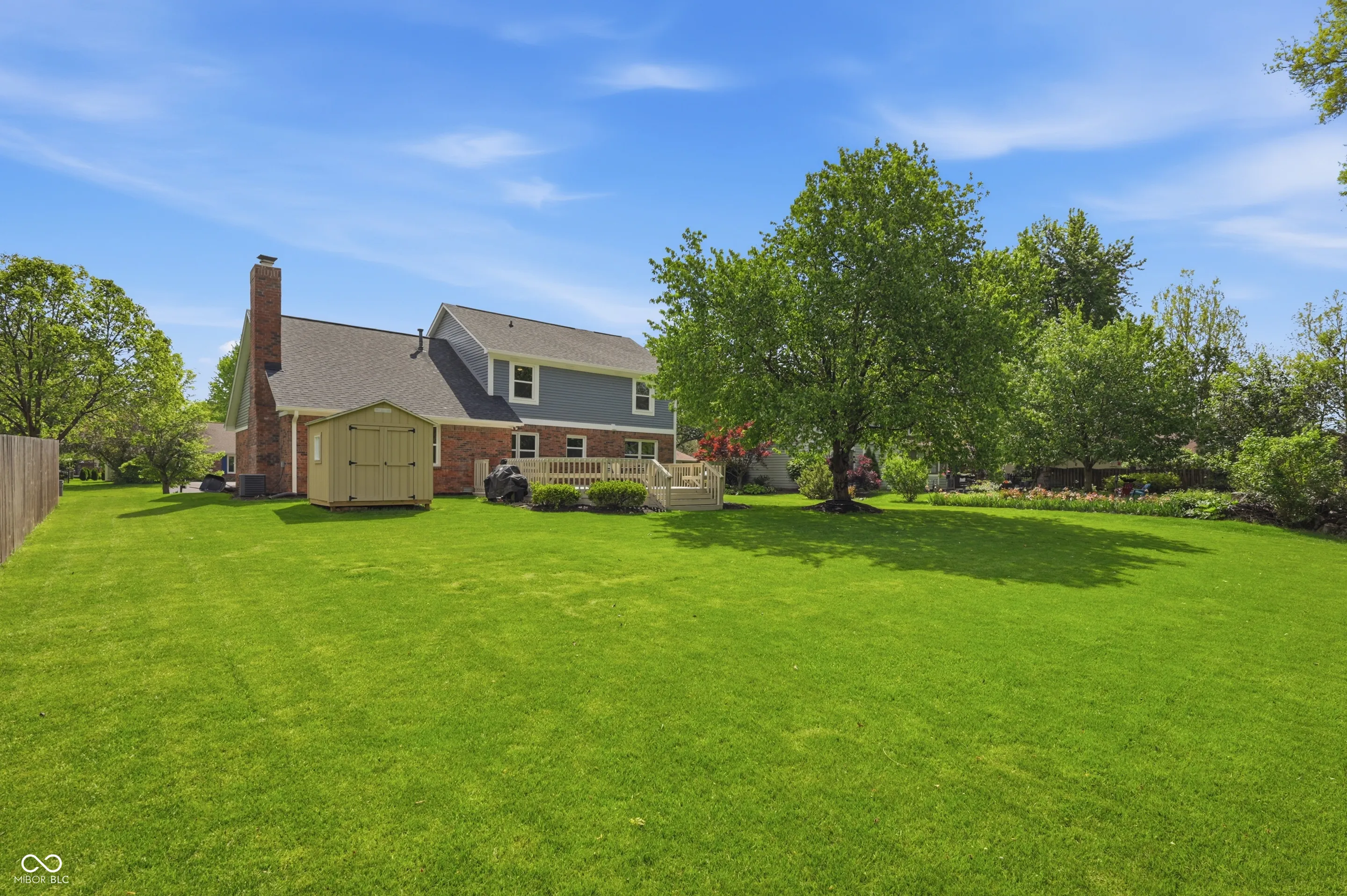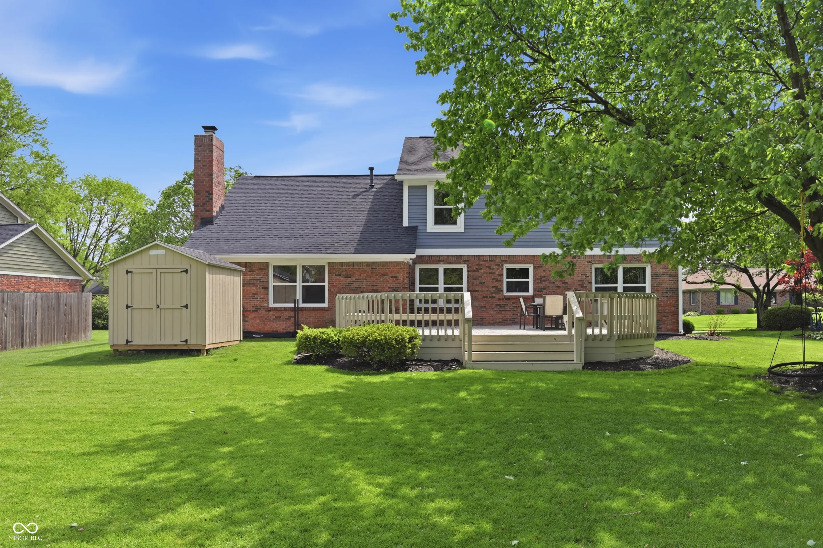 Community pool, tennis courts, and a home that’s move-in ready. Welcome home to this 2,100 sq ft brick and wood home offers the perfect blend of classic charm and modern updates that today’s buyers are looking for. From the moment you arrive, the lush landscaping, fresh exterior paint, and welcoming covered front porch set the tone for what’s inside. The bright and airy main level features a spacious living room with recessed lighting and crown molding, a stunning updated kitchen with white shaker cabinetry, quartz countertops, stainless steel appliances, a designer tile backsplash, and a stainless range hood. The cozy family room is anchored by a wood-burning brick fireplace flanked by custom built-in shelving, making it the true heart of the home. Upstairs, the generous primary suite impresses with soaring vaulted ceilings, warm hardwood-style flooring, and peaceful treetop views. Three additional bedrooms offer ceiling fans and new flooring throughout. The beautifully updated full bath features a dual-sink vanity with quartz countertops, elegant tile surround, and stylish brushed nickel finishes. A convenient upper-level laundry area with Samsung washer and dryer completes the package. Step outside to a large, freshly painted deck overlooking a lush, well-maintained backyard – ideal for summer entertaining – complete with a storage shed and mature shade trees. The newer roof and attached two-car garage provide added peace of mind for years to come. Don’t miss your chance to call this one home!