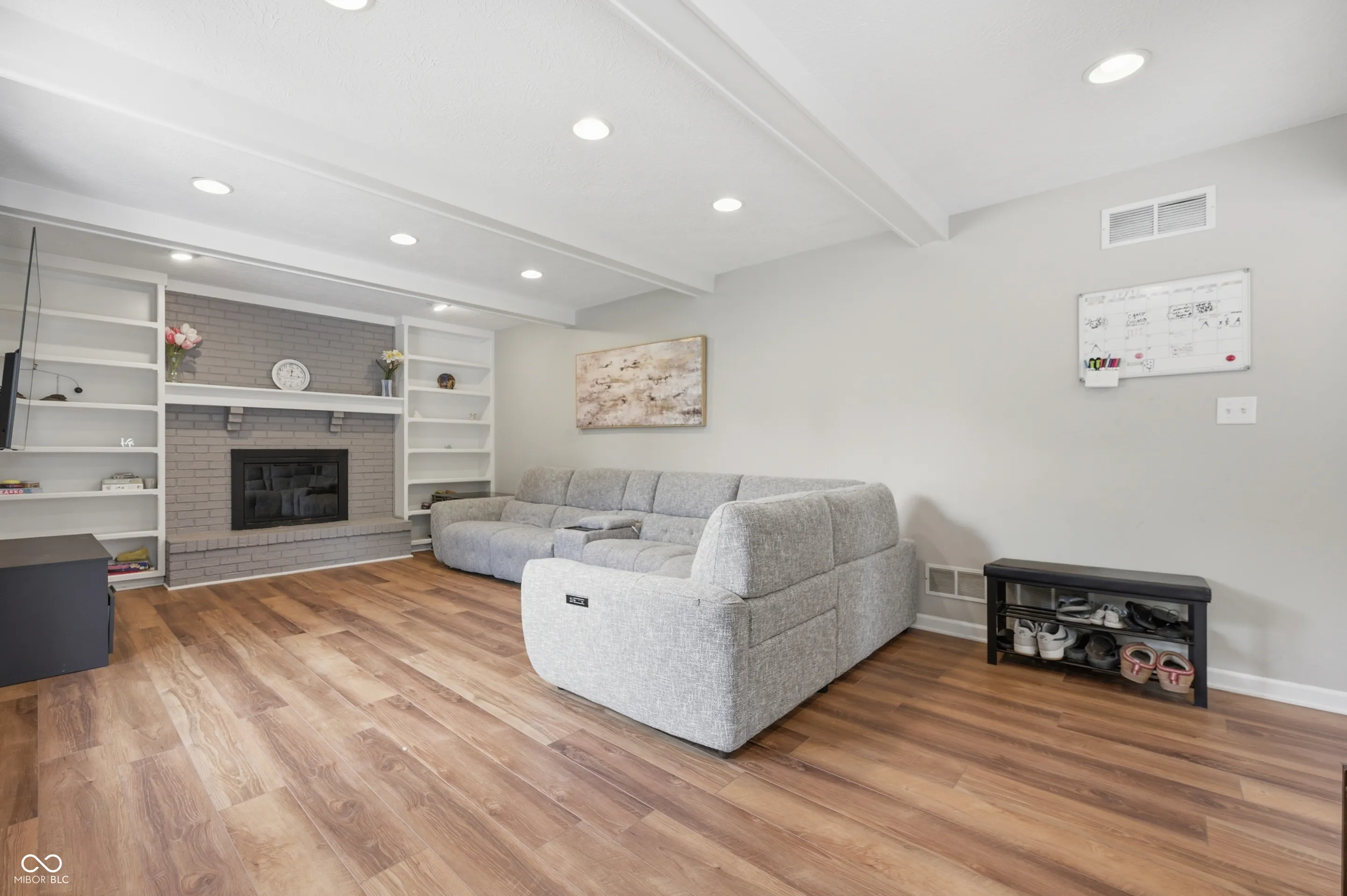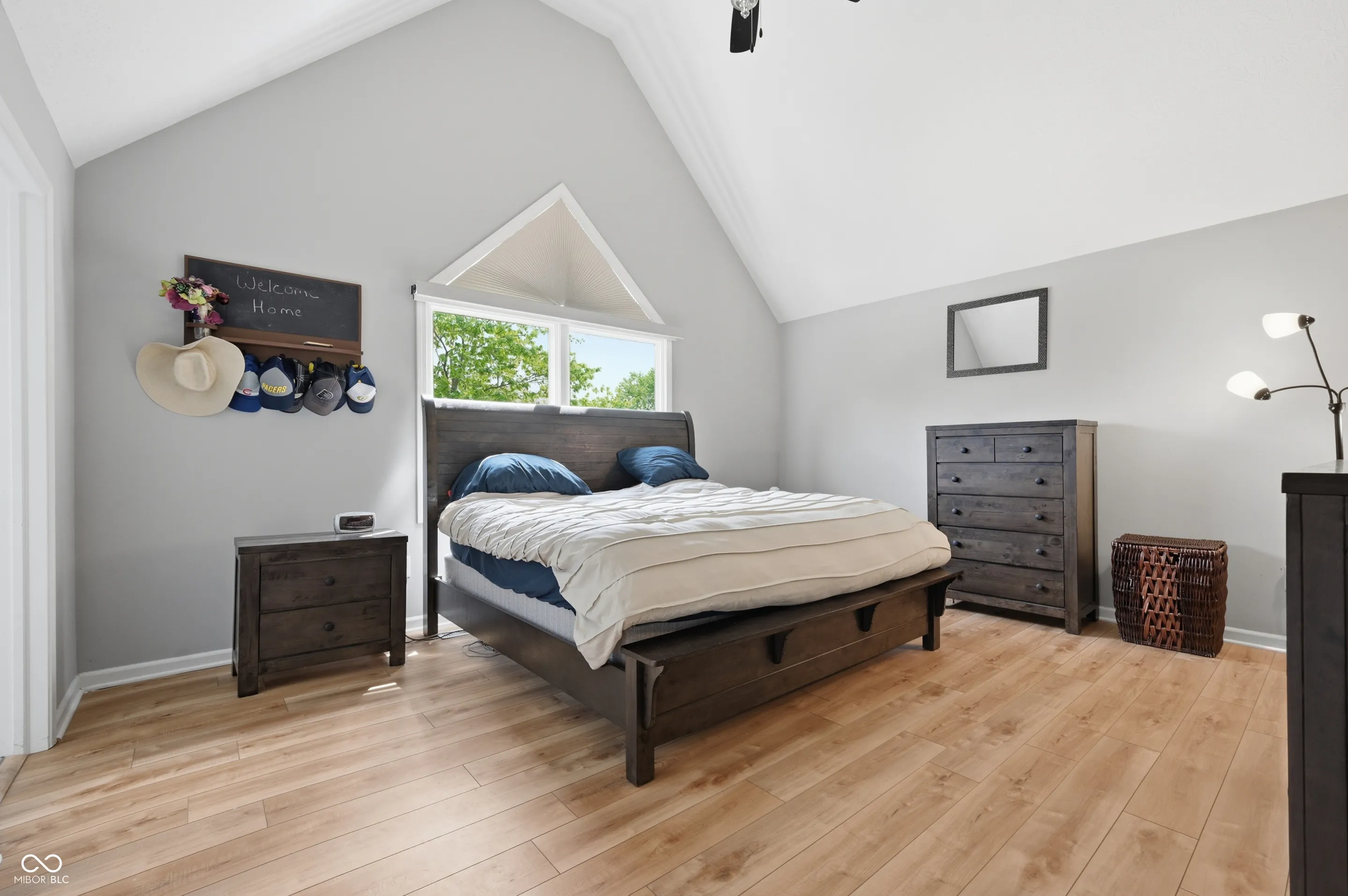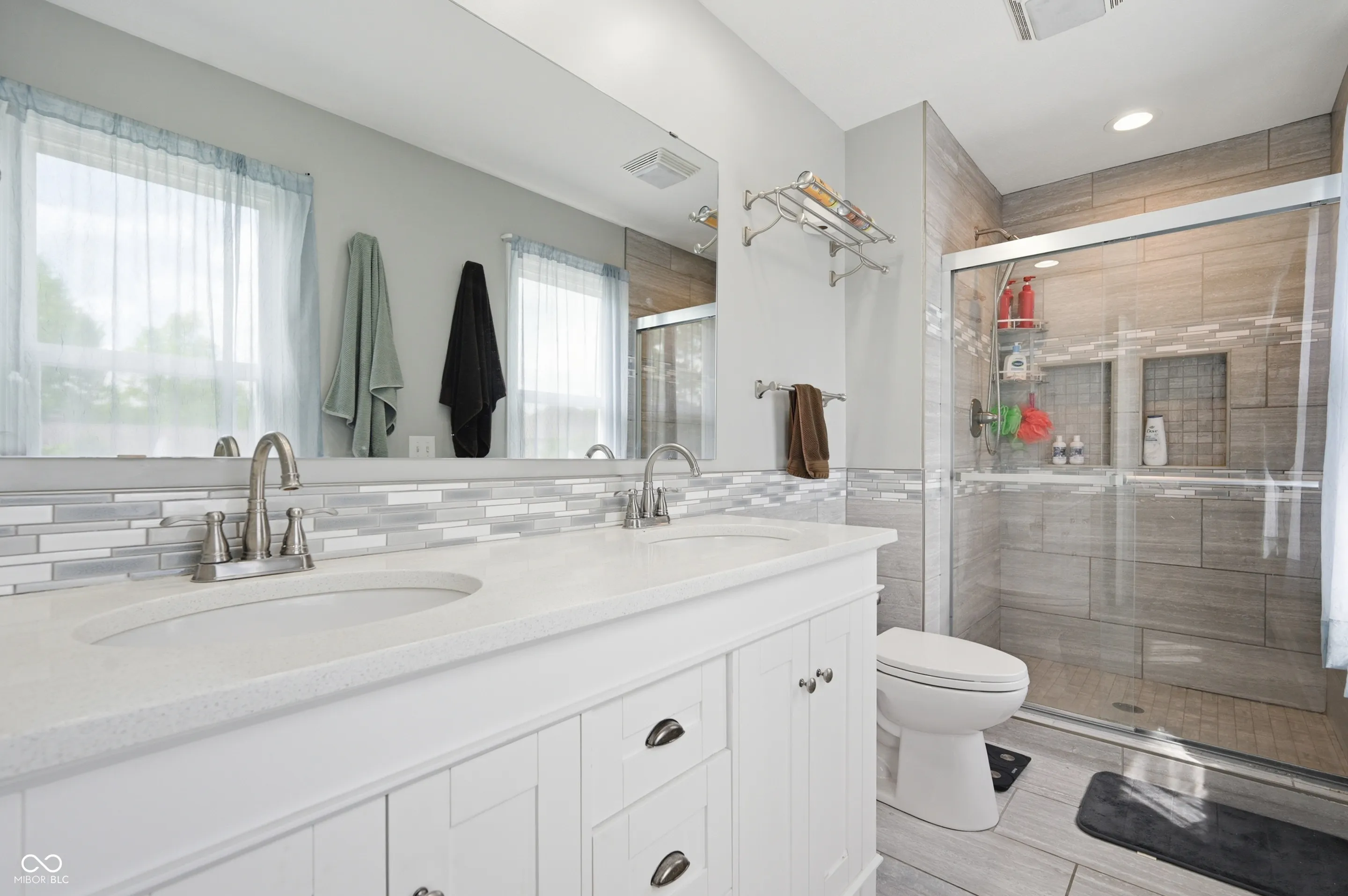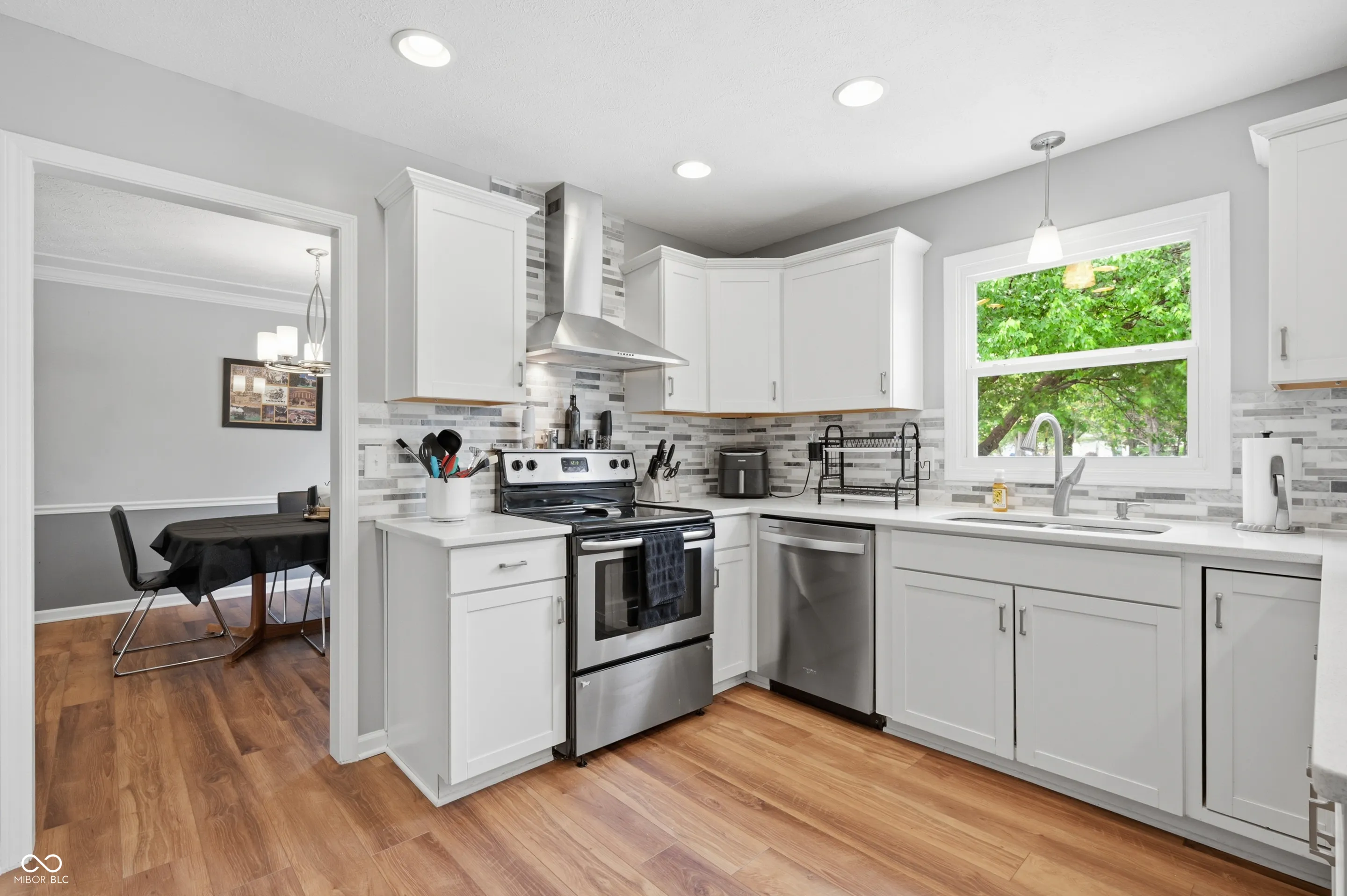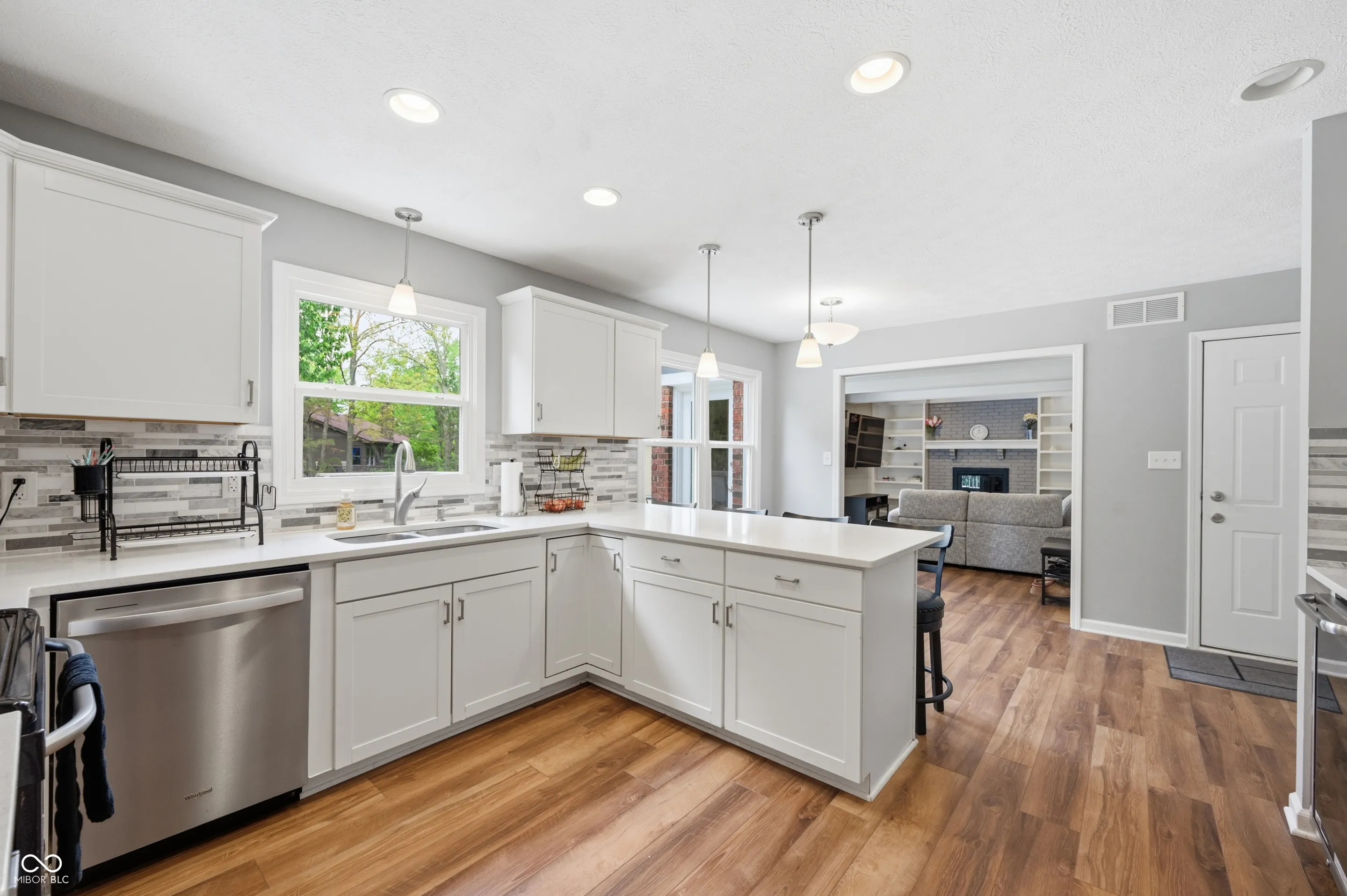 Community pool, tennis courts, and a home that’s move-in ready. Welcome home to this 2,100 sq ft brick and wood home offers the perfect blend of classic charm and modern updates that today’s buyers are looking for. From the moment you arrive, the lush landscaping, fresh exterior paint, and welcoming covered front porch set the tone for what’s inside. The bright and airy main level features a spacious living room with recessed lighting and crown molding, a stunning updated kitchen with white shaker cabinetry, quartz countertops, stainless steel appliances, a designer tile backsplash, and a stainless range hood. The cozy family room is anchored by a wood-burning brick fireplace flanked by custom built-in shelving, making it the true heart of the home. Upstairs, the generous primary suite impresses with soaring vaulted ceilings, warm hardwood-style flooring, and peaceful treetop views. Three additional bedrooms offer ceiling fans and new flooring throughout. The beautifully updated full bath features a dual-sink vanity with quartz countertops, elegant tile surround, and stylish brushed nickel finishes. A convenient upper-level laundry area with Samsung washer and dryer completes the package. Step outside to a large, freshly painted deck overlooking a lush, well-maintained backyard – ideal for summer entertaining – complete with a storage shed and mature shade trees. The newer roof and attached two-car garage provide added peace of mind for years to come. Don’t miss your chance to call this one home!