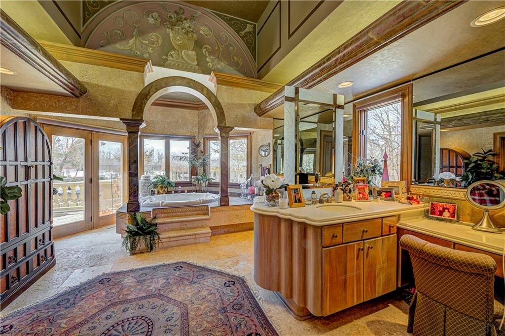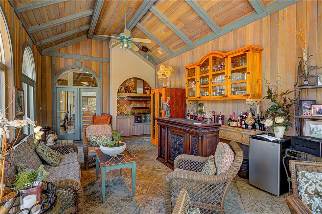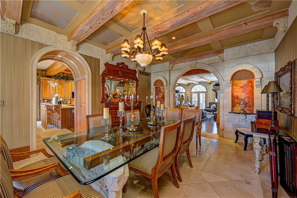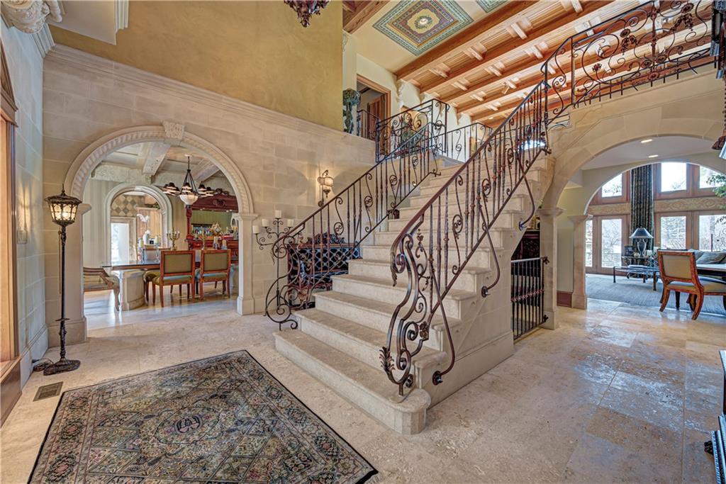 STUNNING 10 ACRE ESTATE! Enter the gates & long tree lined drive to the exquisite 6bd, 7.5ba, 10,538 sqft European Style home designed by the artist Ray Turner. Enter a magnificent 2 story foyer w grand travertine staircase & views of the dramatic great rm w 2 story ceilings w Pecky cypress beams, floor to ceiling windows overlooking the backyard retreat! Main floor owners suite w fireplace, private balcony & entry to the expansive back terrace. Unique, custom artisan features are throughout! Formal dining rm, kitchen/hearth rm, sunroom, den, all 6 bdrm are en suite! Lower level features full kitchen, rec rm & more! Unbelievable amenities! Pool, cabana w full kitchen, tennis/pickleball. AND 1040 sqft Guest home! A truly spectacular estate!